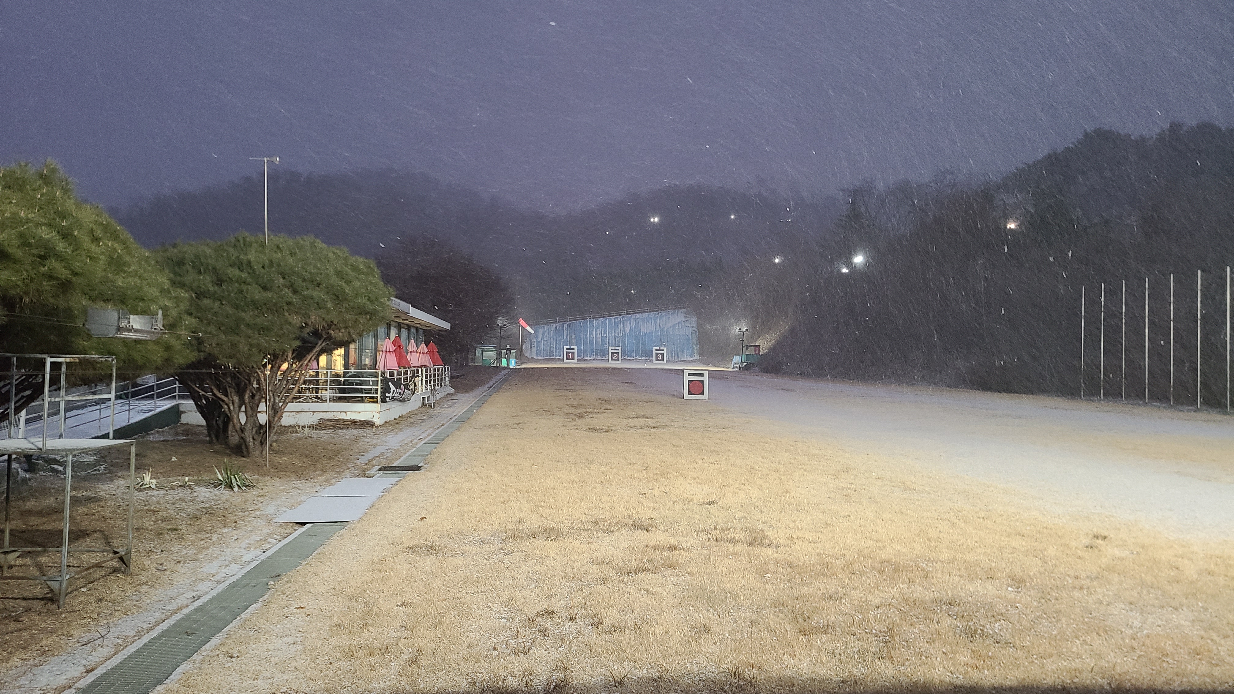 추위에 손이 시리고 제대로 관중이 되지않는데, 과녁에 가보니 살이 거의 뒤나고있다-과녁의 왼쪽으로 화살이 떨어져있다.