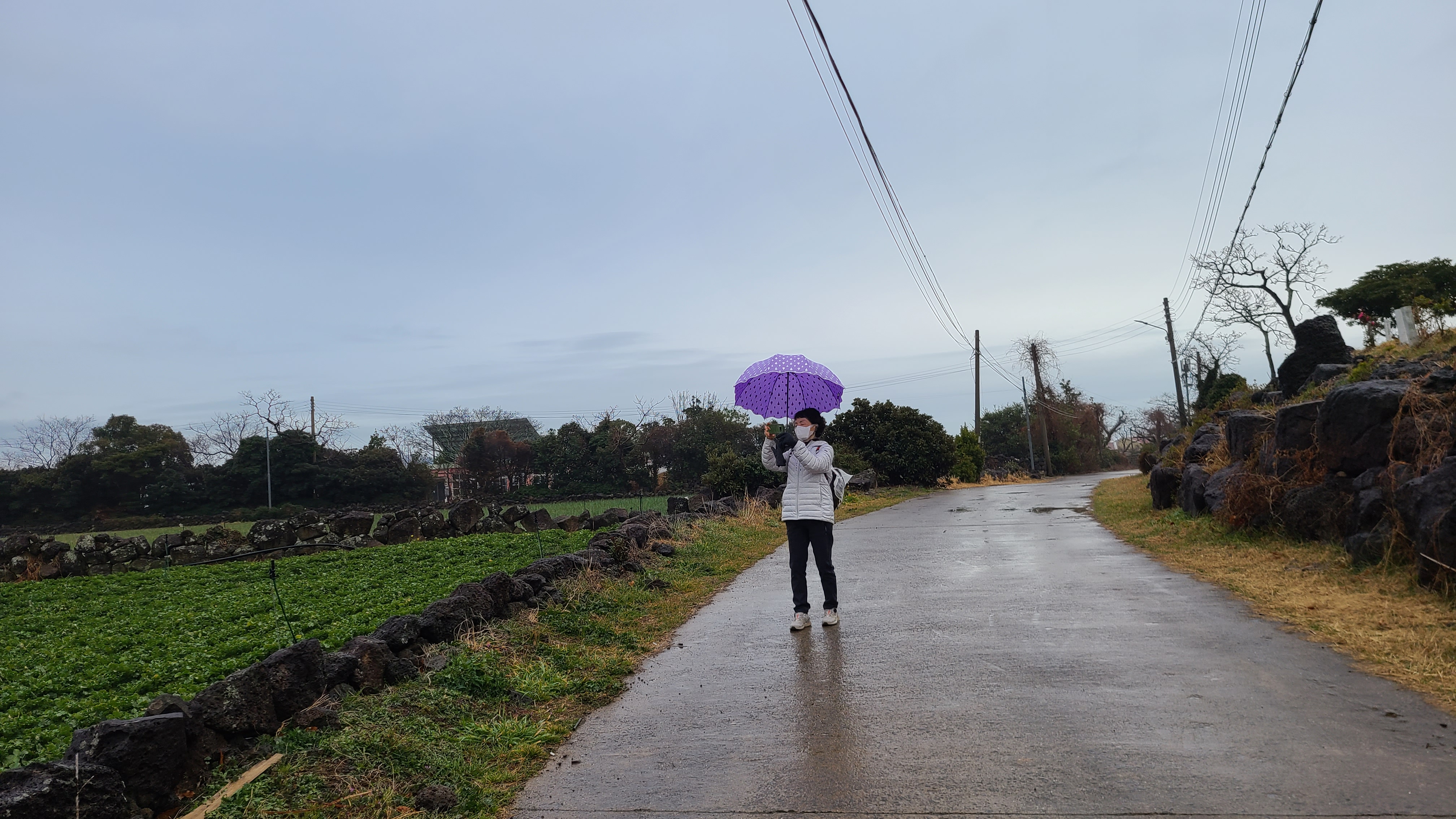마지막 올레코스를 걸으며 올레길을 마무리하는 날인데 오전까지 가랑비가 내린다는 예보이고 창밖으로 비가내리고있다.