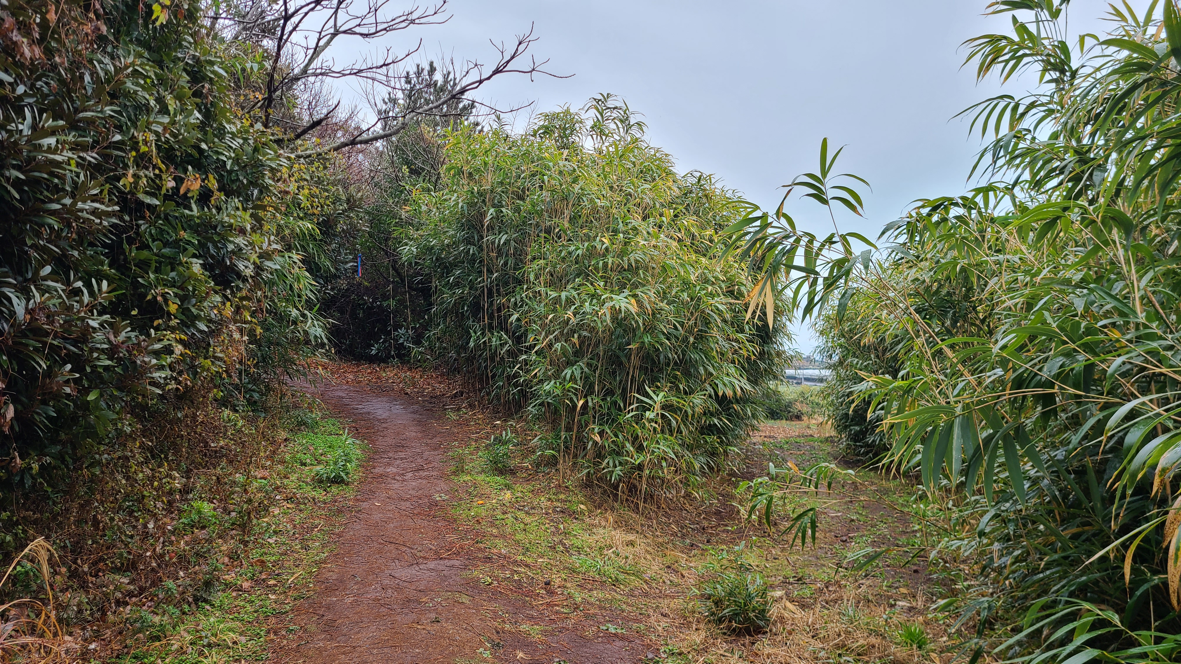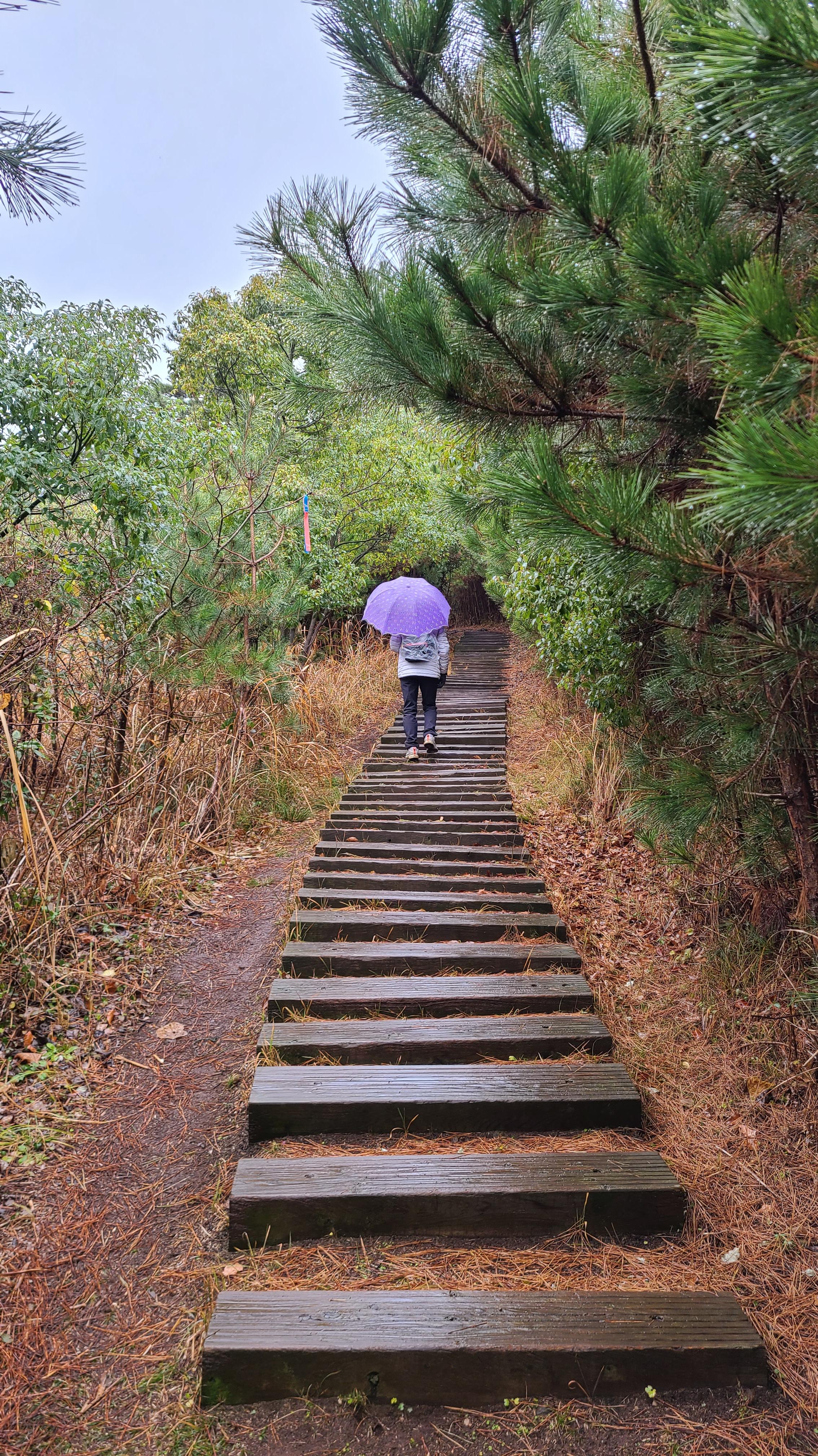 포장길은 군데군데 빗물이고여 피해서 걸어야하고 비포장길은 질퍽거려 걷기에 힘이든다.