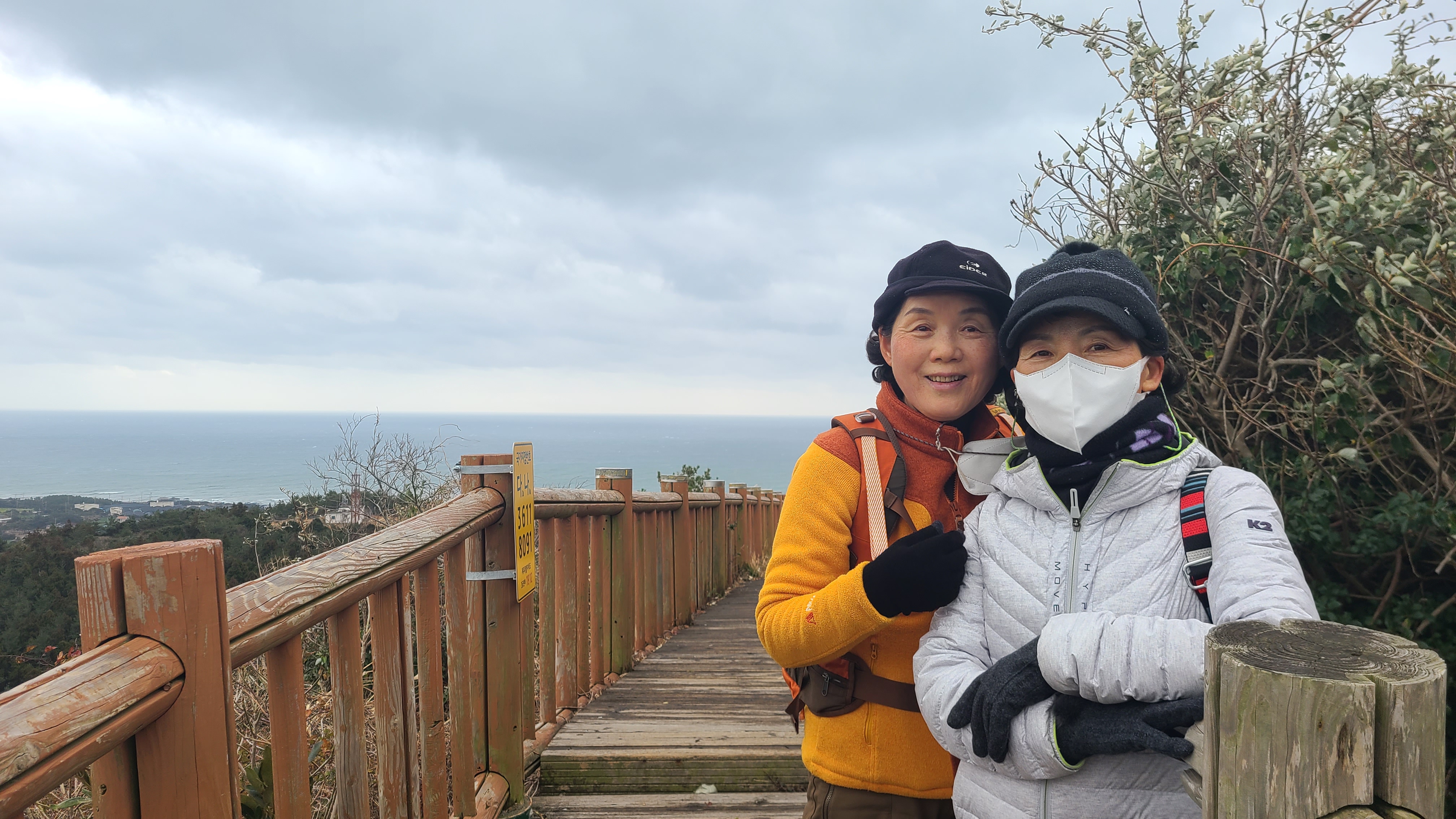 발아래로 표선해비치가 내려다보이고 멀리 제주앞바다가 구름으로 뒤덮여있다.