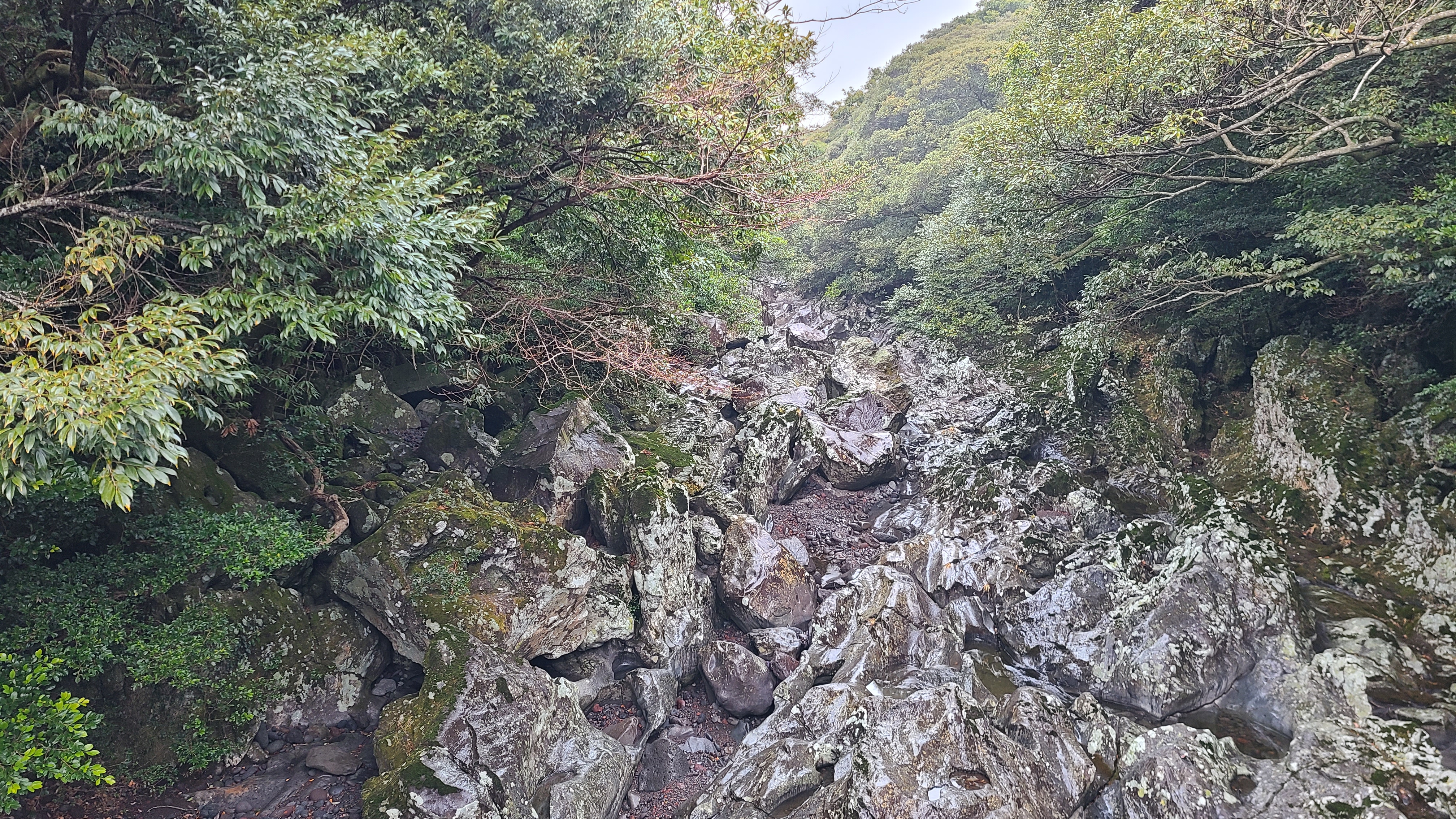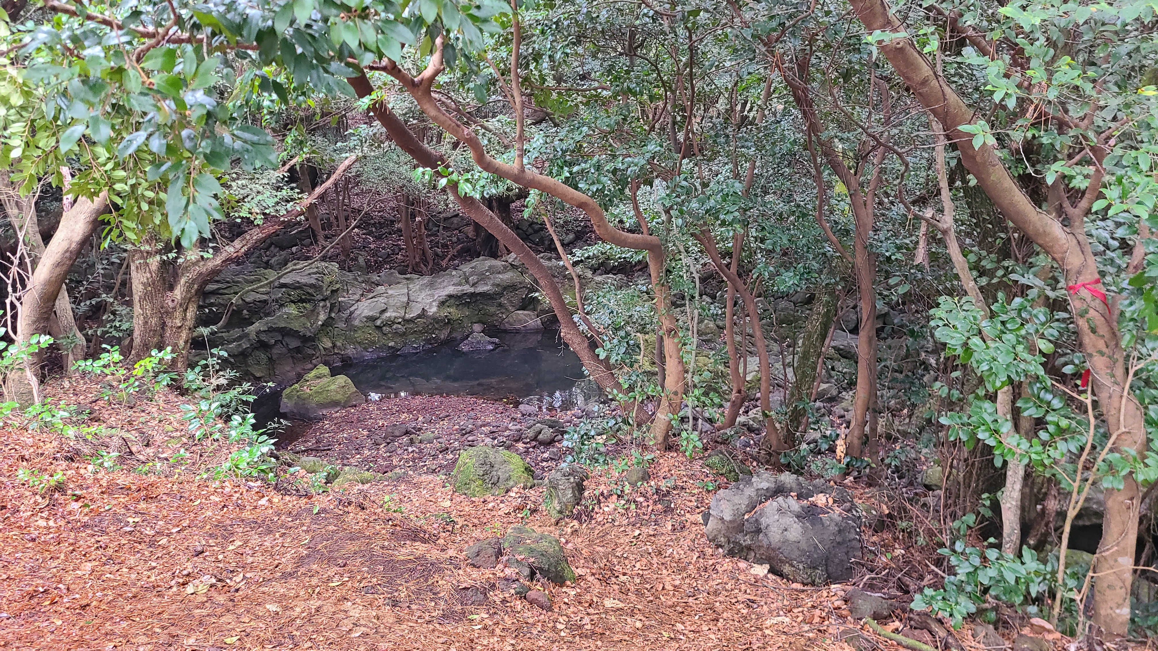 우거진 원시림사이에 물은 흐르지않지만 돌이쌓인 계곡이있고 제주에서는 드물게 물이 고인곳도있다.