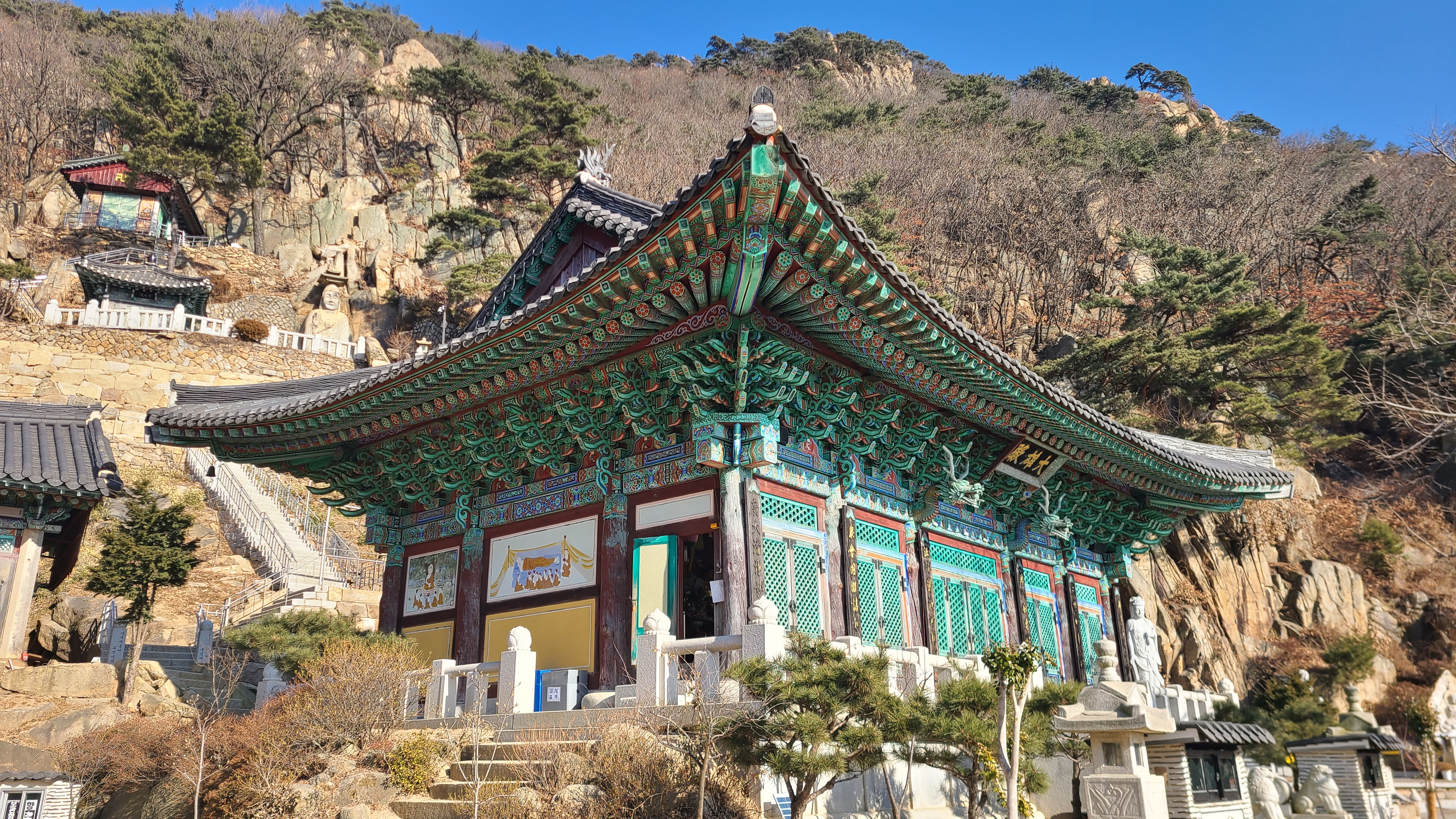 삼막사 법당에서 삼배를 올리고 염불암으로 걸어 염불암상단의 안부에서 햇볕을 쬐며 사과한알을