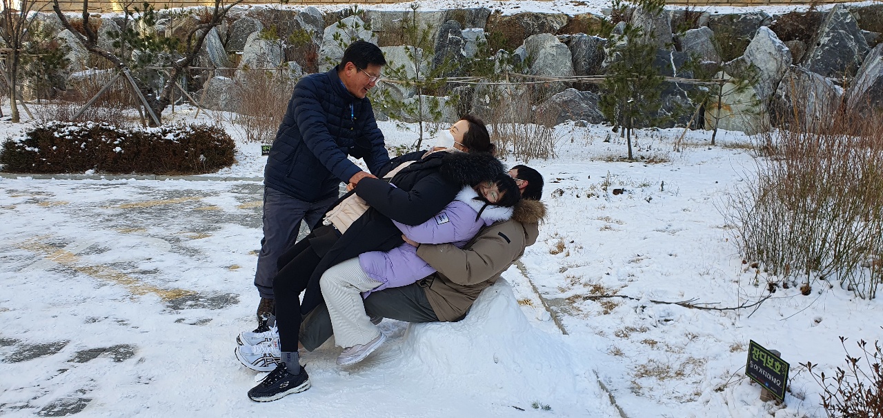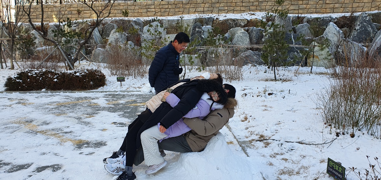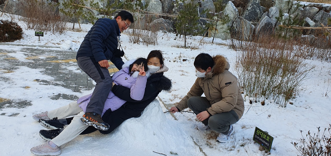 잠시 바깥으로 나가서 배트민턴을 치고는 눈싸움과 눈장난을 하면서 한동안 보내노라니