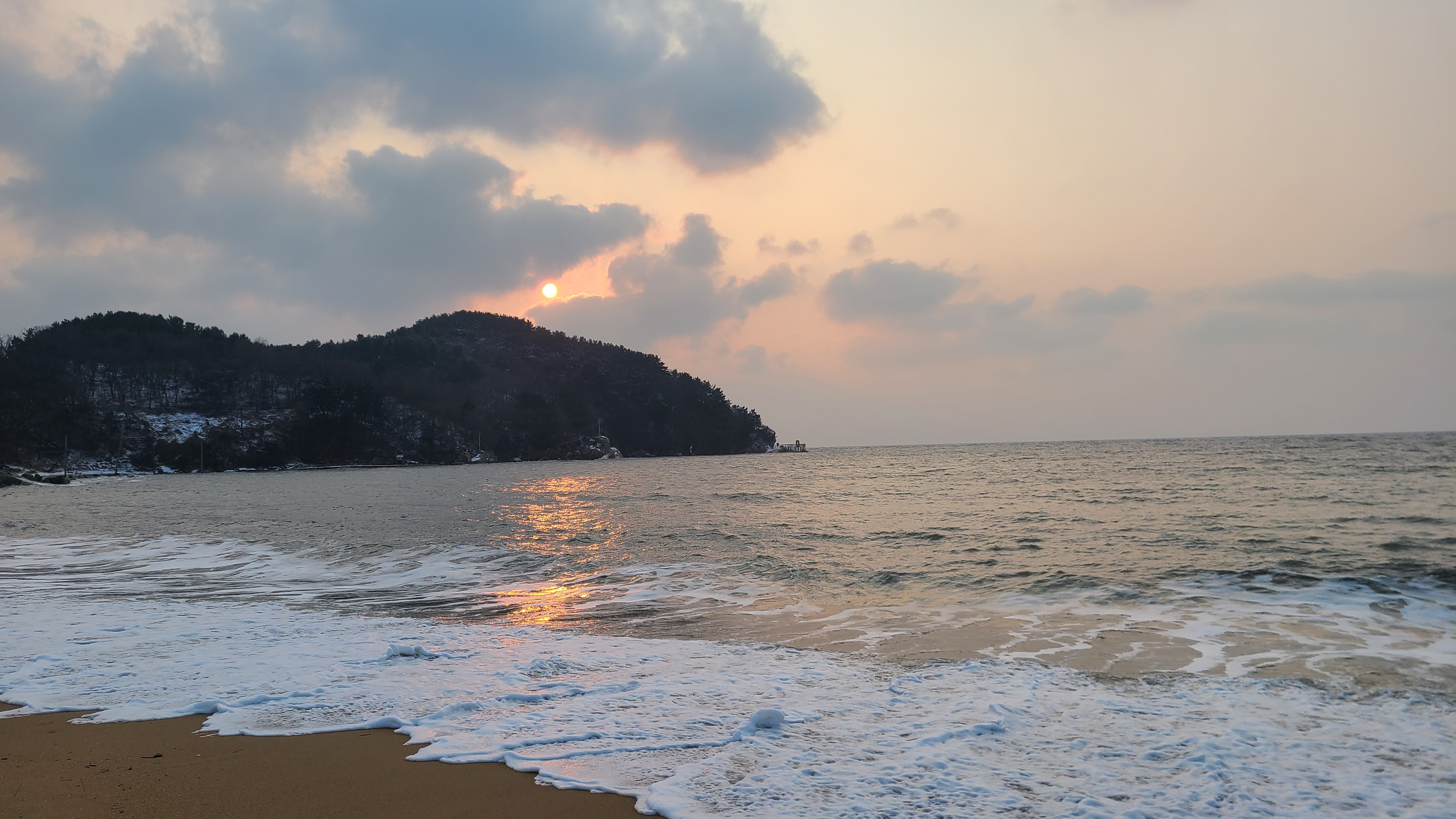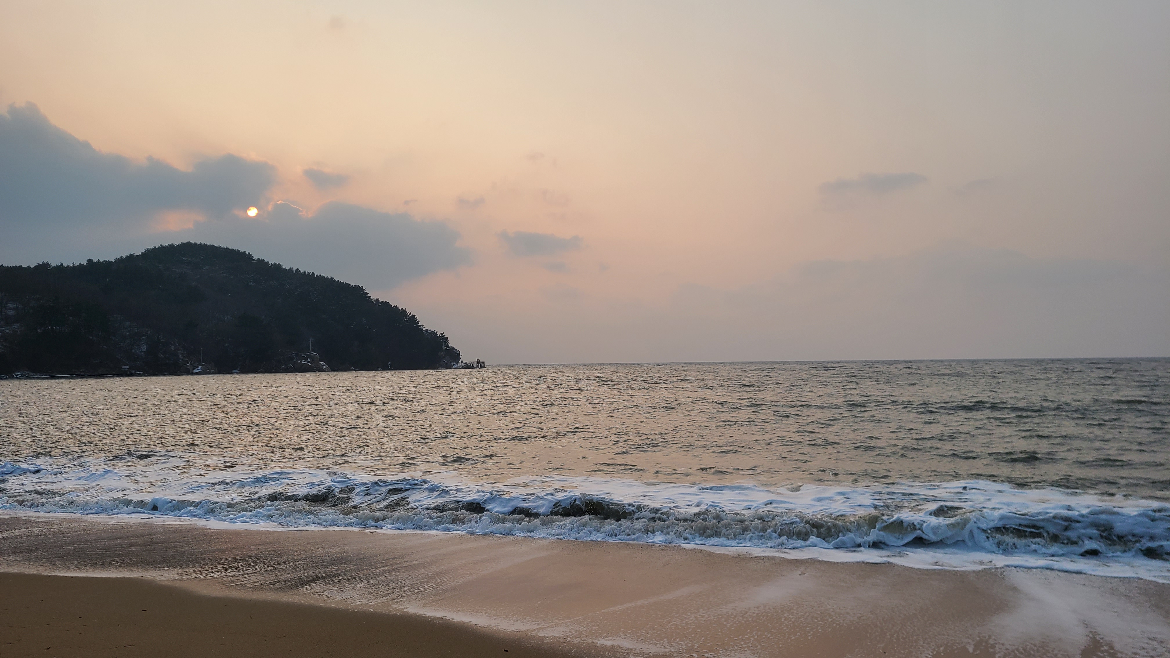 간신히 주차를 하고는 만조의 물결이 밀려오는 해변에서 잠시 바다전경과 파도의 전경을 보노라니 추위가 몰려온다.