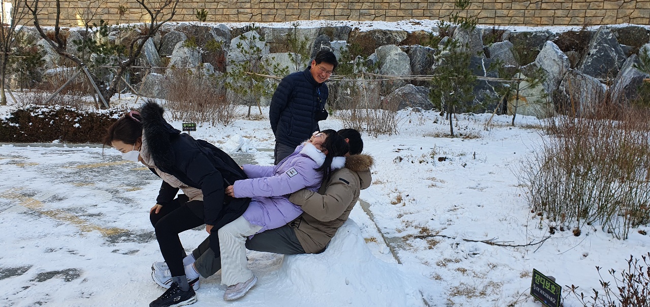 잠시 바깥으로 나가서 배트민턴을 치고는 눈싸움과 눈장난을 하면서 한동안 보내노라니