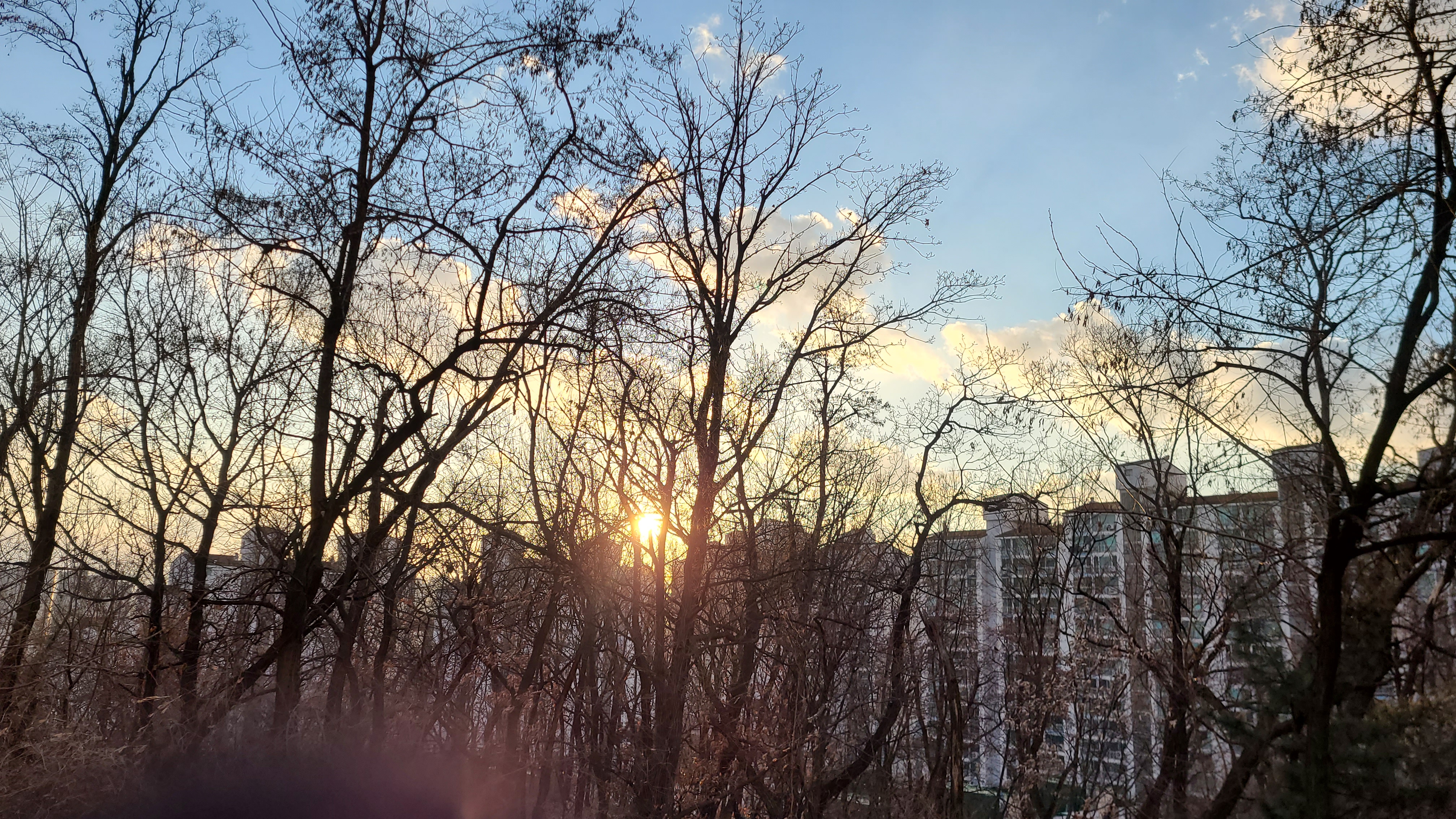 입춘임에도 날씨는 차갑다. 한파가 며칠간 다가온다니 해가 지면서 날씨는 더욱 추워지려나 보다.