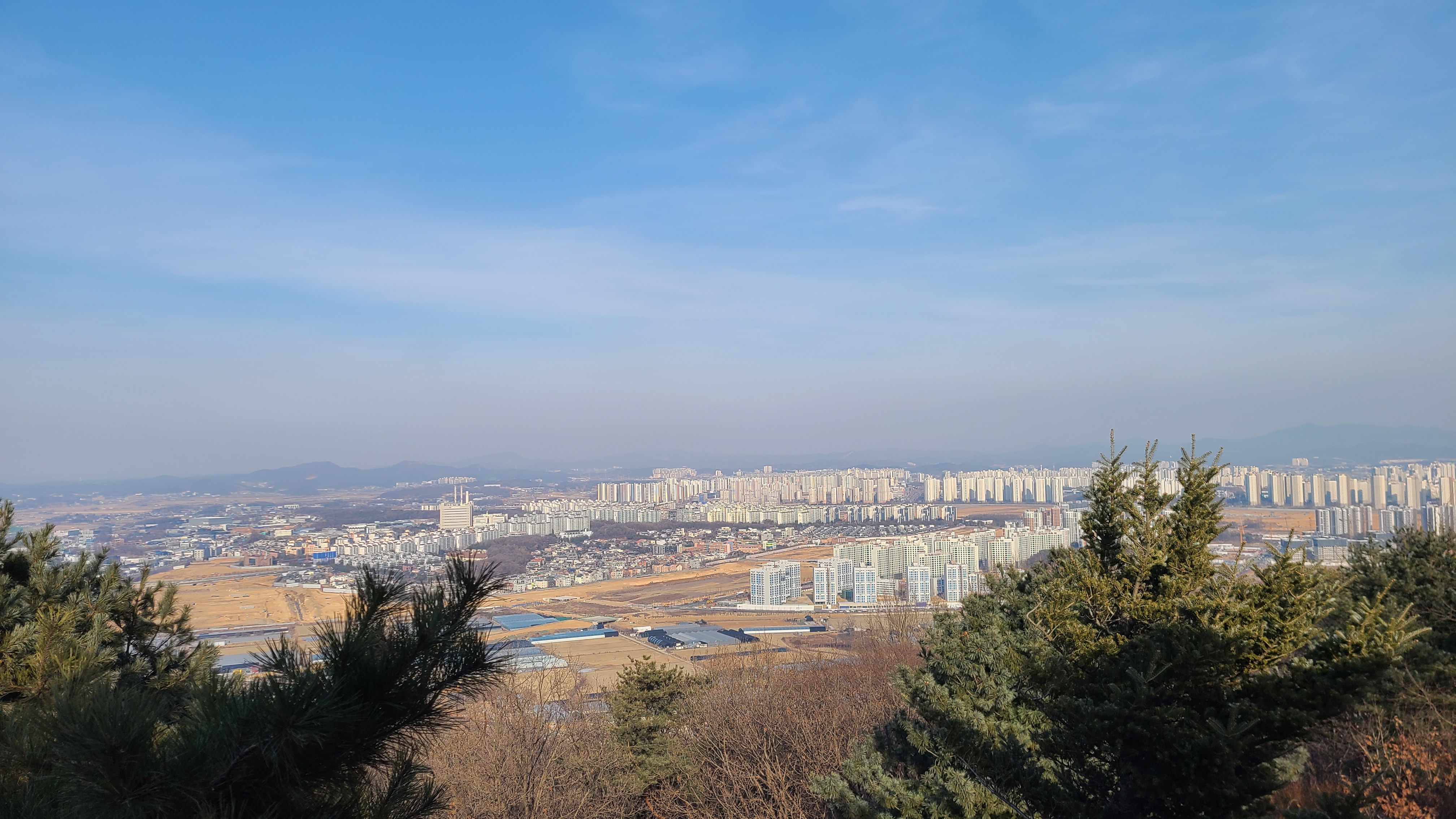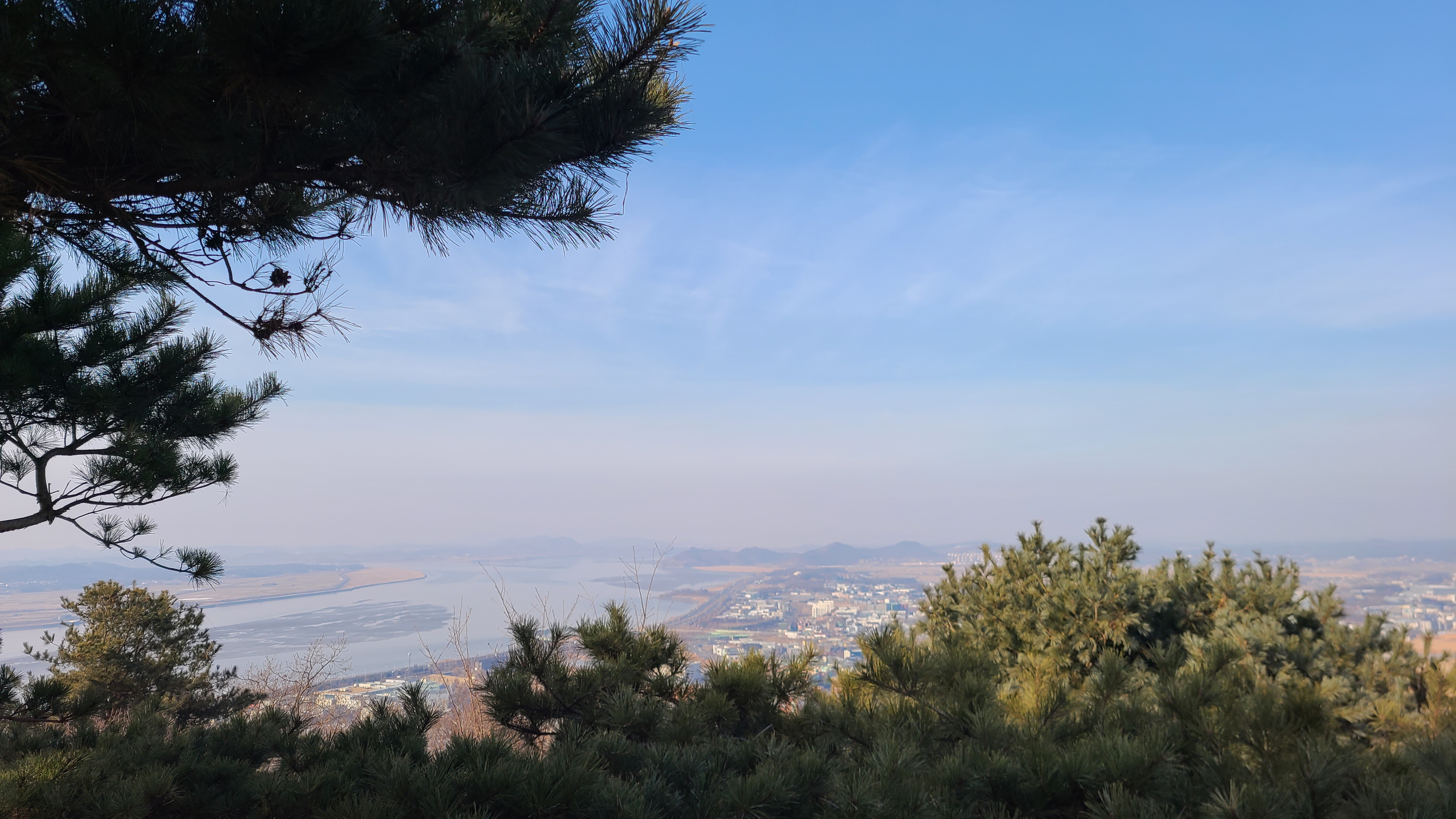 정상의 정자에서 잠시 휴식을 취하면 한강과 김포,파주일대와 멀리 북한의 모습도 얼핏 바라보인다.