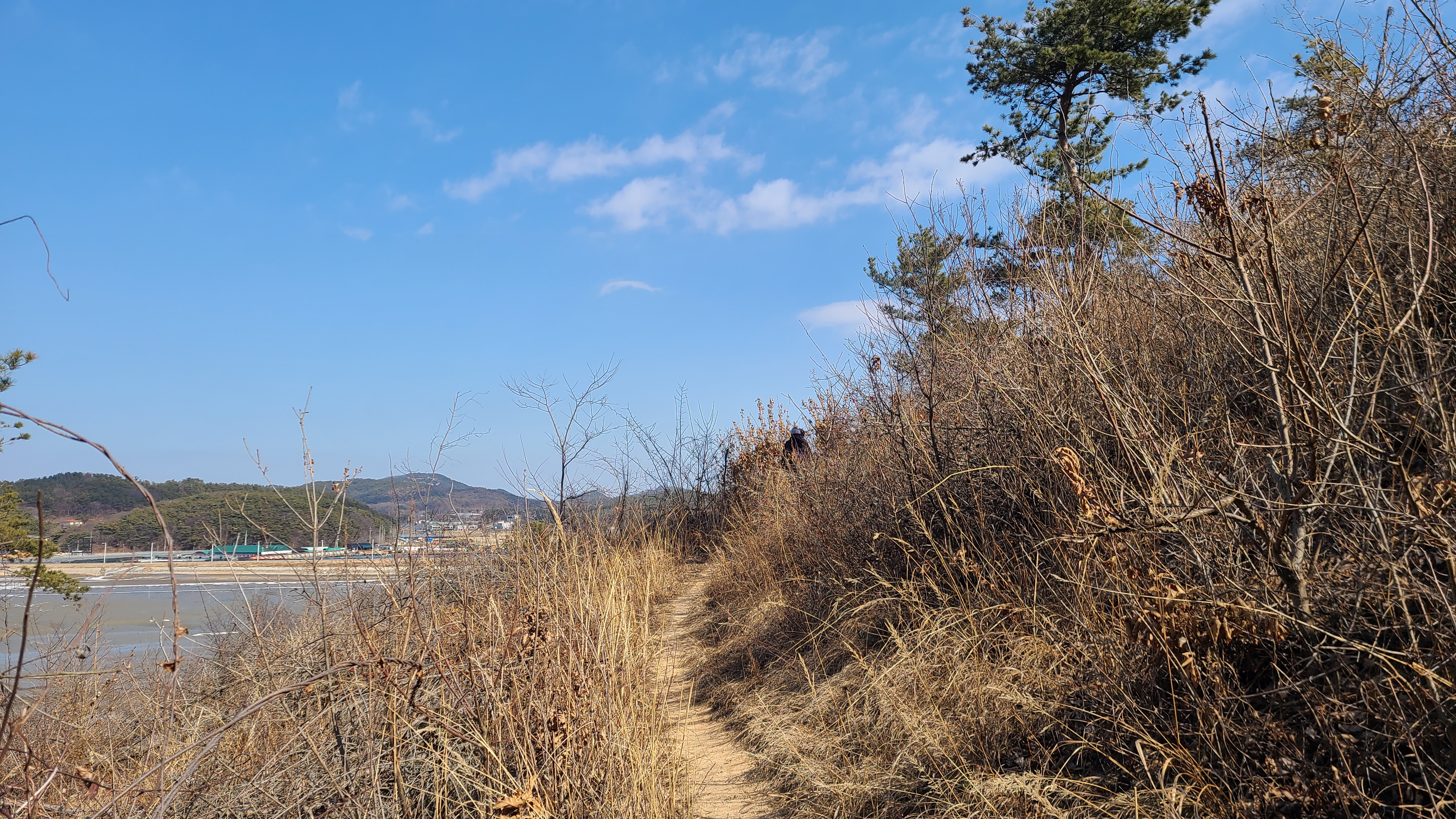 야트막한 언덕배기를 넘어서니 아일랜드CC를 좌측에 끼고 걷는 길이고 그 이후로는 산을 오르는 코스이다.