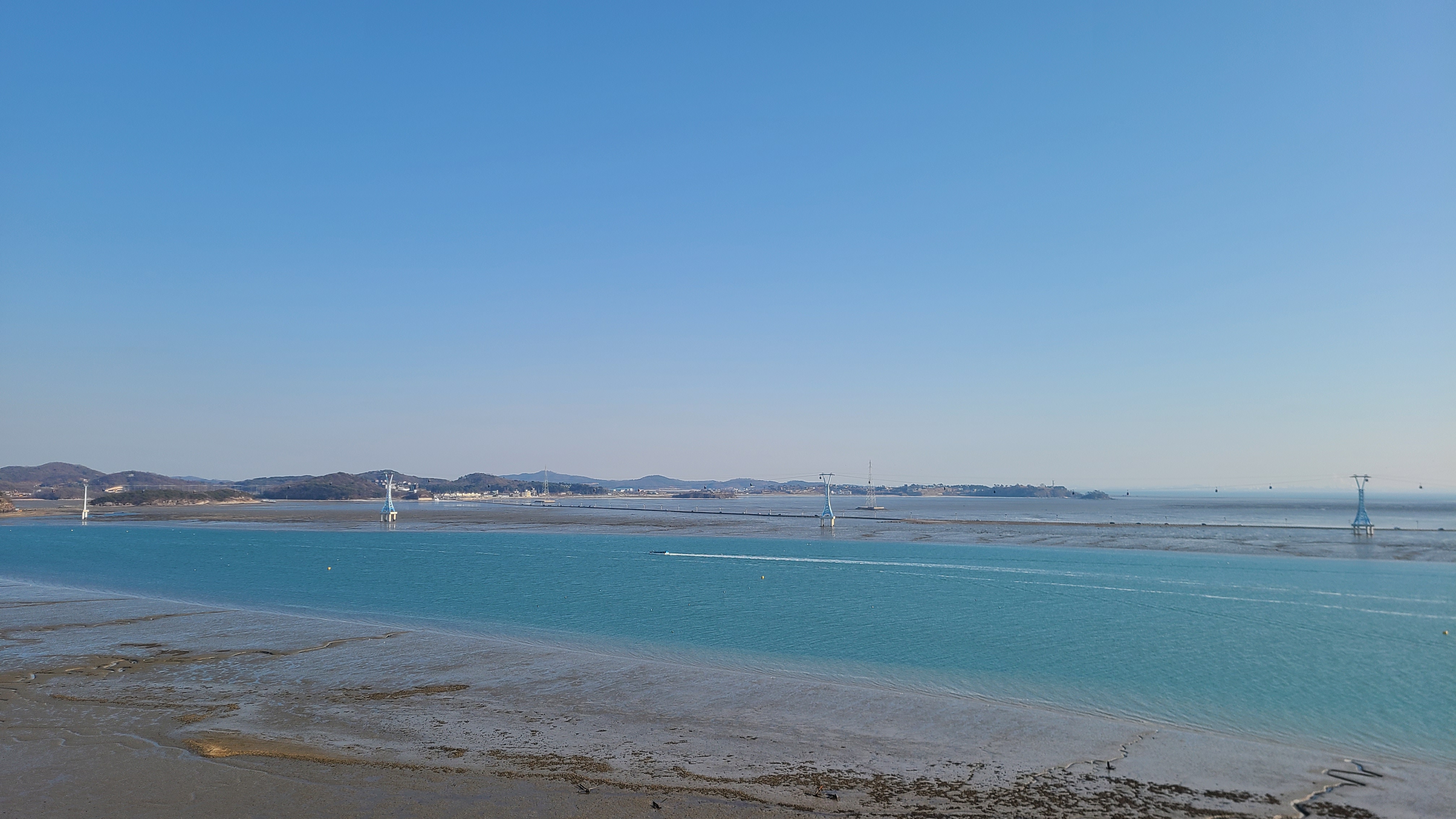 대부도와 영흥도,선재도가 바라보이고 제부도를 연결하는 케이블카가 완공되어 운행하고있다.