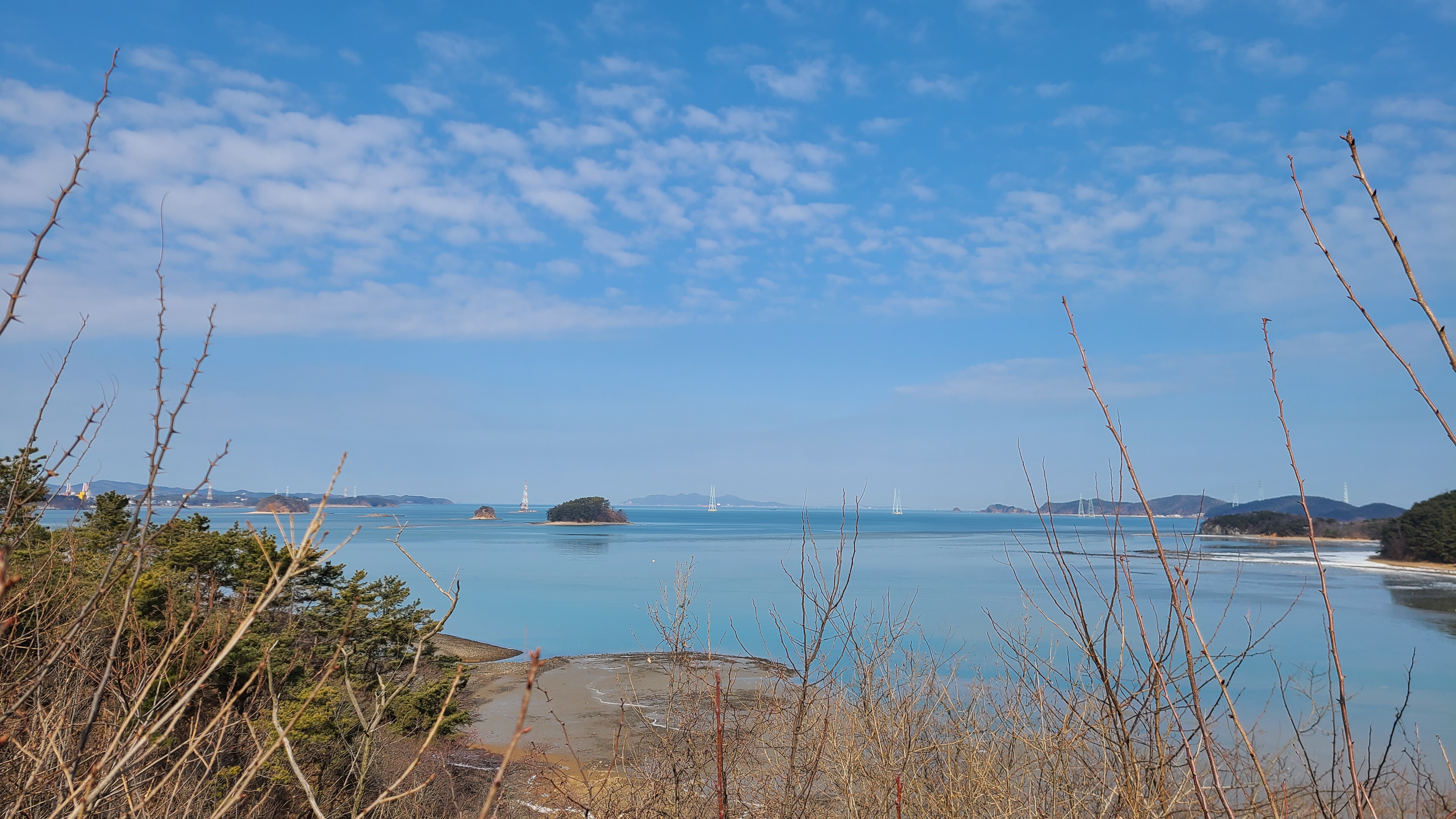 눈앞에 펼쳐진 갯벌을 지나 누에섬으로 들어간다. 오랫만에 써보는 누에는 누애로 헷갈린다.