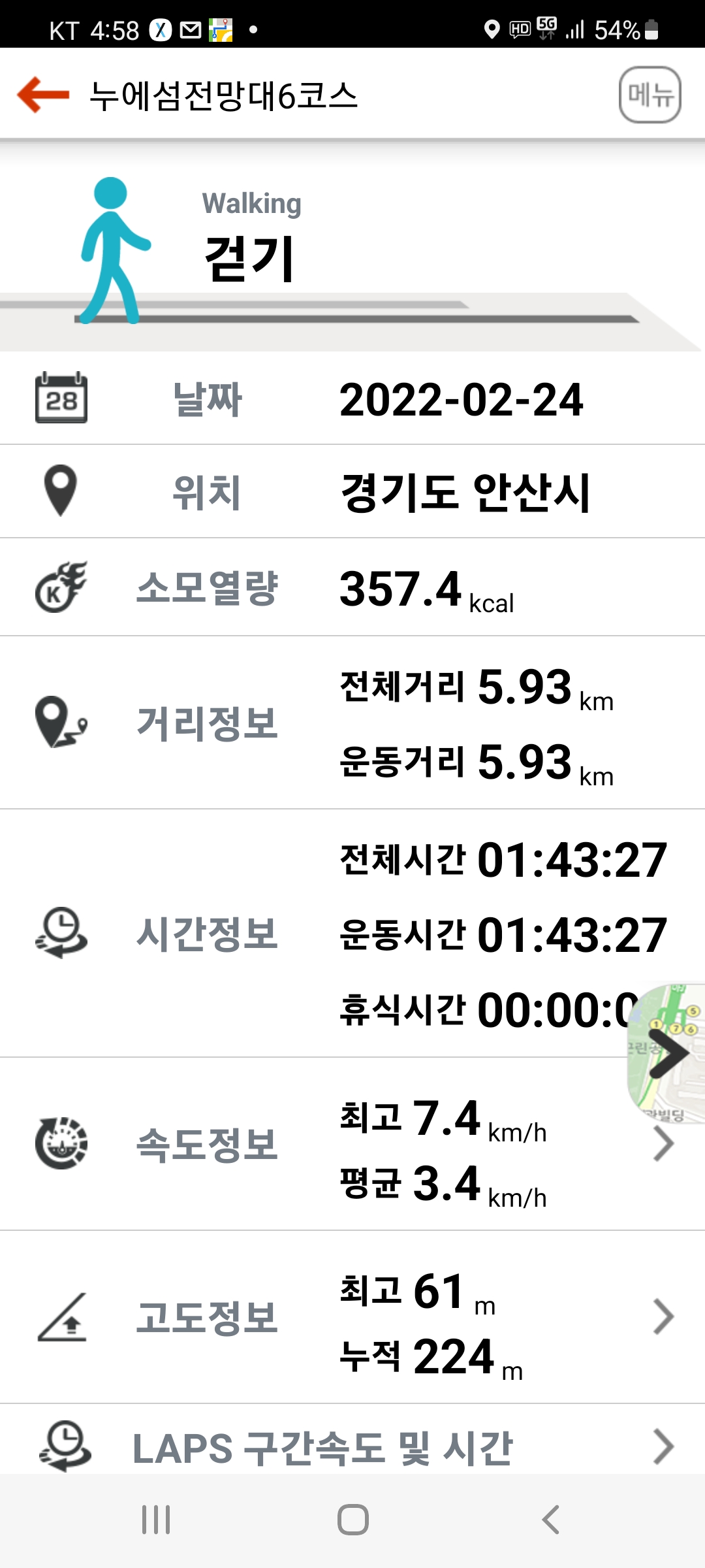 커피까지 마시고 일어나 원점으로 회귀하니 3시간이 소요되었고 8.59km를 걸었다.