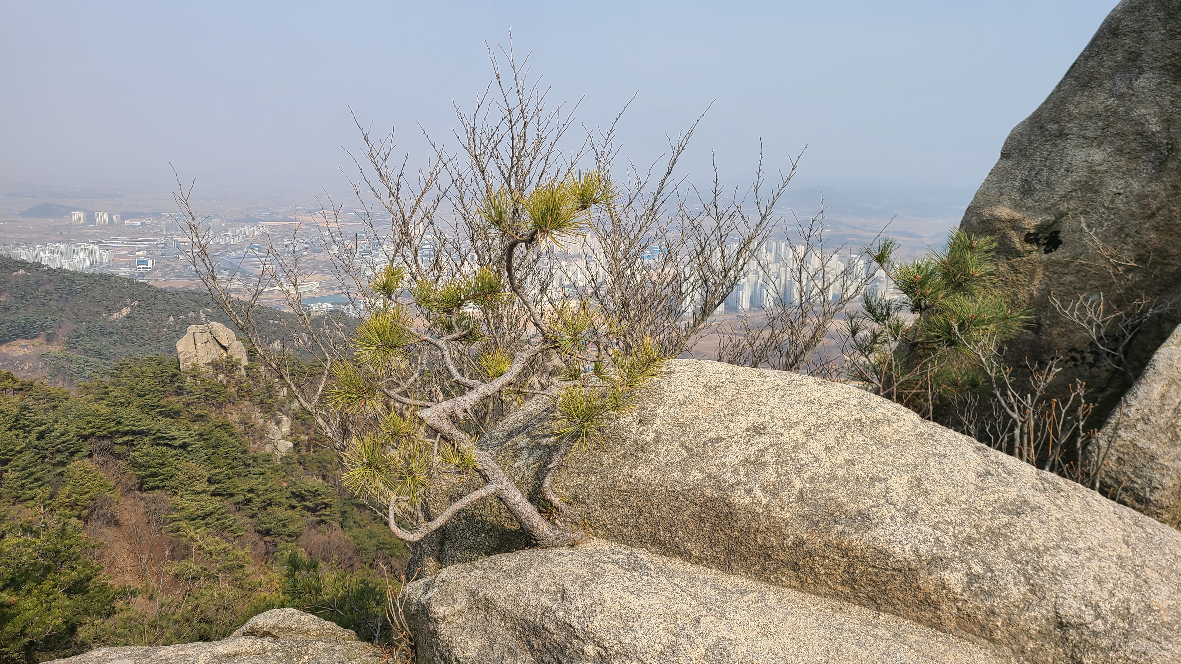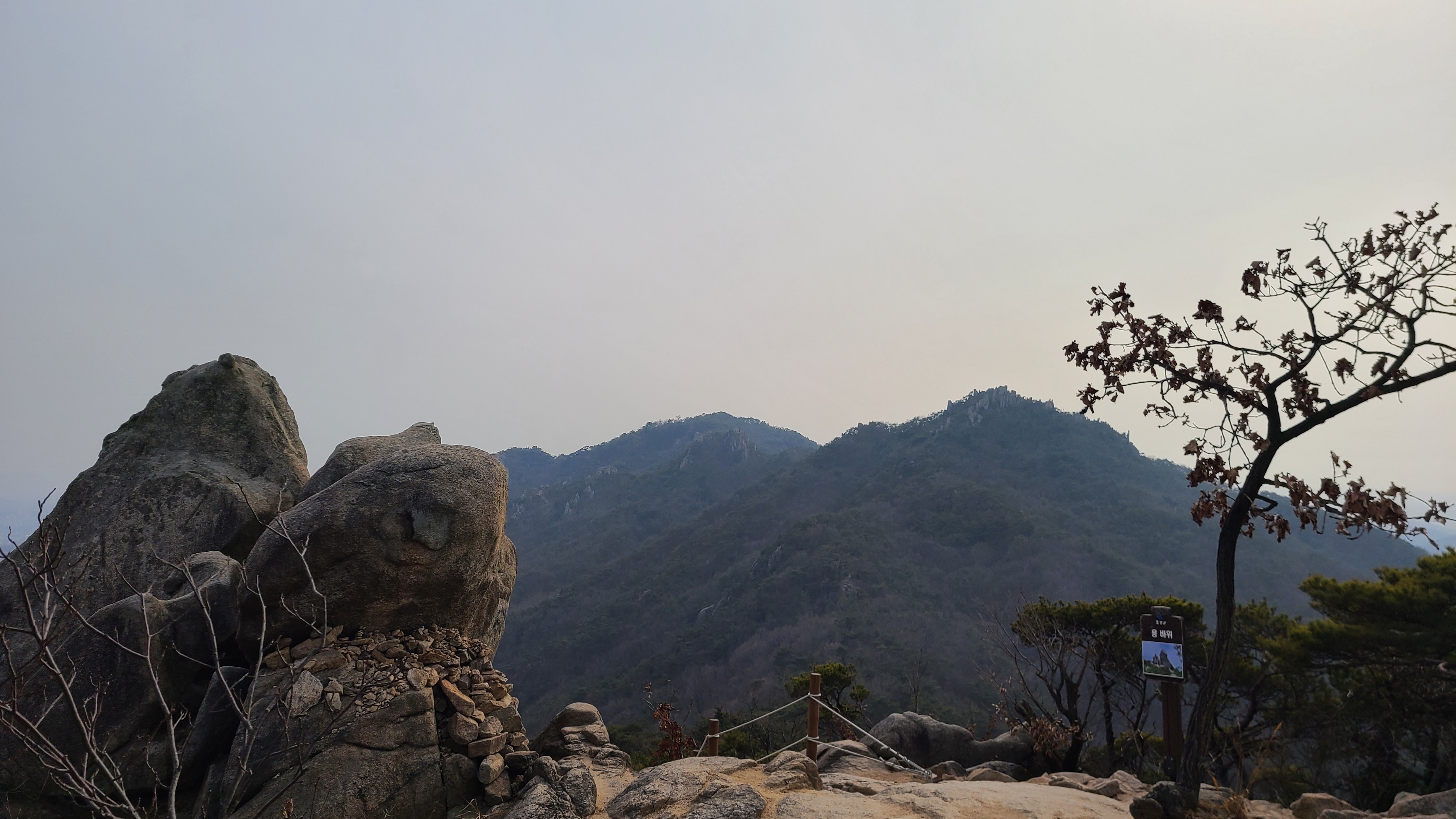 높지않지만 나름 바위산으로 구성된 안부를 오르는데 바람이 엄청세게 불어온다.