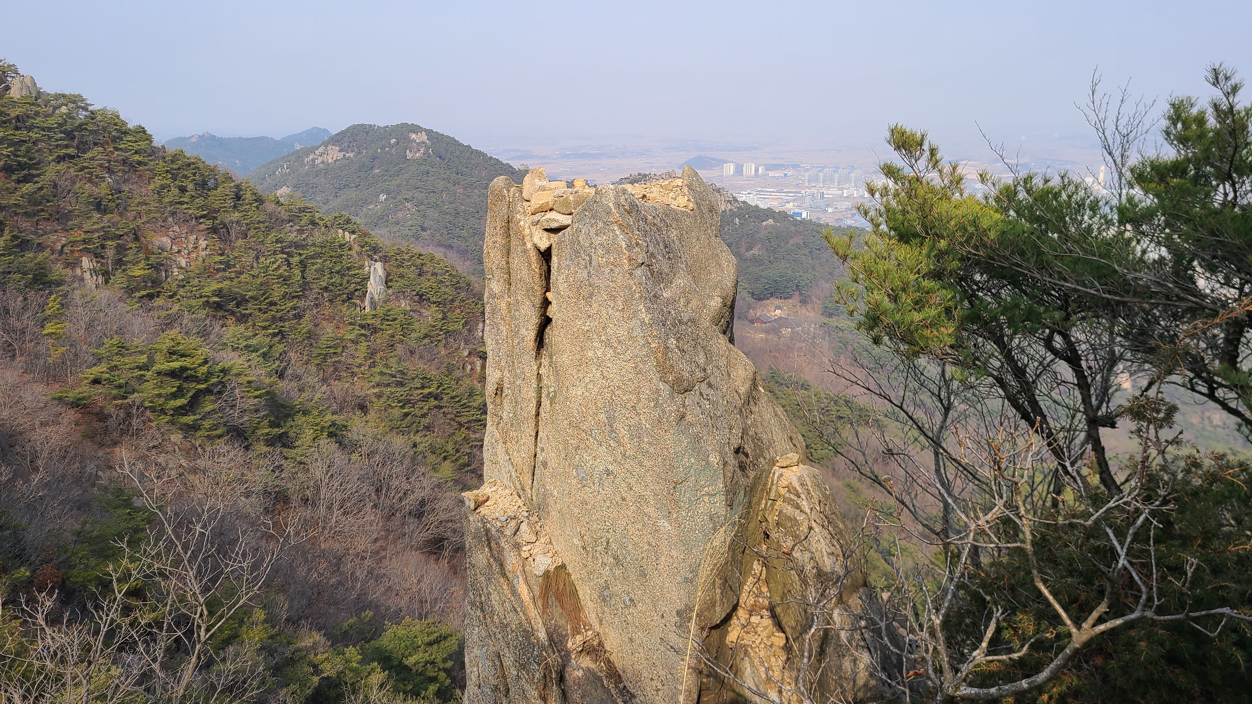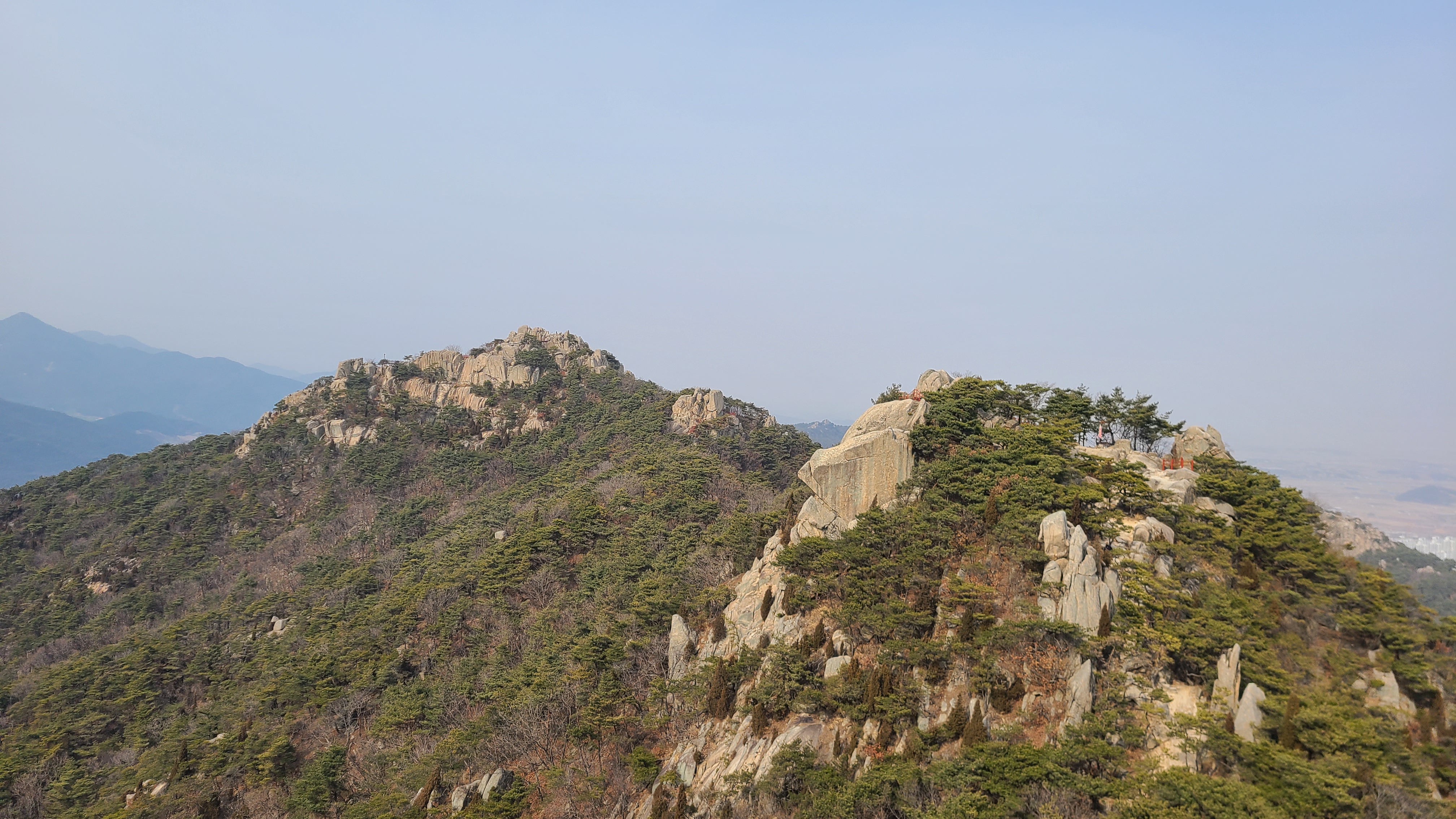 높지않지만 나름 바위산으로 구성된 안부를 오르는데 바람이 엄청세게 불어온다.