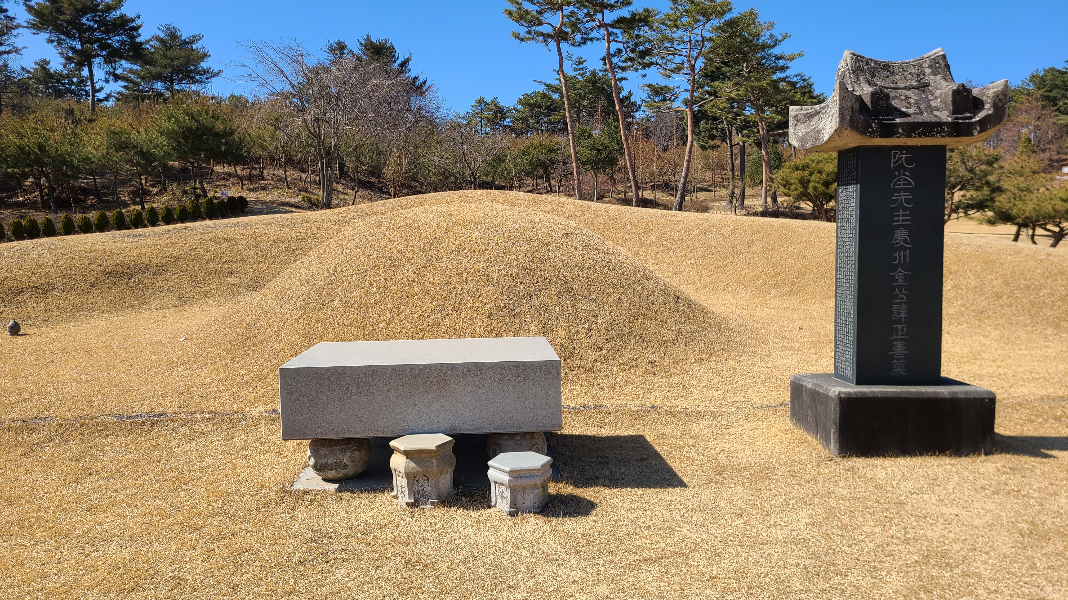 잔디위로 조성된 추사의 무덤앞에 선다.