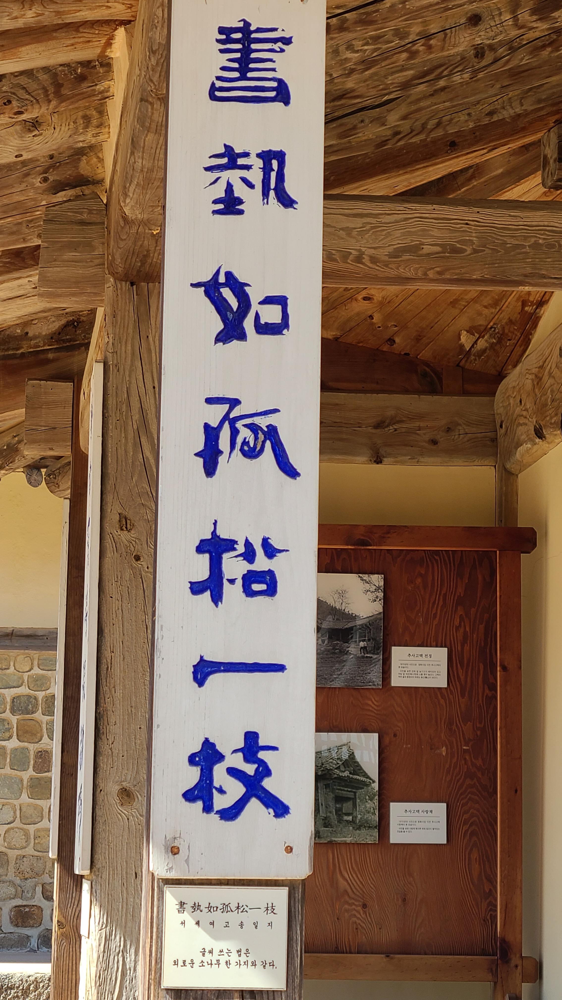 고택의 기둥 곳곳에 추사의 글씨가 걸려있는데 보기에도 웅장하고도 힘이 넘치며 멋진 글씨들이다.