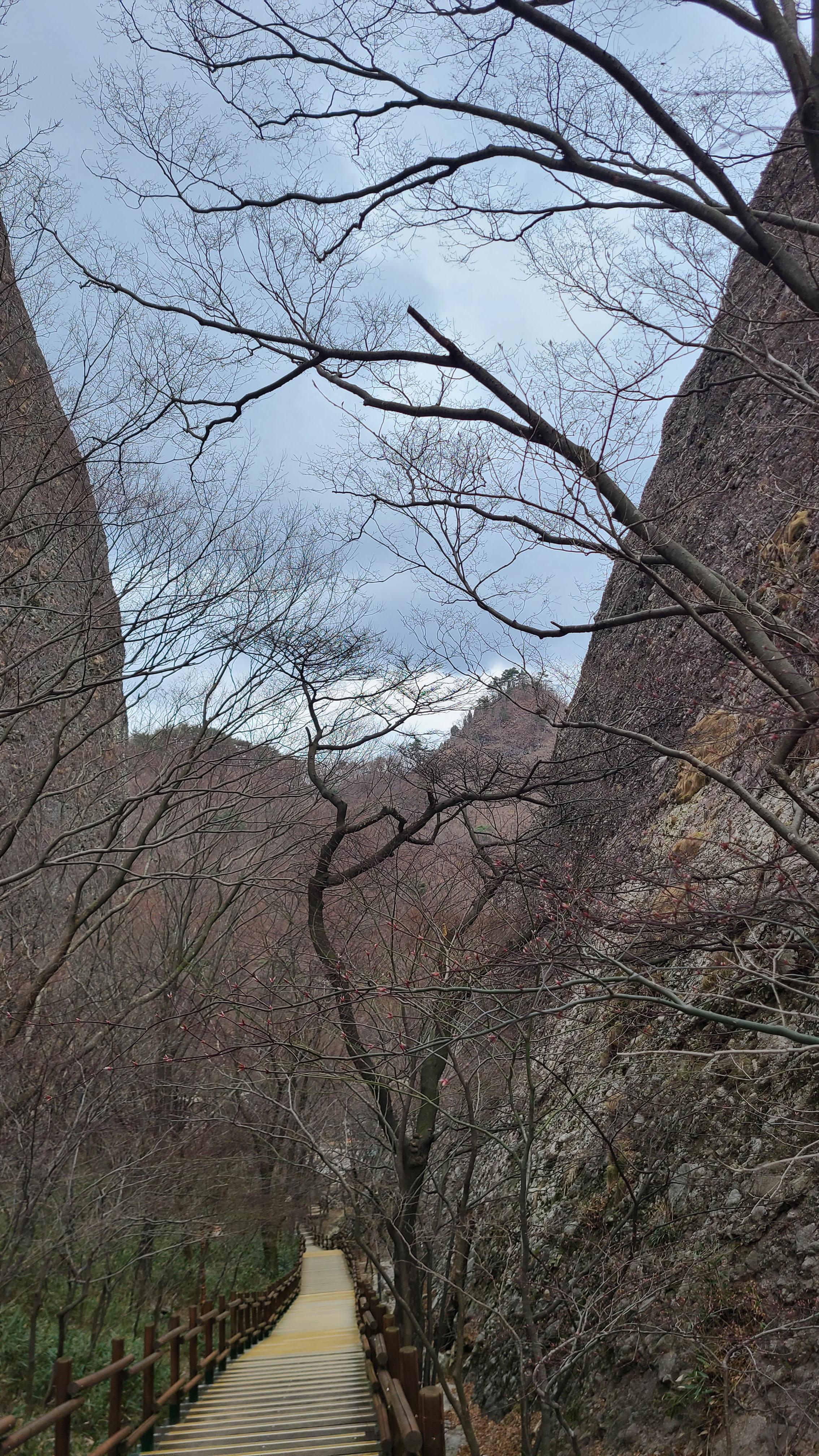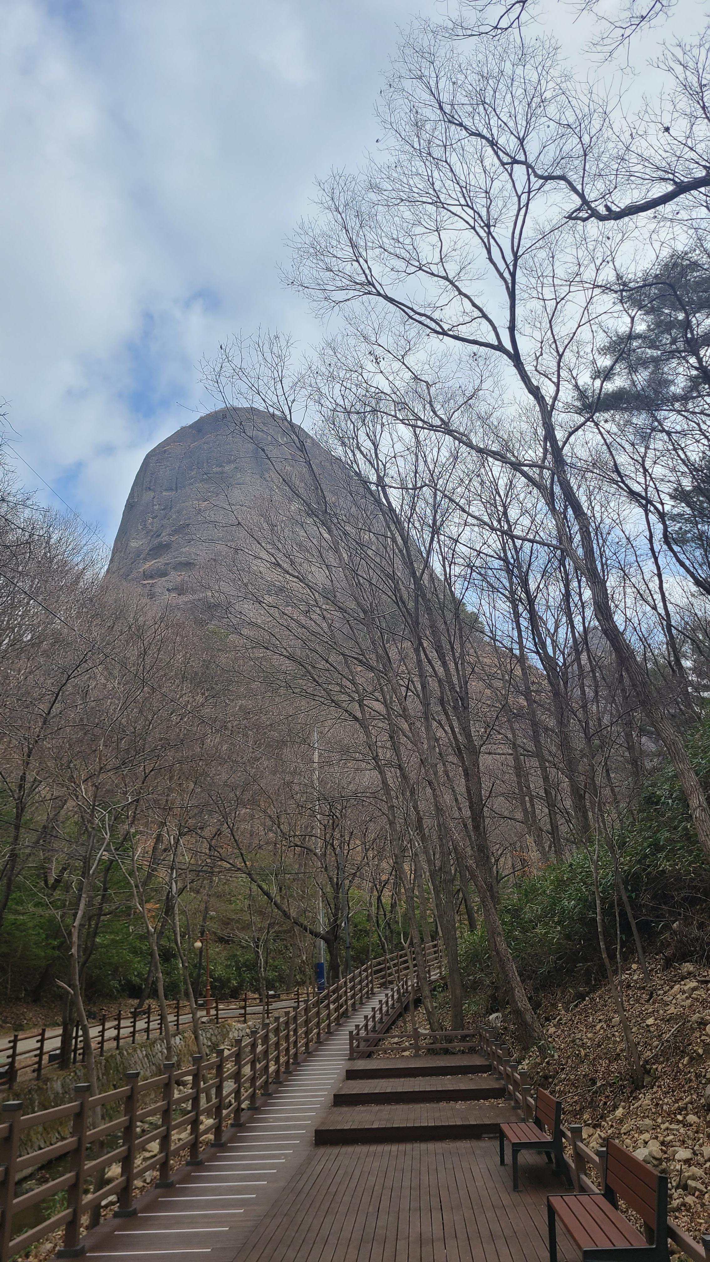 그리고는 경사지게 설치된 데크계단길을 따라 오르며 천황문에 올라선다.