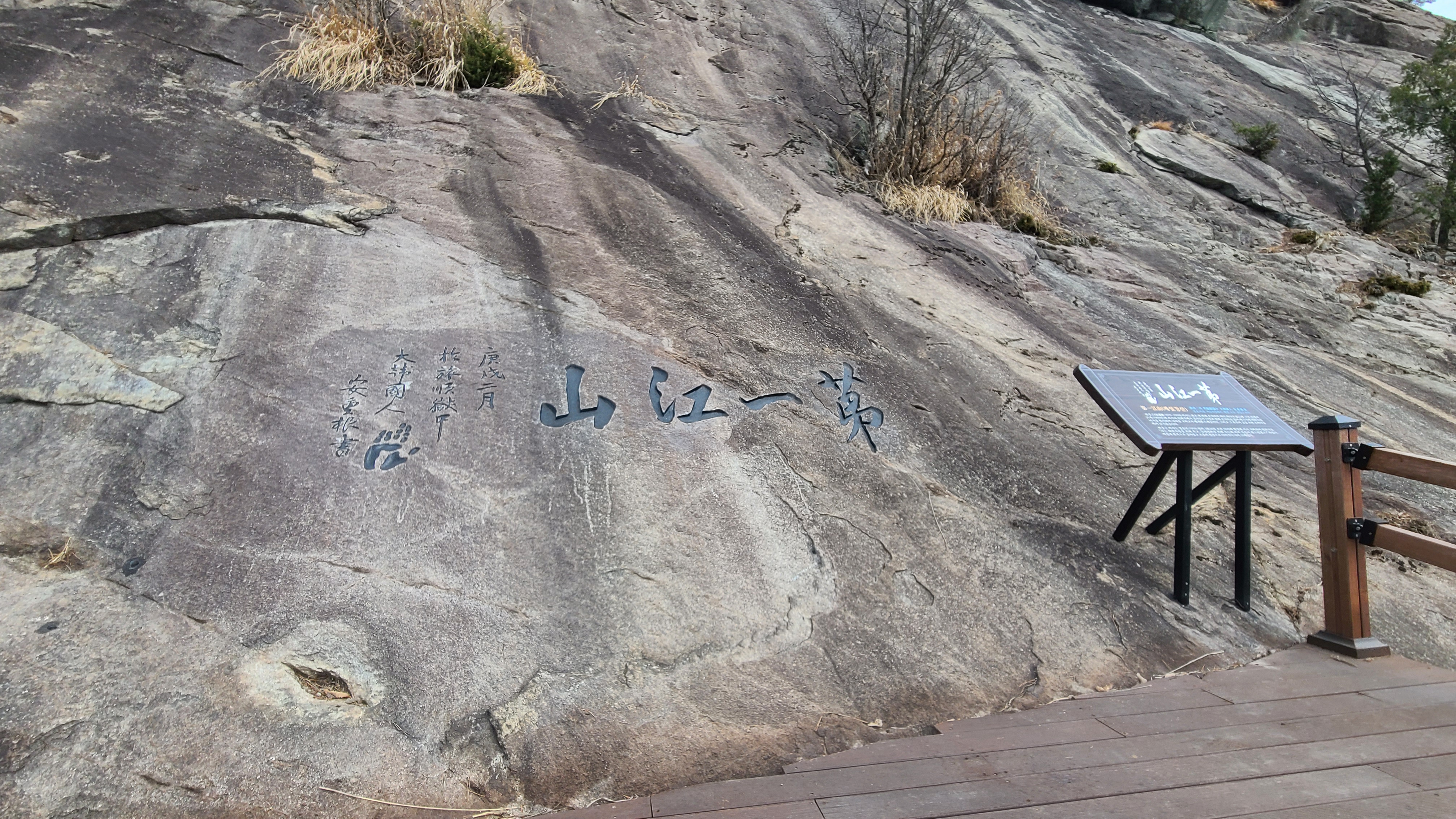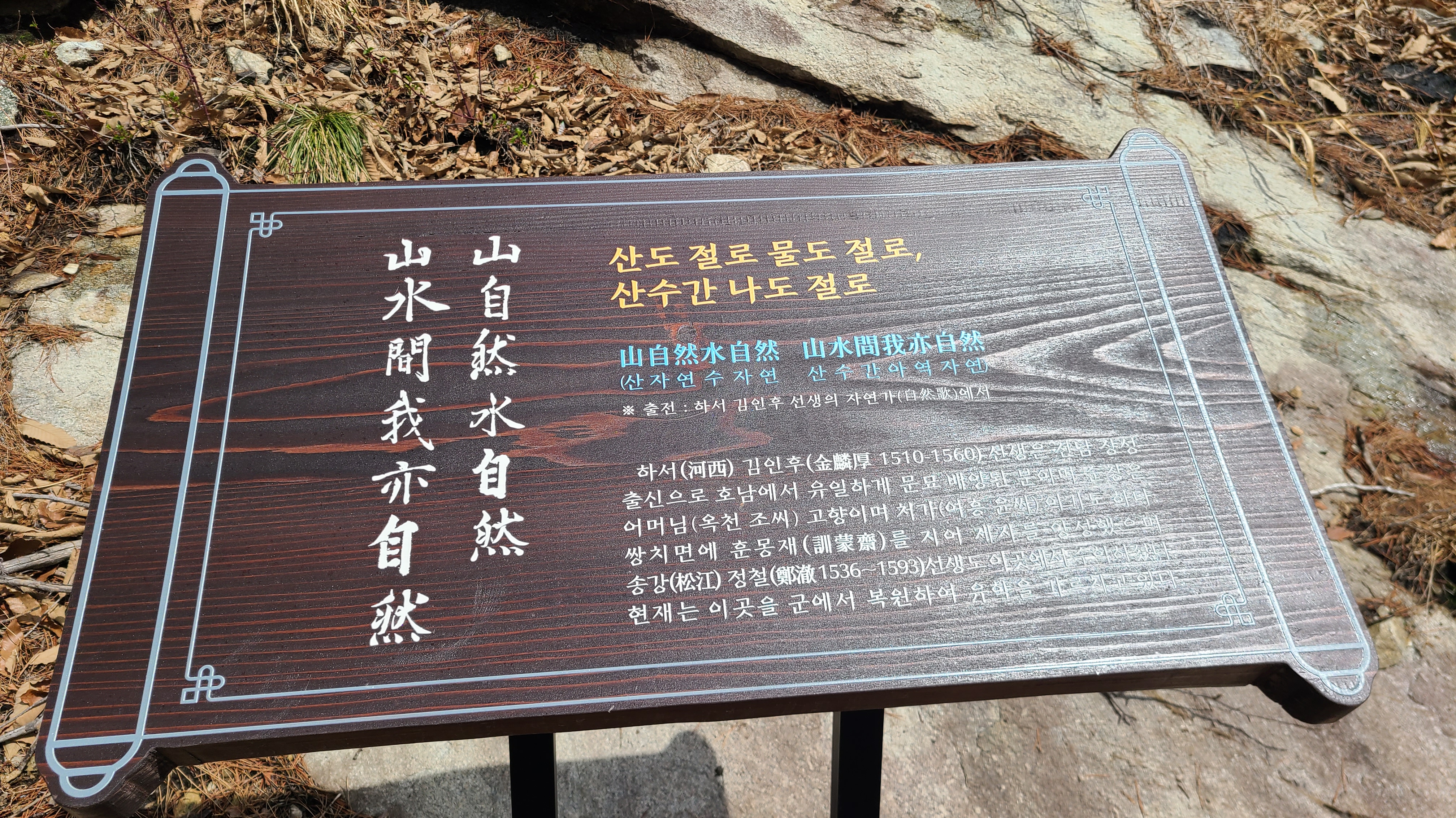 잔도길인 하늘길을 걷는데 여기저기 바위에 좋은 글귀를 조성하여 놓았다.