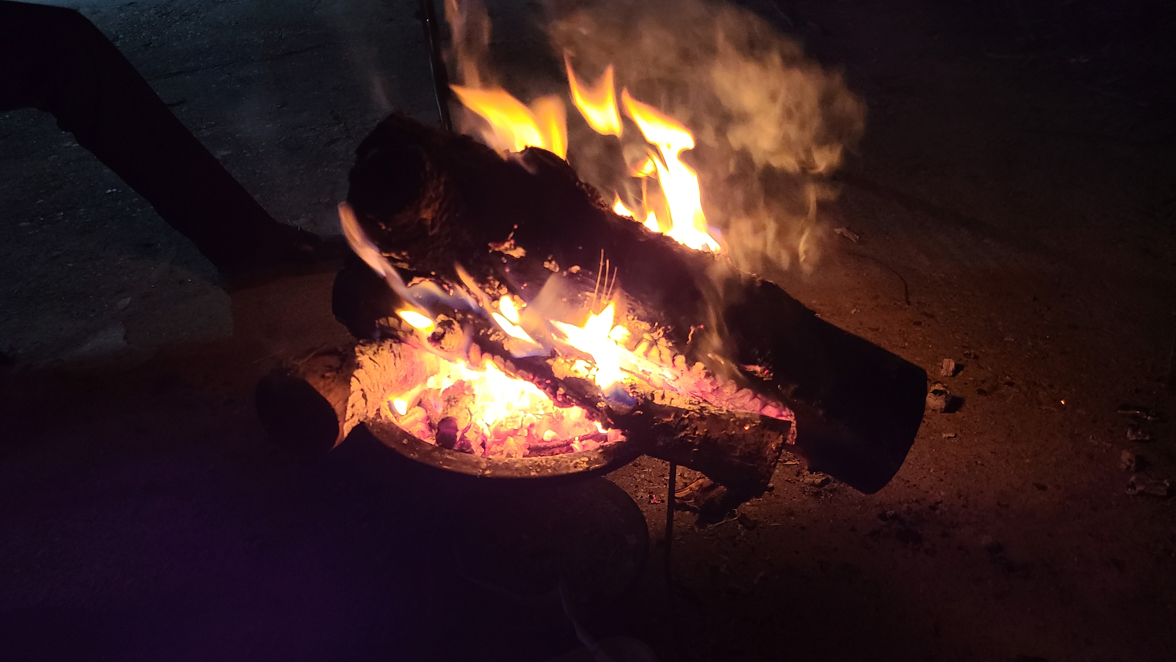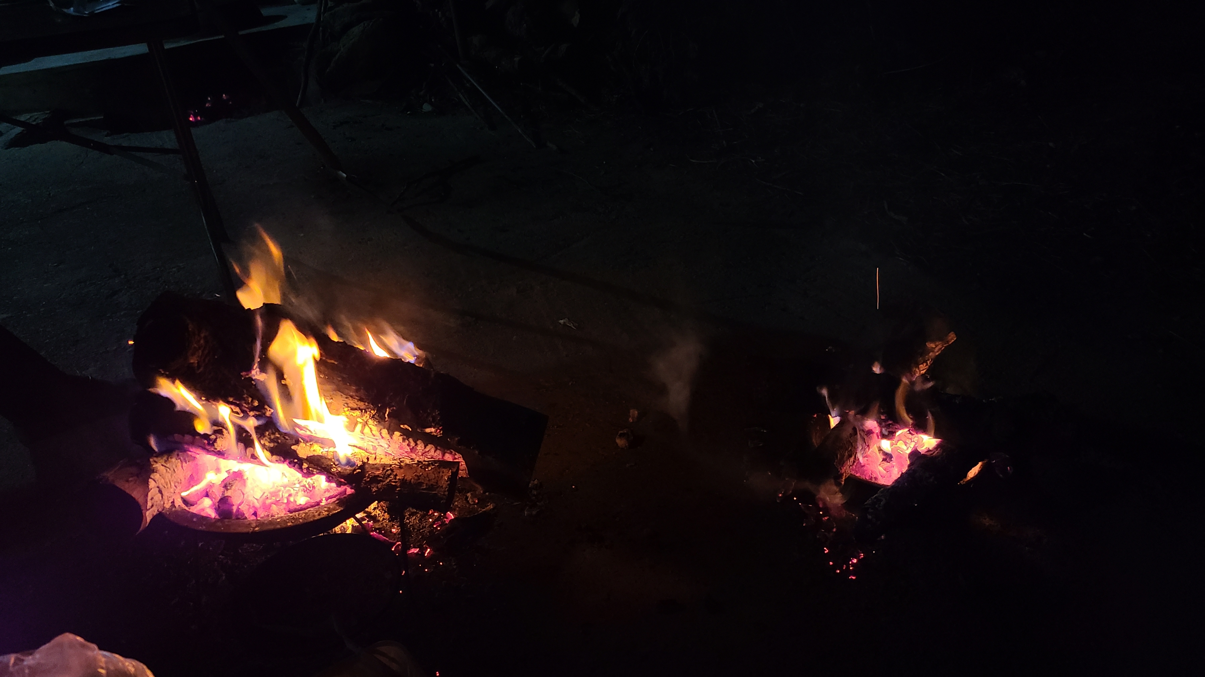 그리고 숙소로 돌아와서는 마당에서 불멍을 하면서 치킨과 족발을 시켜 맥주한잔을 하려는데