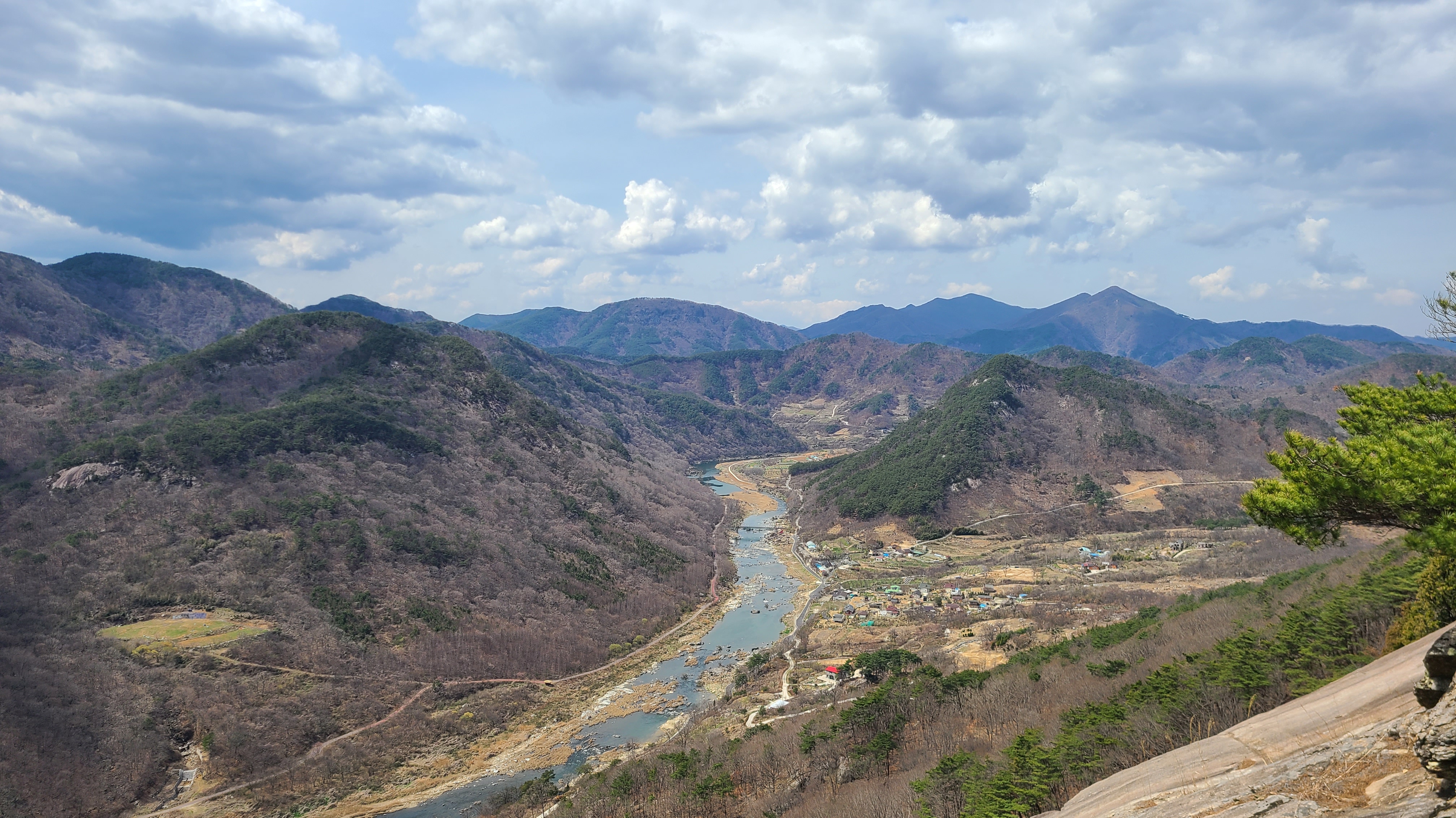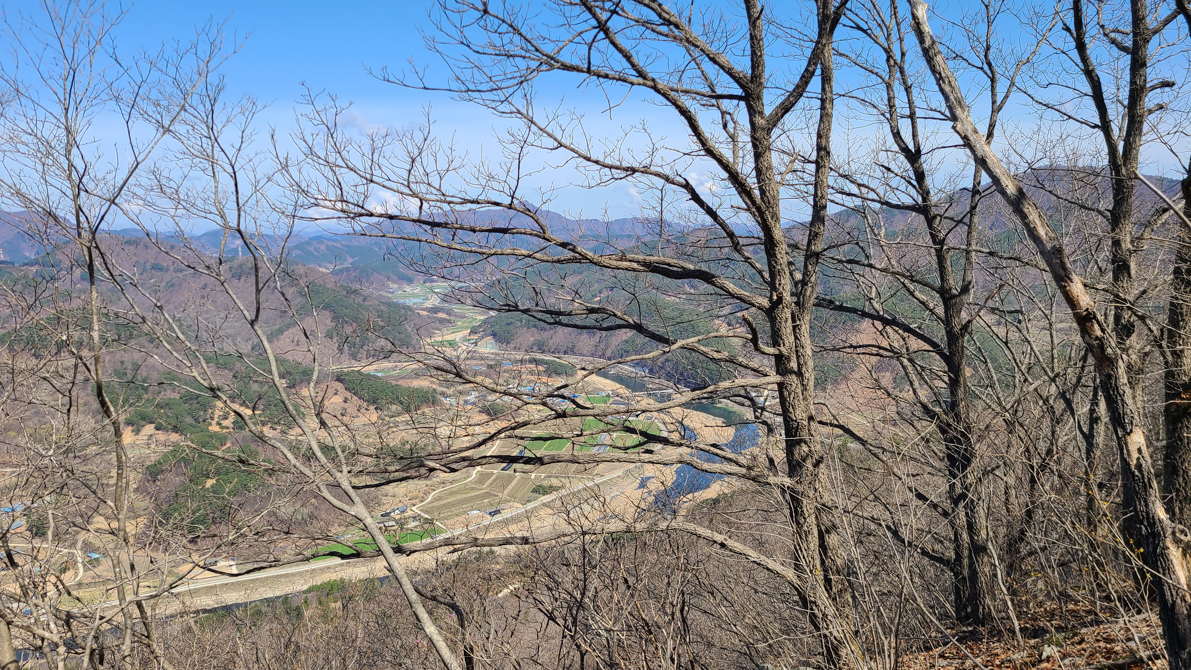 올랐던 코스와 들머리도 바라보이고...바위위에 앉아 한참을 쉬면서 풍광을 감상해본다.