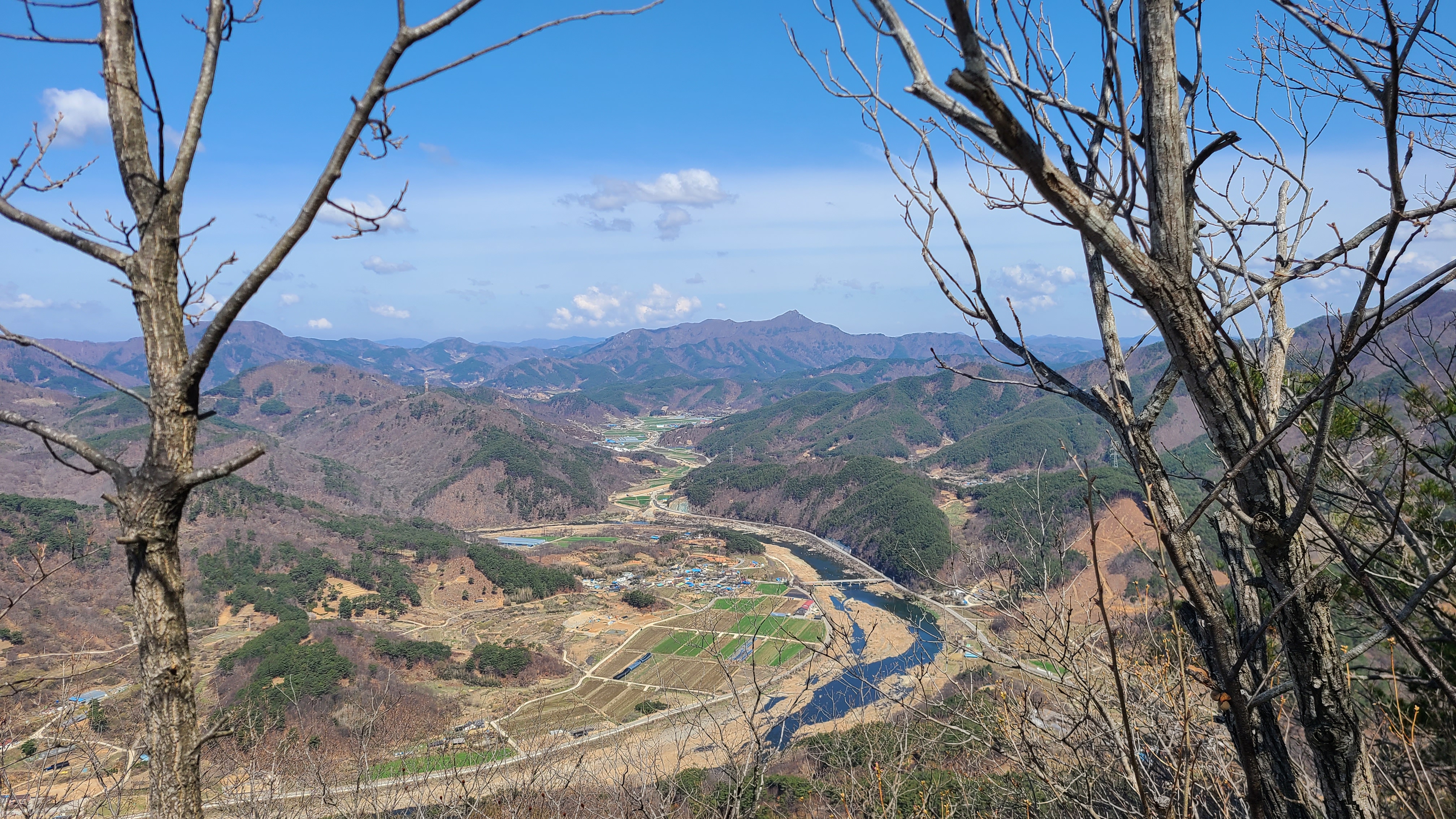 회문산과 채계산으로 추정되는 산도 바라보이고,발아래는 섬진강의 줄기와 주변산과 임도들이 아름답게