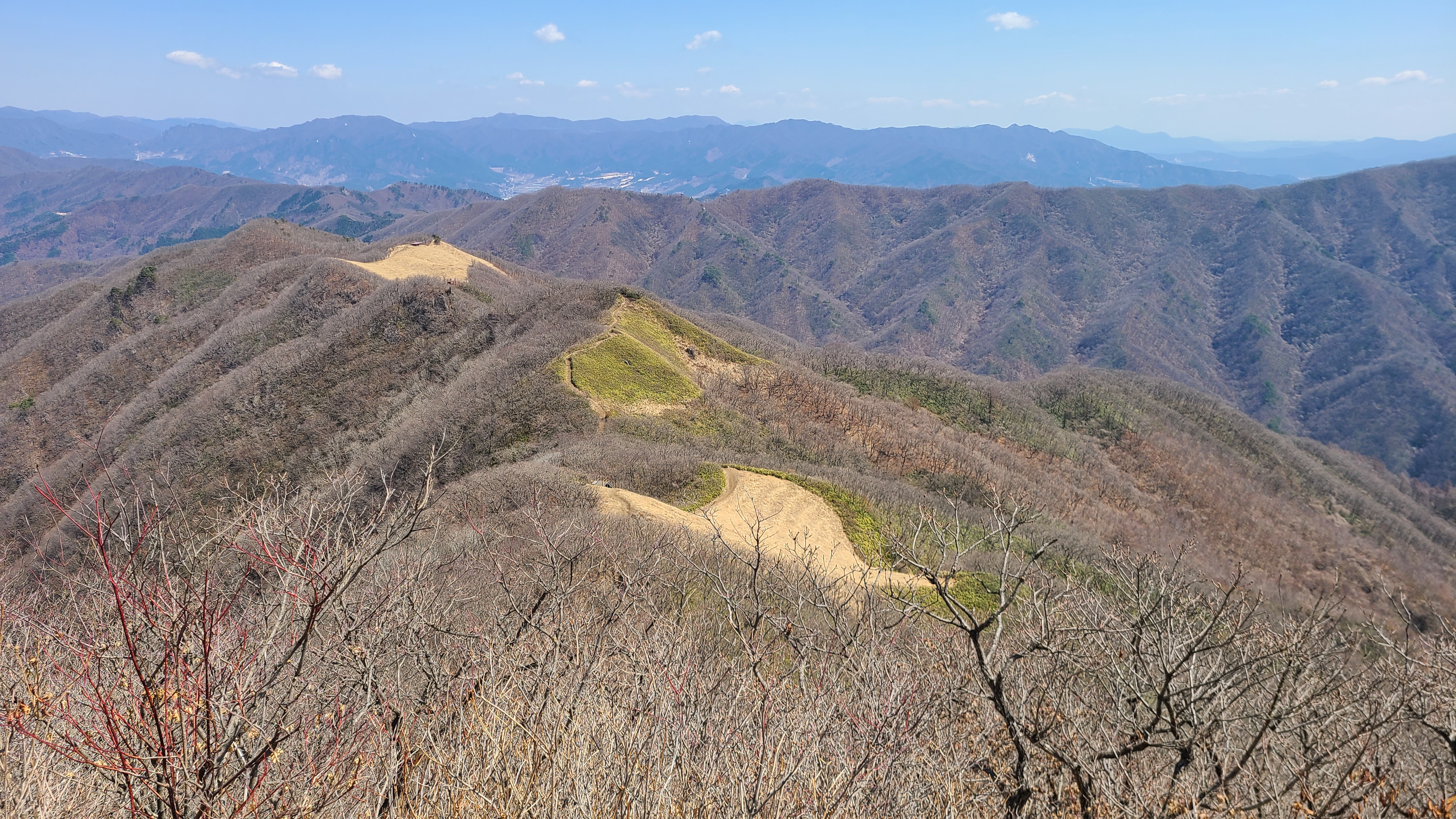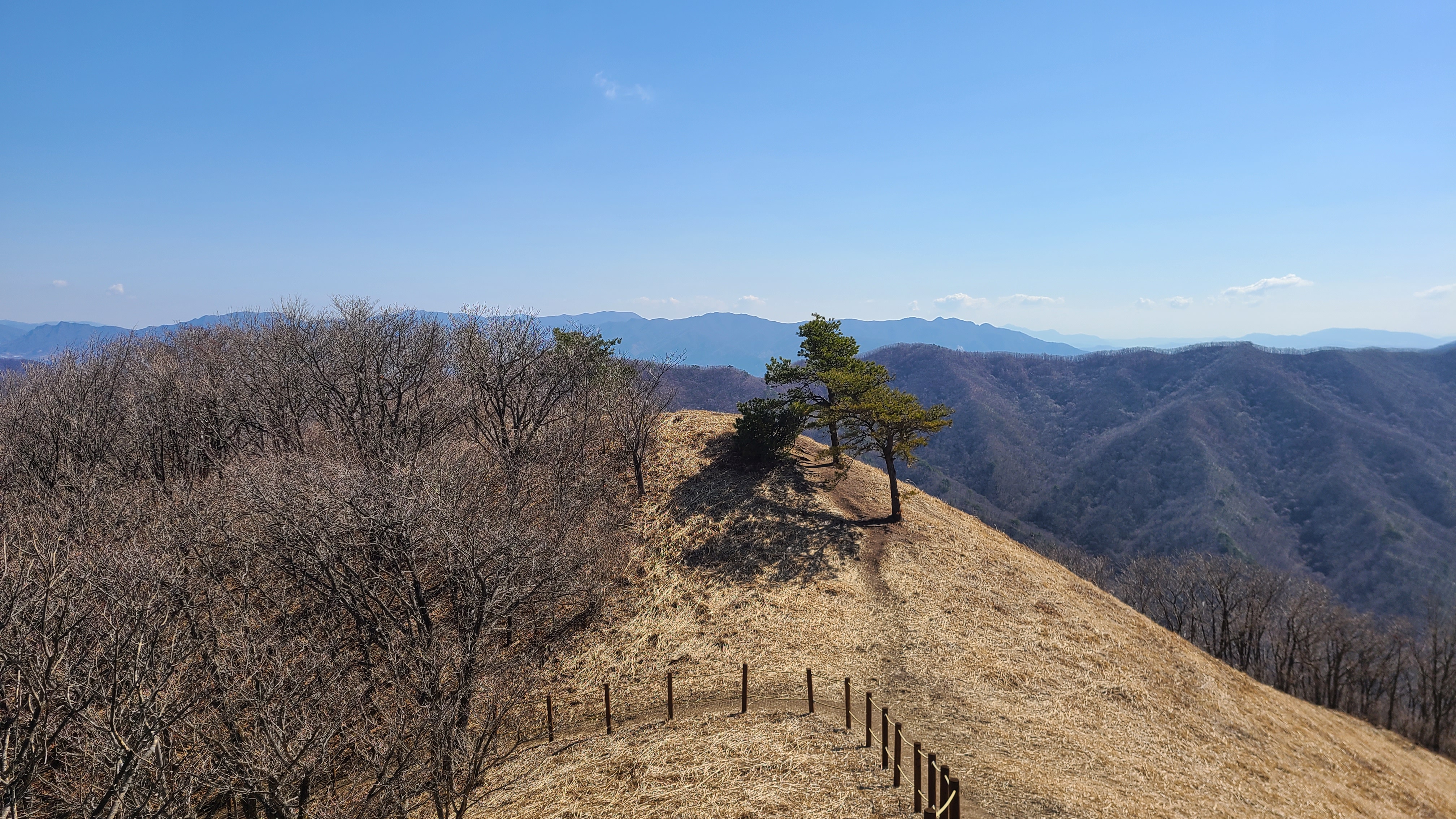 바위길이나 암벽이 없이 완만한 흙길의 산이니 느긋하게 걸으며 풍광을 즐기다보니 어느사이 원점으로 회귀한다.