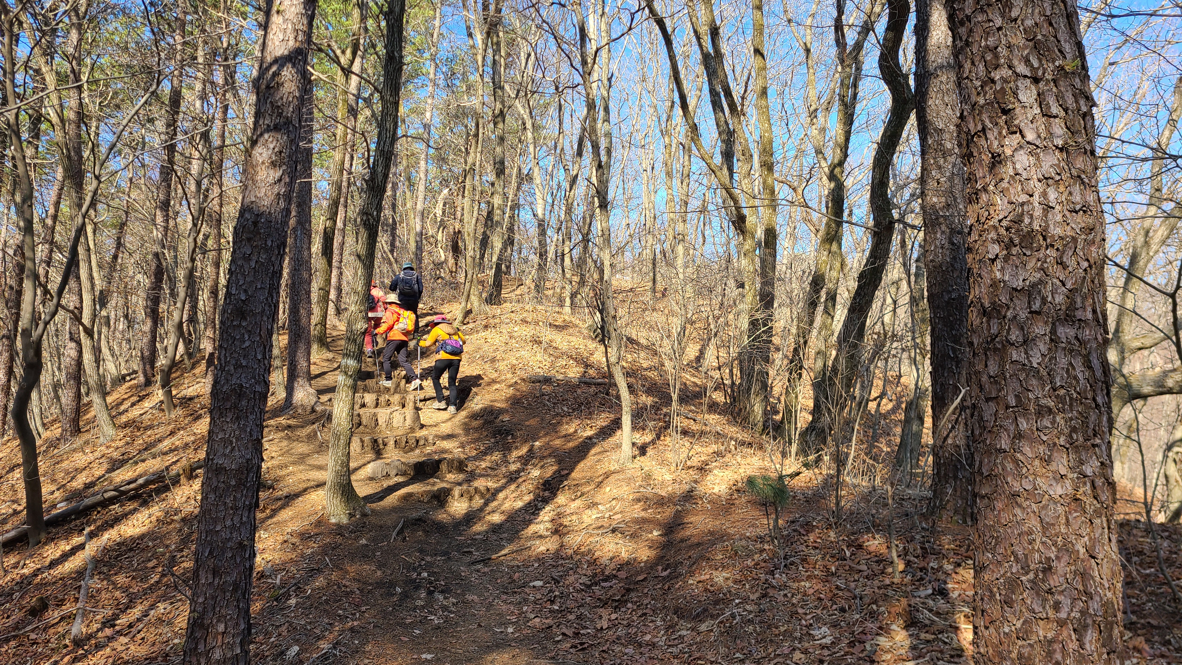 바위길이나 암벽이 없이 완만한 흙길의 산이니 느긋하게 걸으며 풍광을 즐기다보니 어느사이 원점으로 회귀한다.