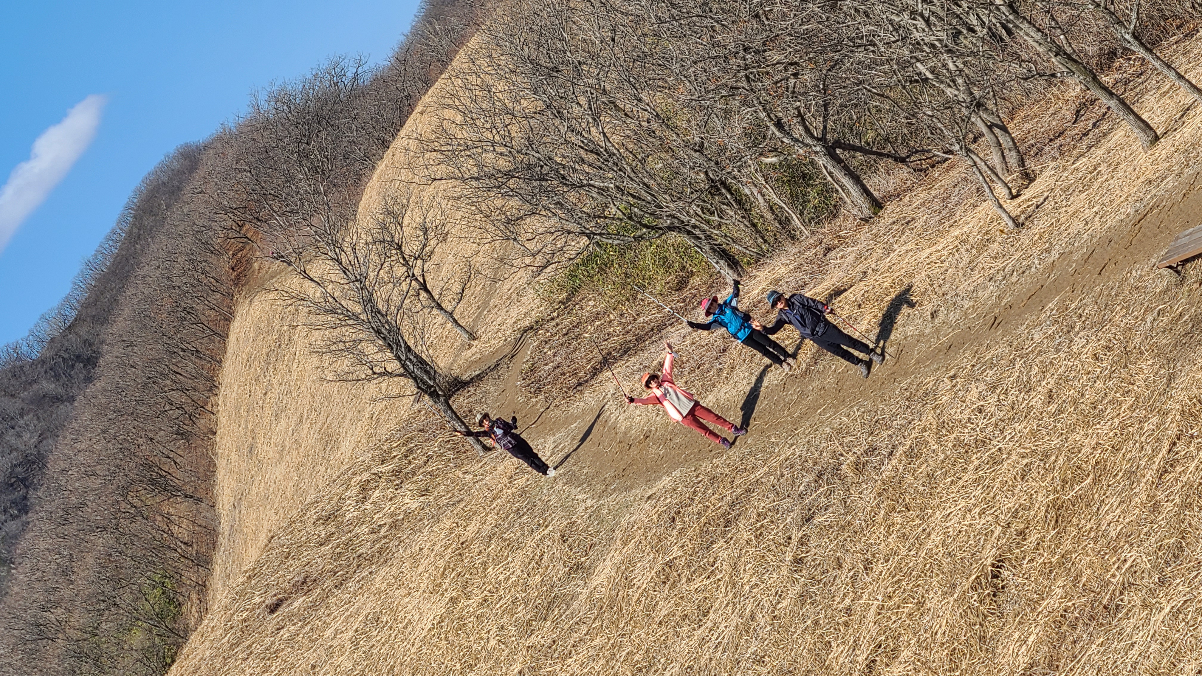 안부에 올라서니 능선부는 갈대숲군락지로서 지난 가을의 갈대는 베어 놓아 커다란 공터가 생겨있다.
