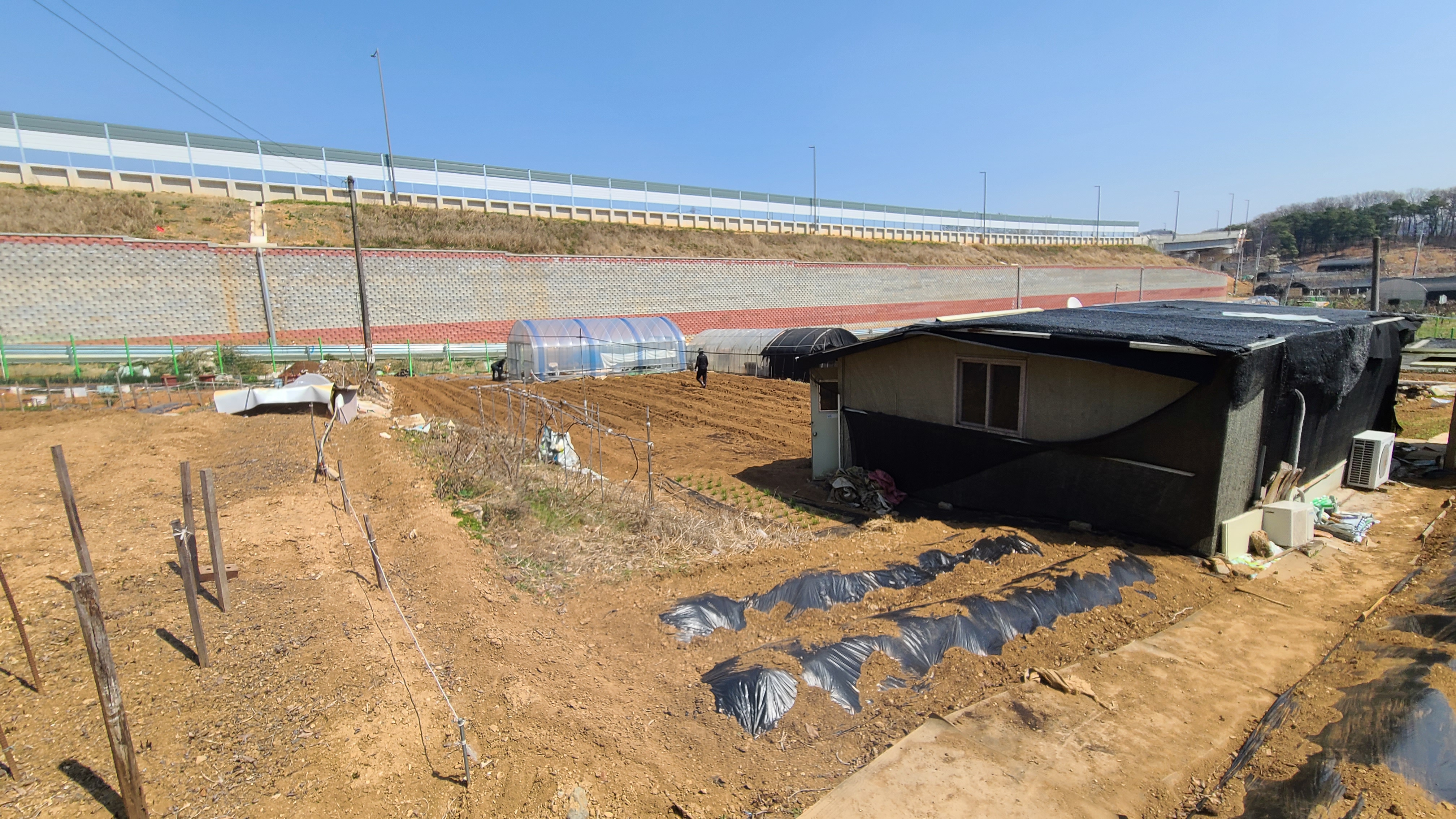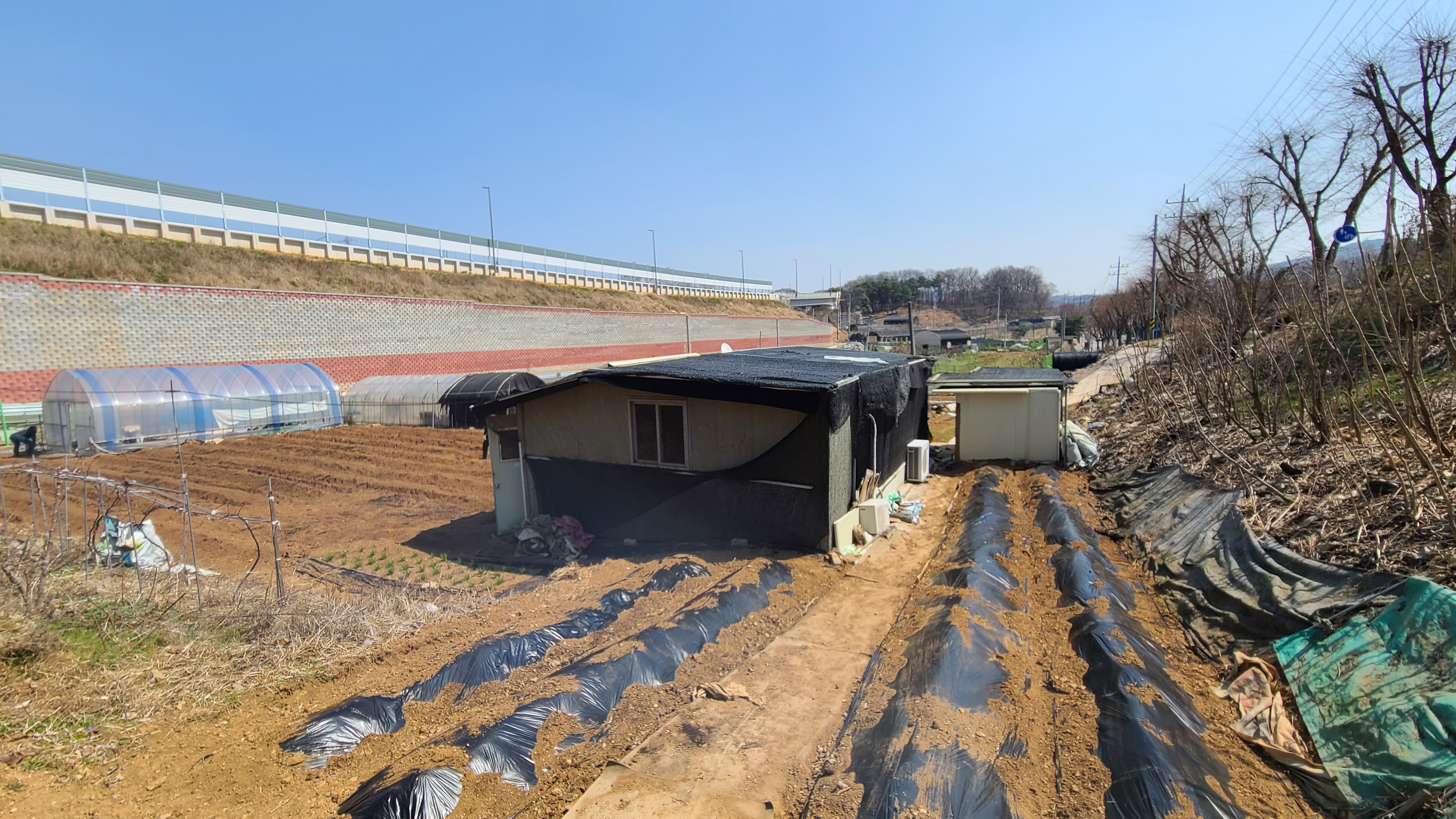 안산의 농장으로 직행하여 농막의 지붕을 덧씌우고 한편으로는 관리기가 들어와 고랑작업을 진행한다.