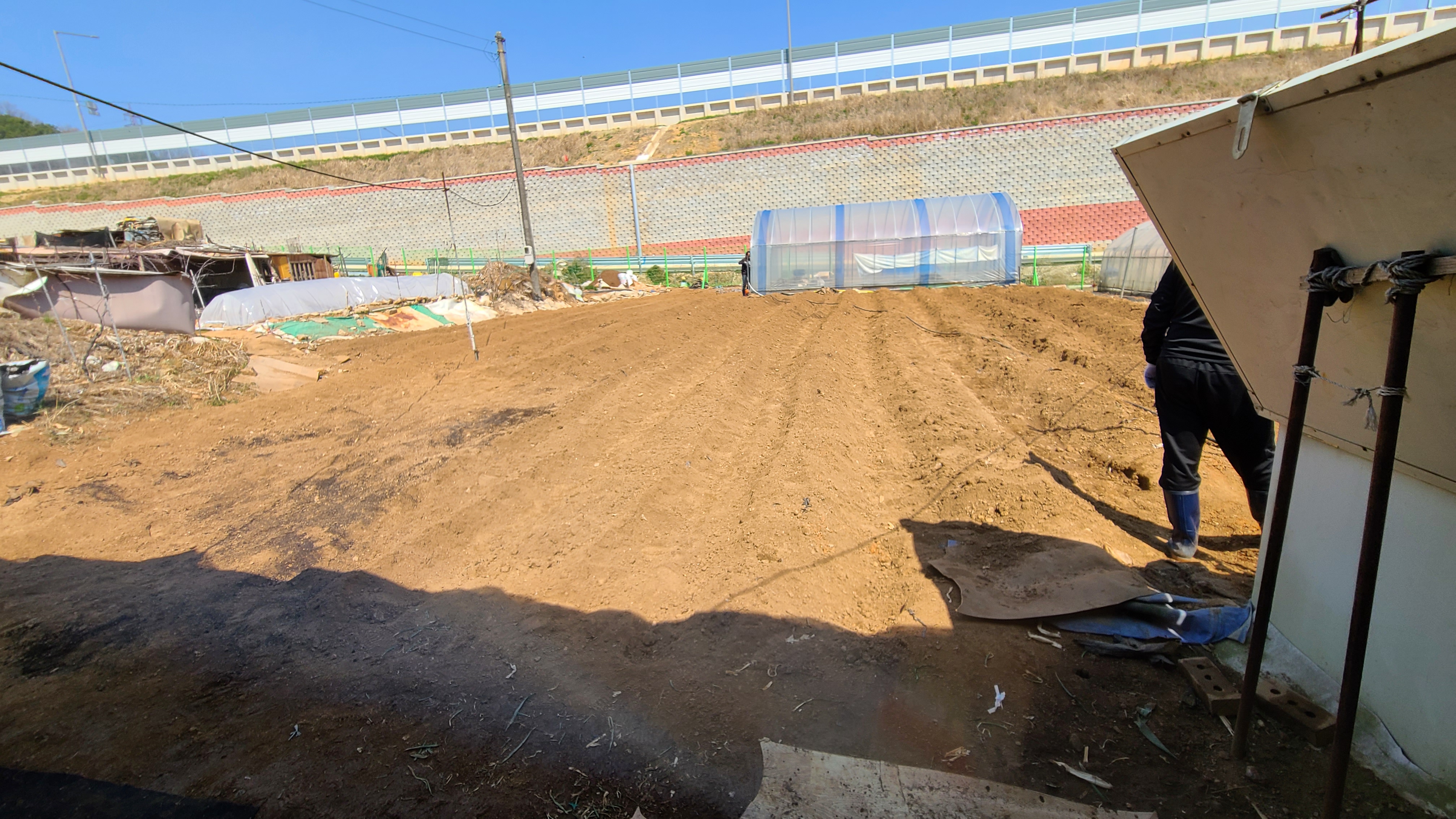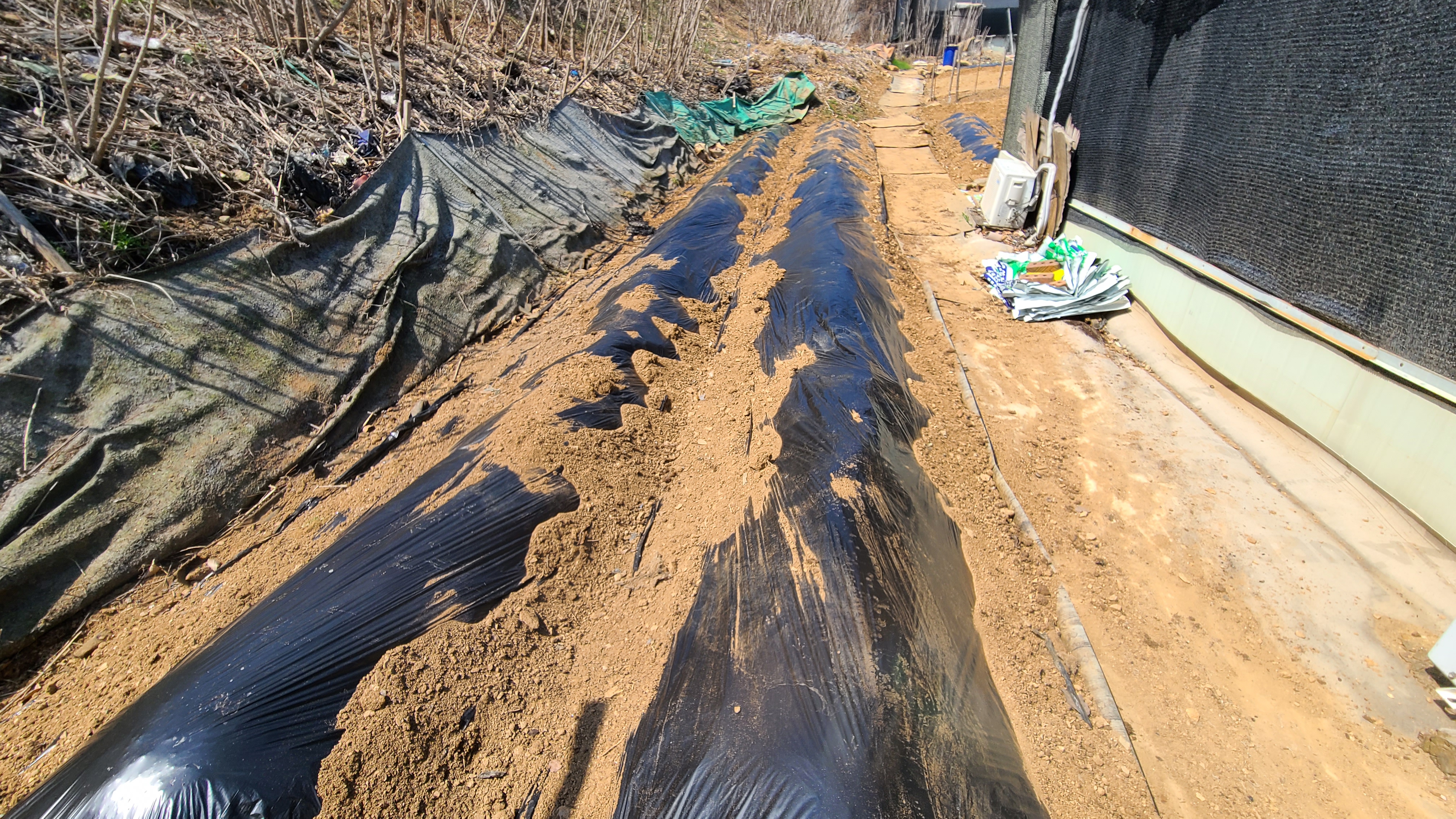 고랑을 손질하고 비닐을 덮은다음 양쪽 고랑에 흙을 덮어 작업을 하는데 생각보다는 시간도 걸리고