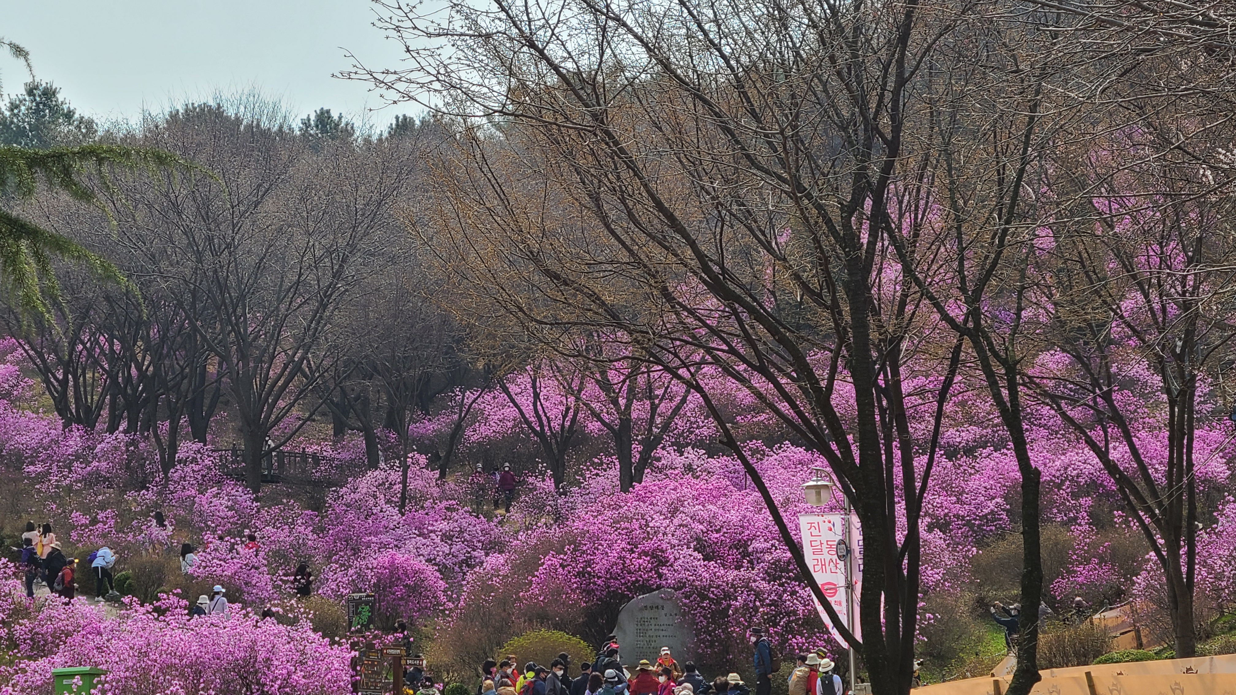 진달래로 유명한 영취산,고려산,비슬산등에 이어 이곳 원미산 진달래동산도 진달래명소이다.