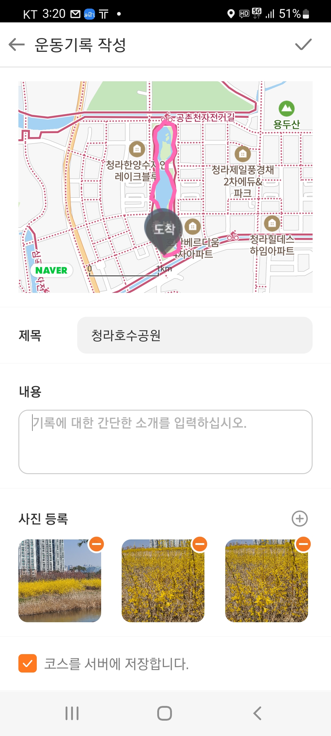 호수를 한바퀴돌아나오니 5키로의 거리,한시간 사십여분이 걸렸다.