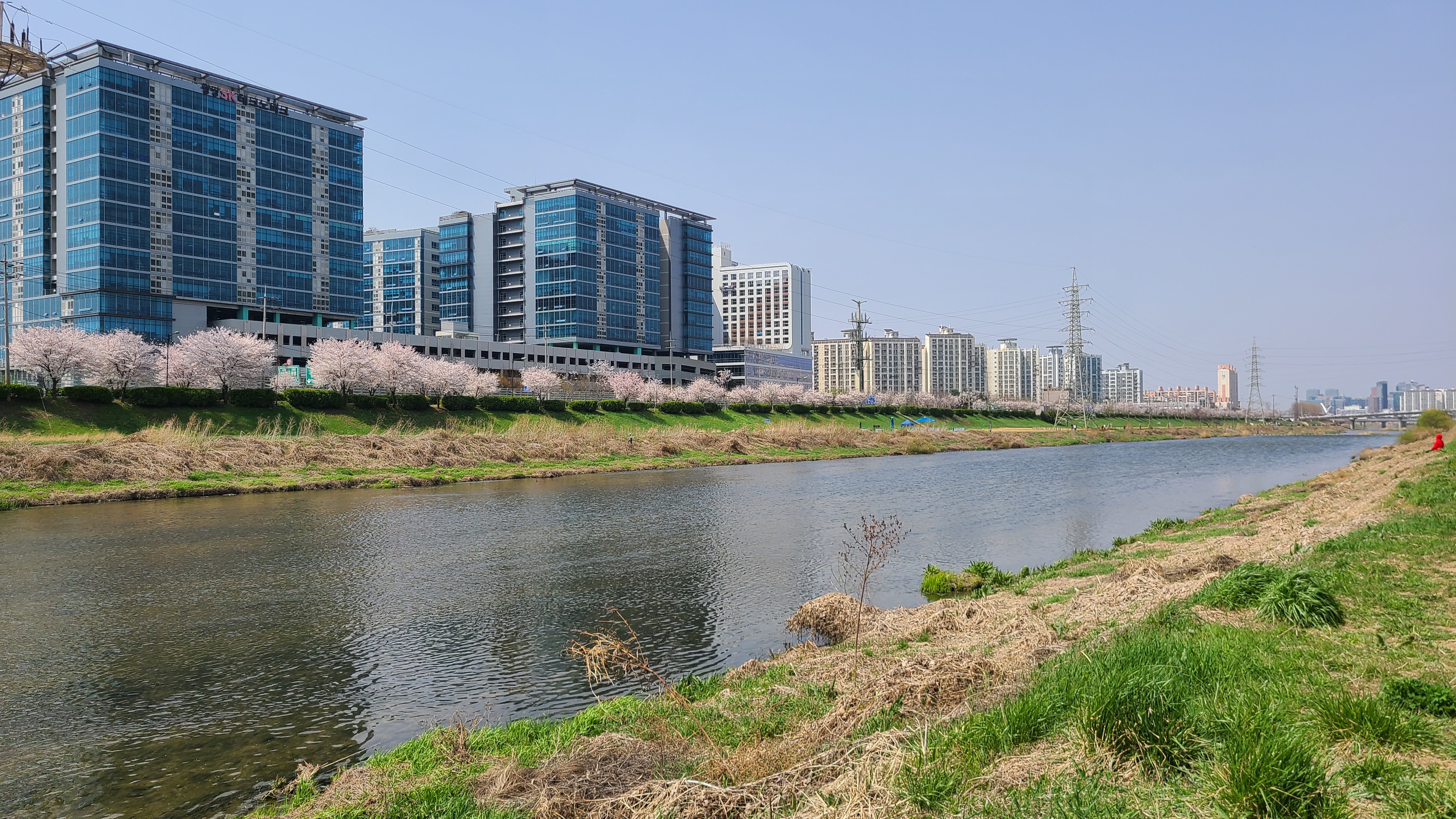 달려 지나는 천변이 벚꽃과 개나리와 각종 나무의 파아란 줄기로 한껏 봄을 치장하고있다.