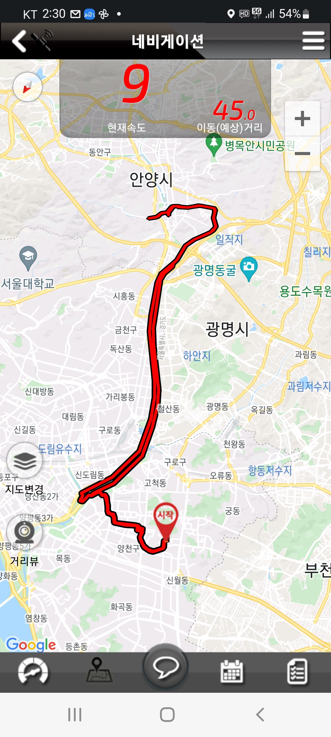 3.안양천-광명대교-금천교-안양유원지-오금교-신정교-귀가, 45.49km