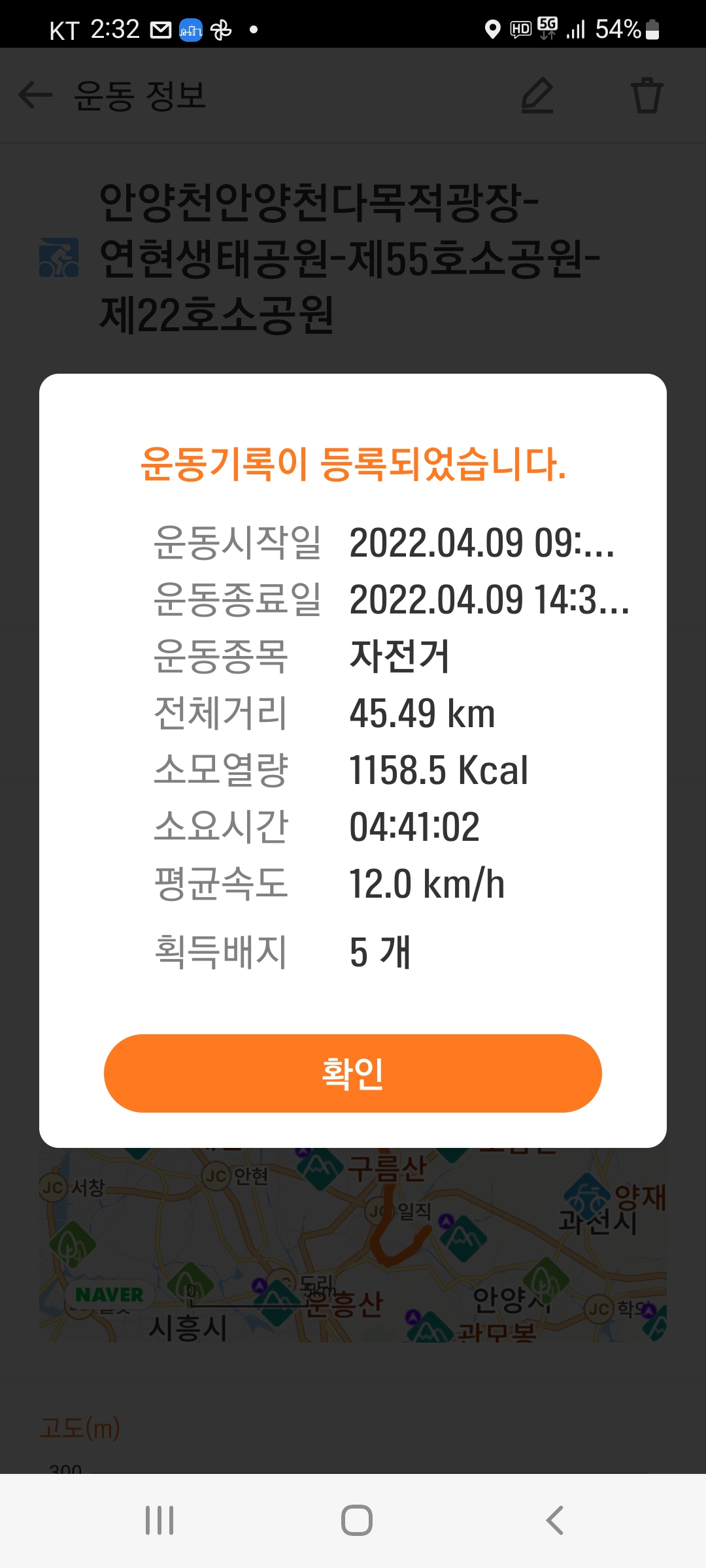 목동을 경유하여 귀가하니  점심과 휴식시간을 포함하여 4시간40여분이 소요되었고 45키로를 달렸다.