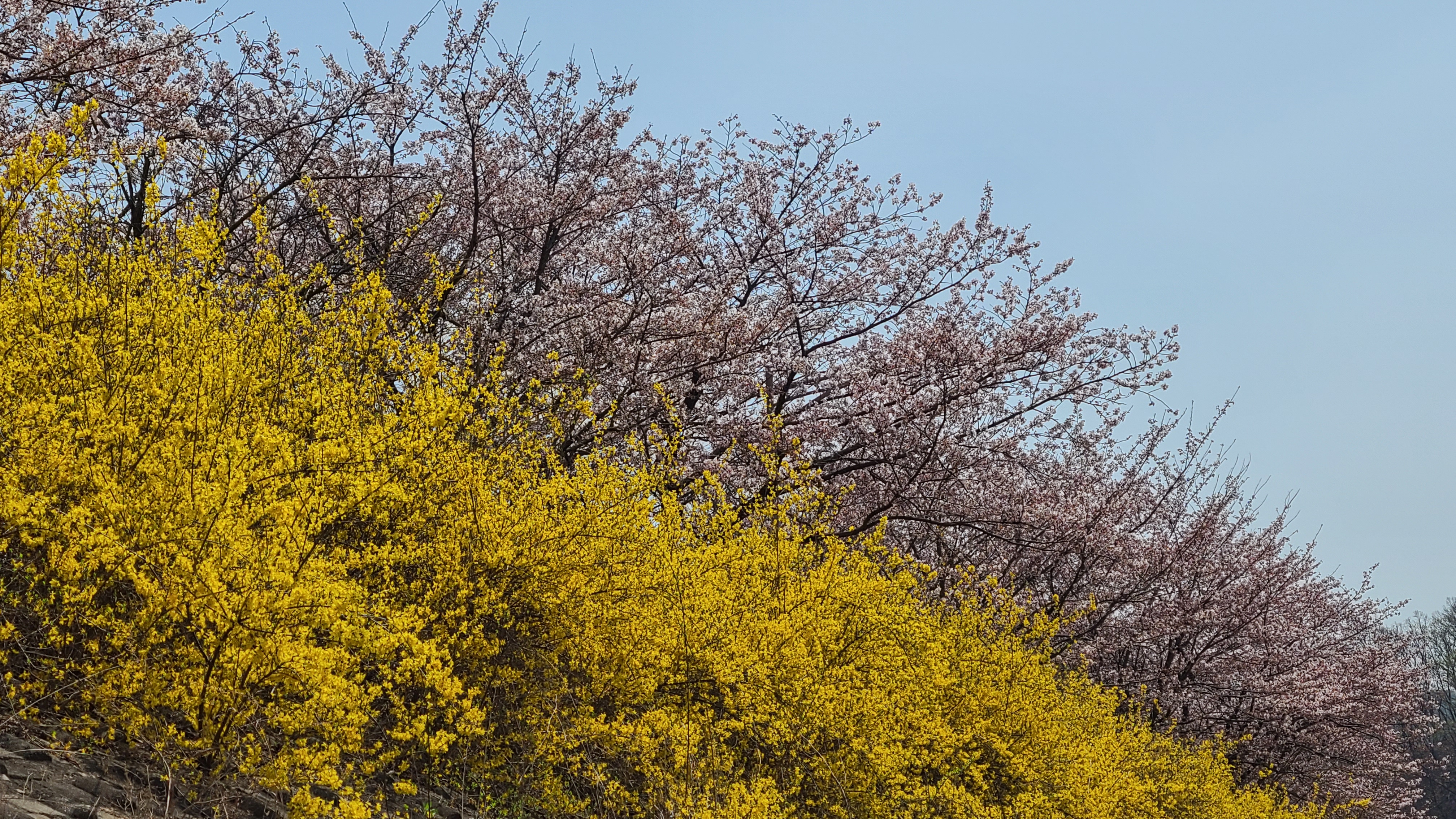 동측의 천변의 벚꽃은 수령이 더 되어서 늘어진 가지가 땅에 닿을 듯하고 무수하게 많은 꽃들이 그야말로