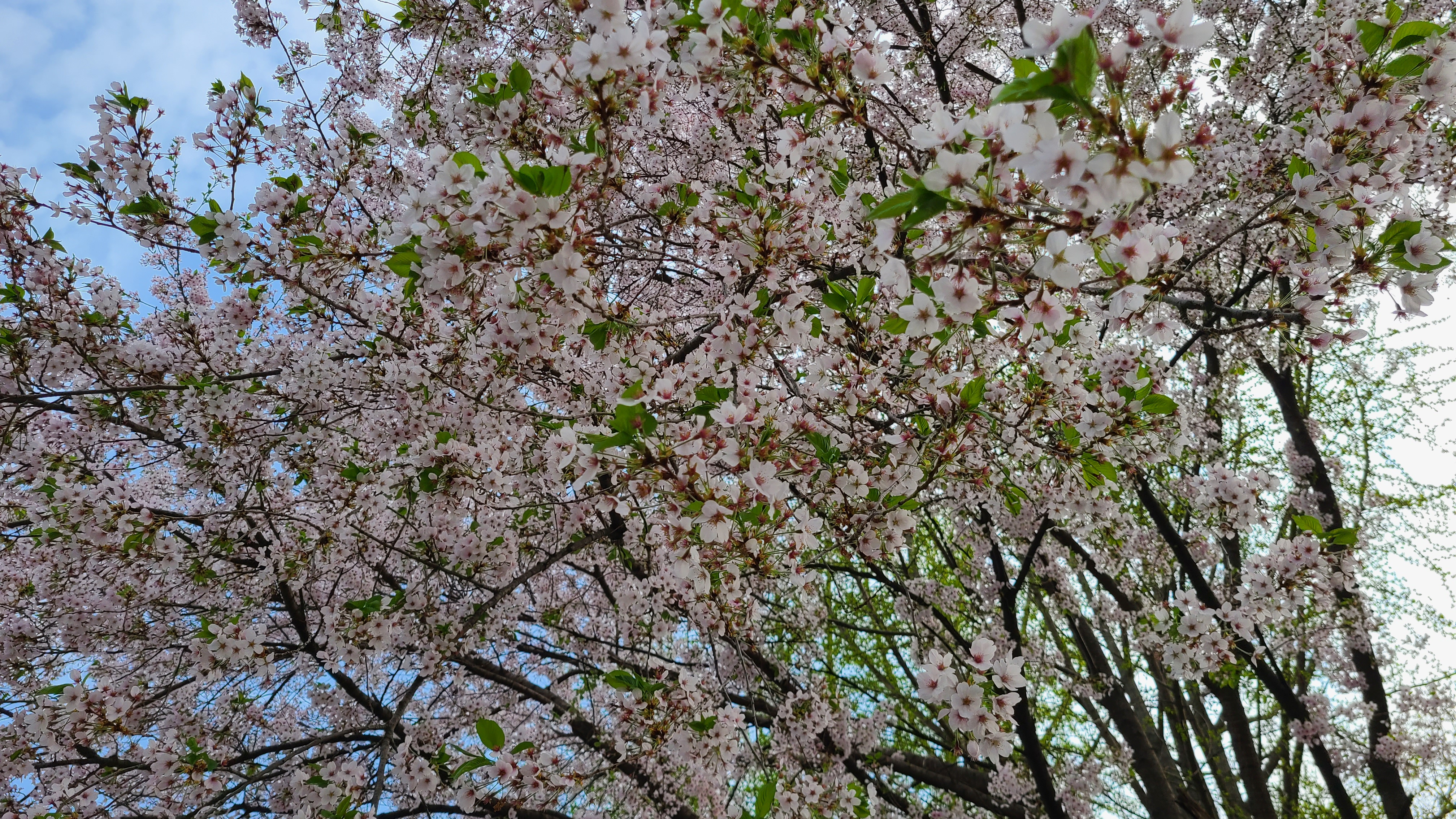 꽃잎이 많이 떨어지진 않았고 대신에 푸른 잎들이 여기저기 돋아나 하얀꽃들 사이로 푸른 잎들이