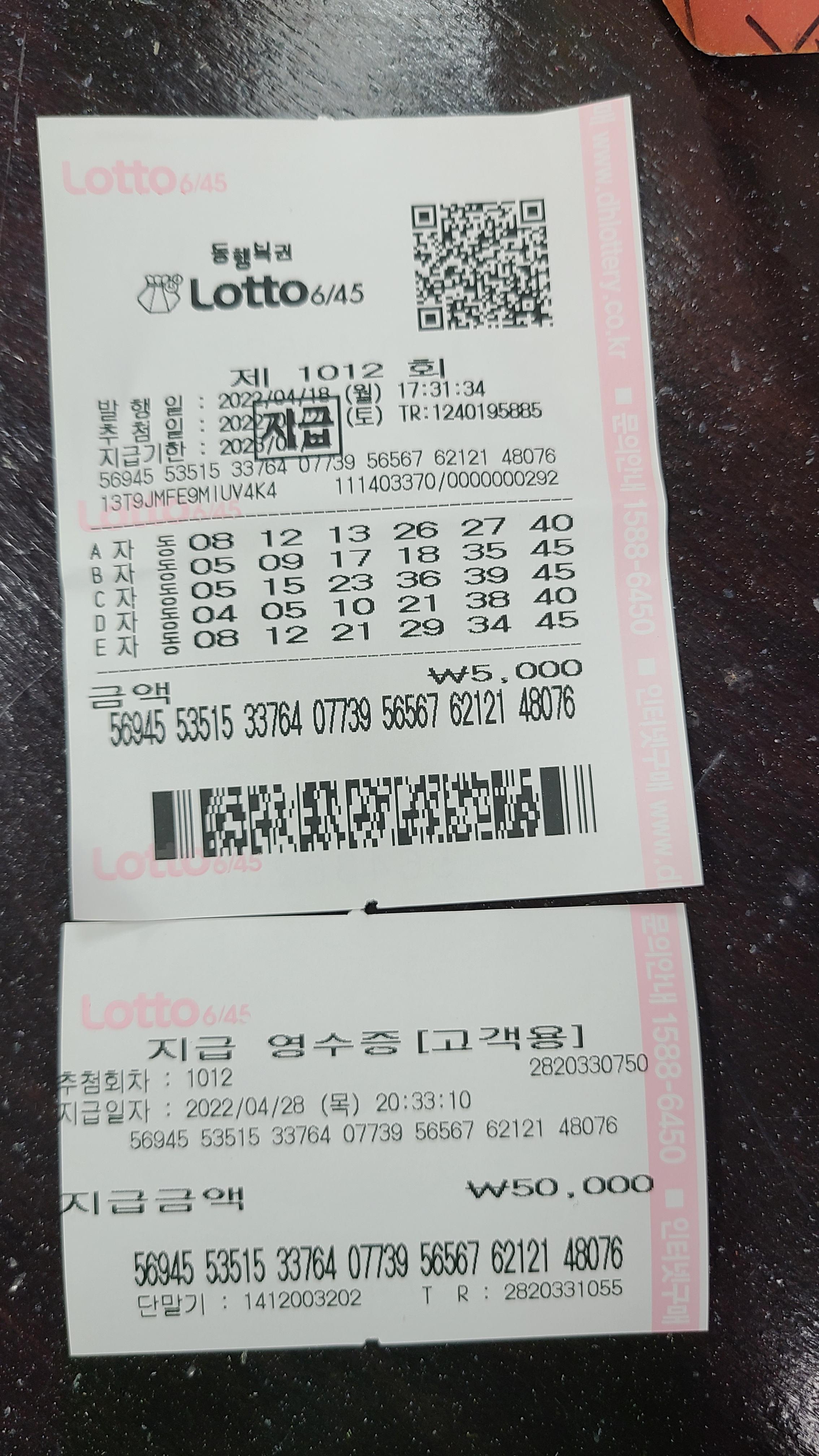 그사이 5천원은 두어번 당첨된 적이 있었는데 5만원은 난생 처음이다.