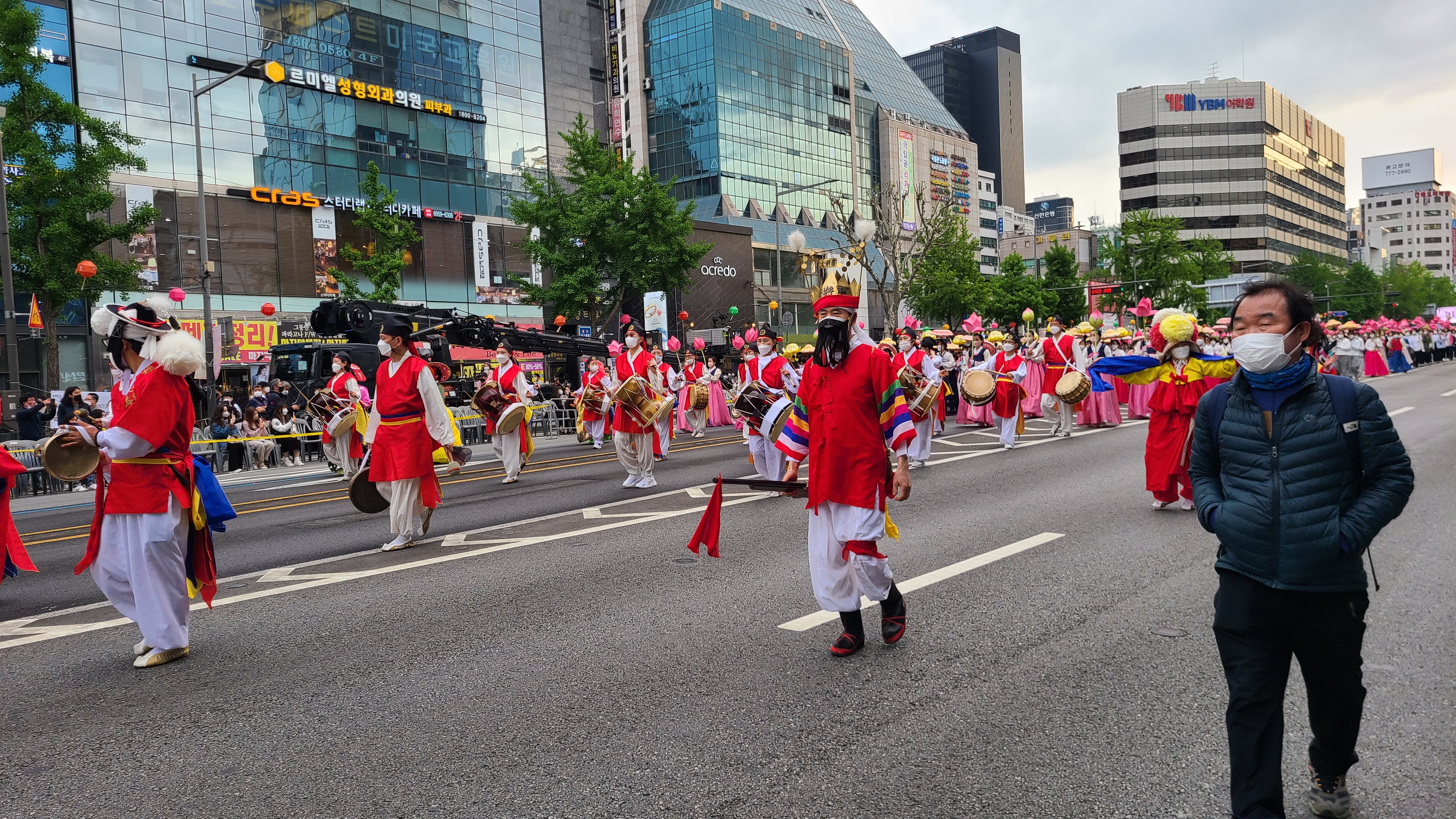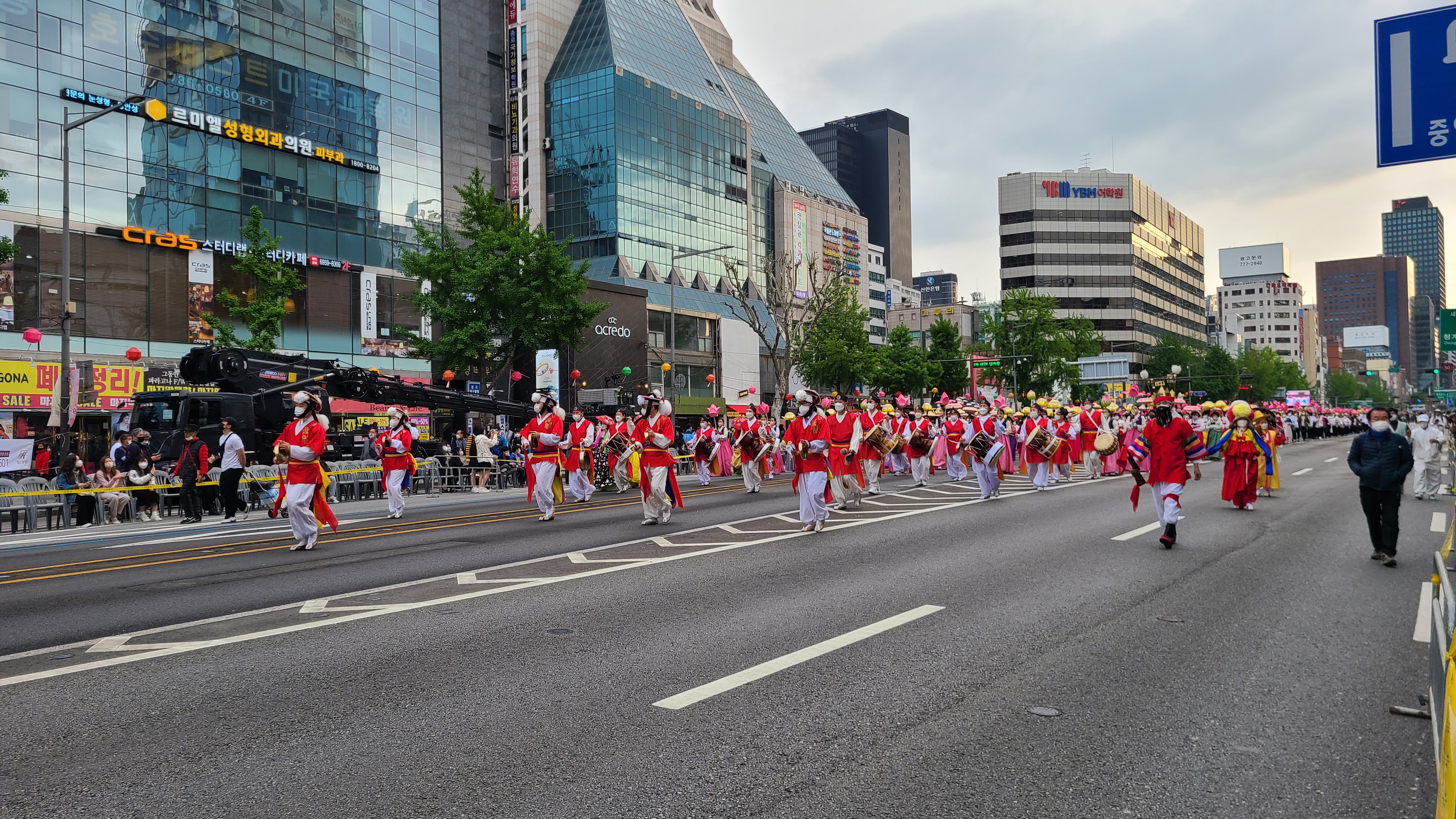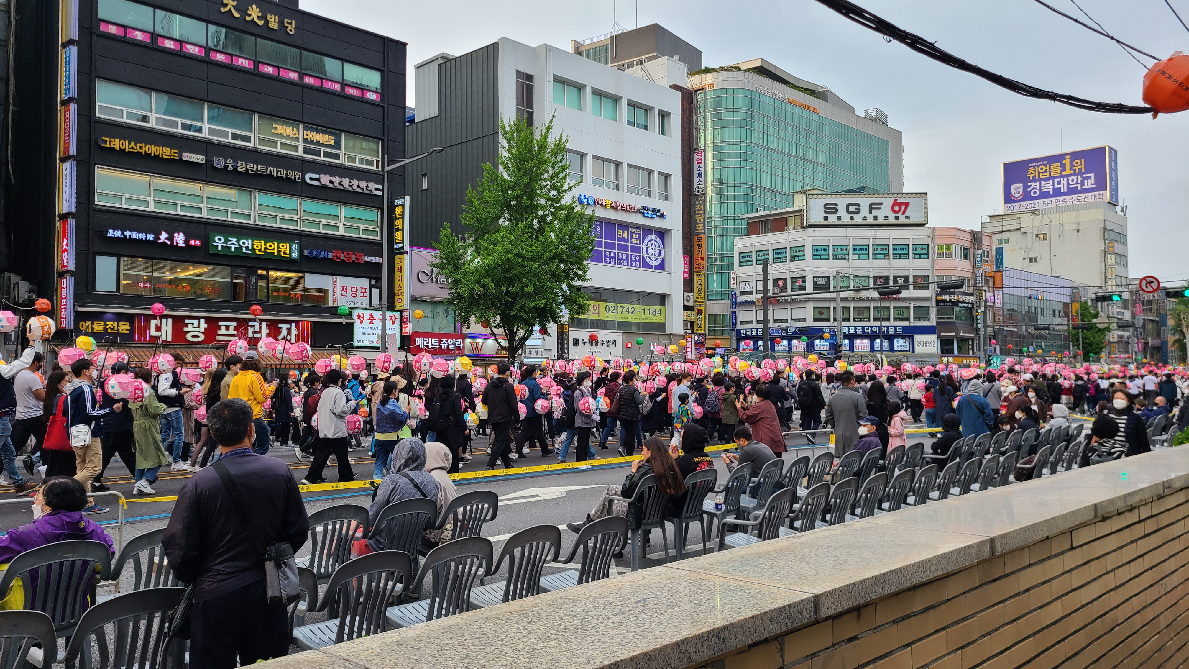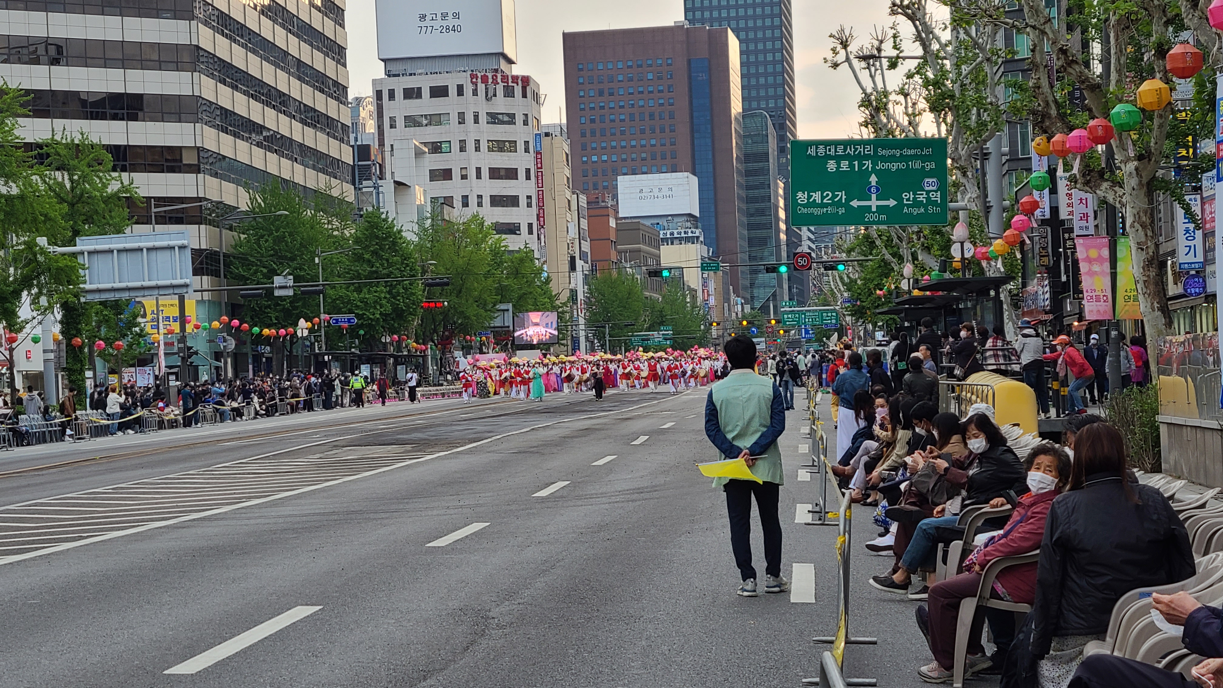 마침  초파일이 다가오니 거리에는 연등행사가 진행중이고 잠시 연등행열을 구경한다.