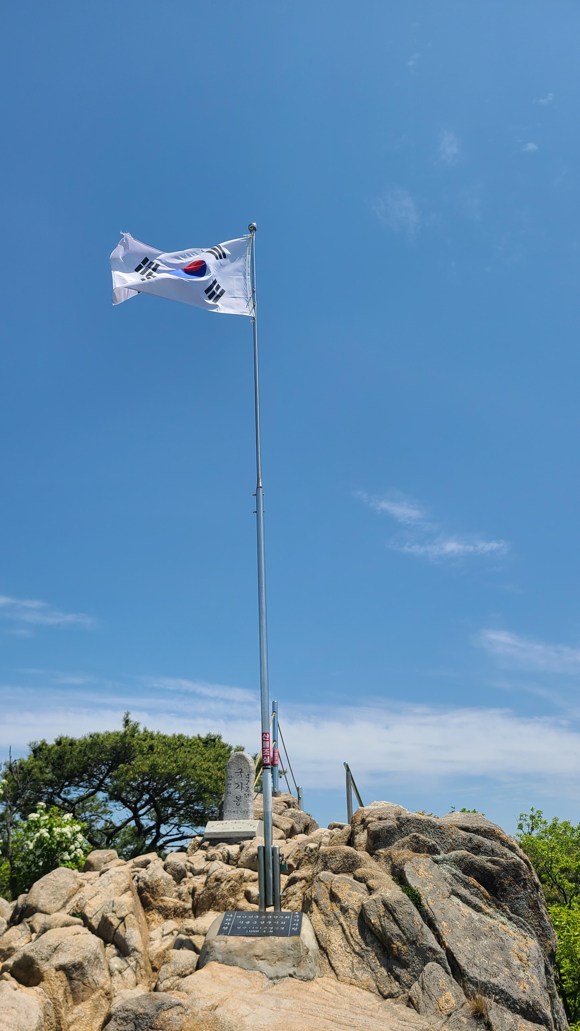 국기봉으로 오른다.