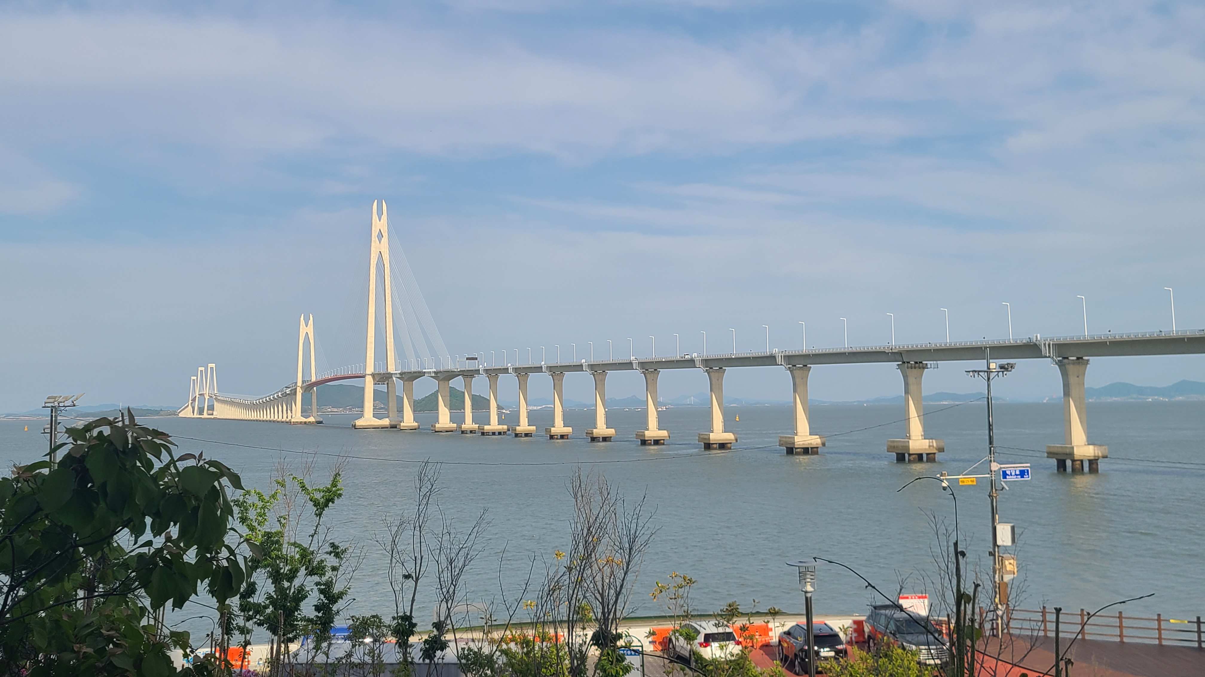 다시 무인카페지점으로 내려와 박지도와 연결되는 다리를 배경으로 사진도 찍고 풍경을 즐긴다.
