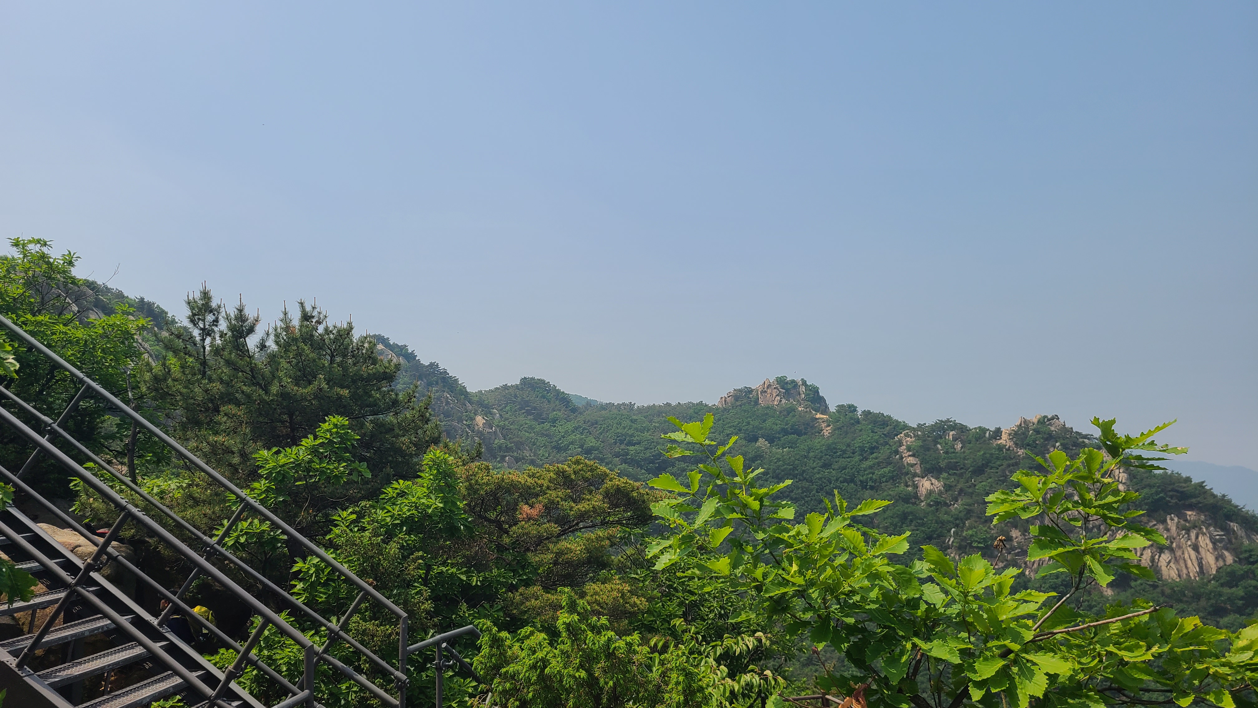 짙은 스모그가 도심을 뒤덮고  오르면서부터 더위에 대비해 손수건을 준비하고 오르기 시작한다.