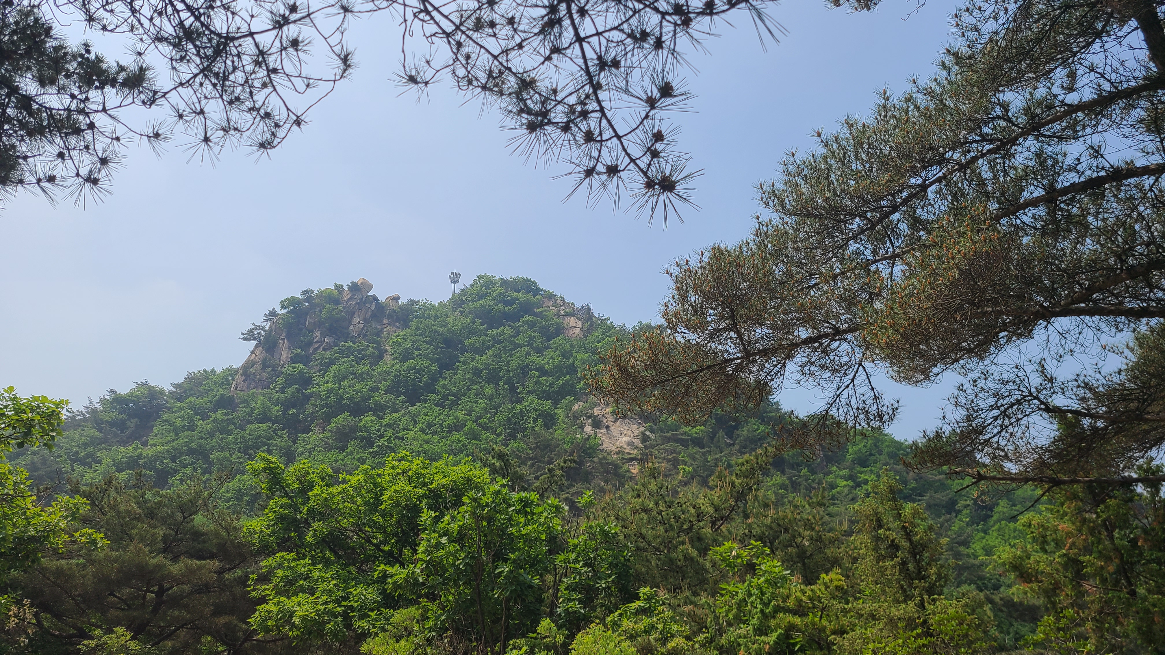 전망대를 지나 마당바위 직전에 잠시 휴식을 취하면서 강력한 햇살에 대비에 선그라스를 꺼네쓴다.