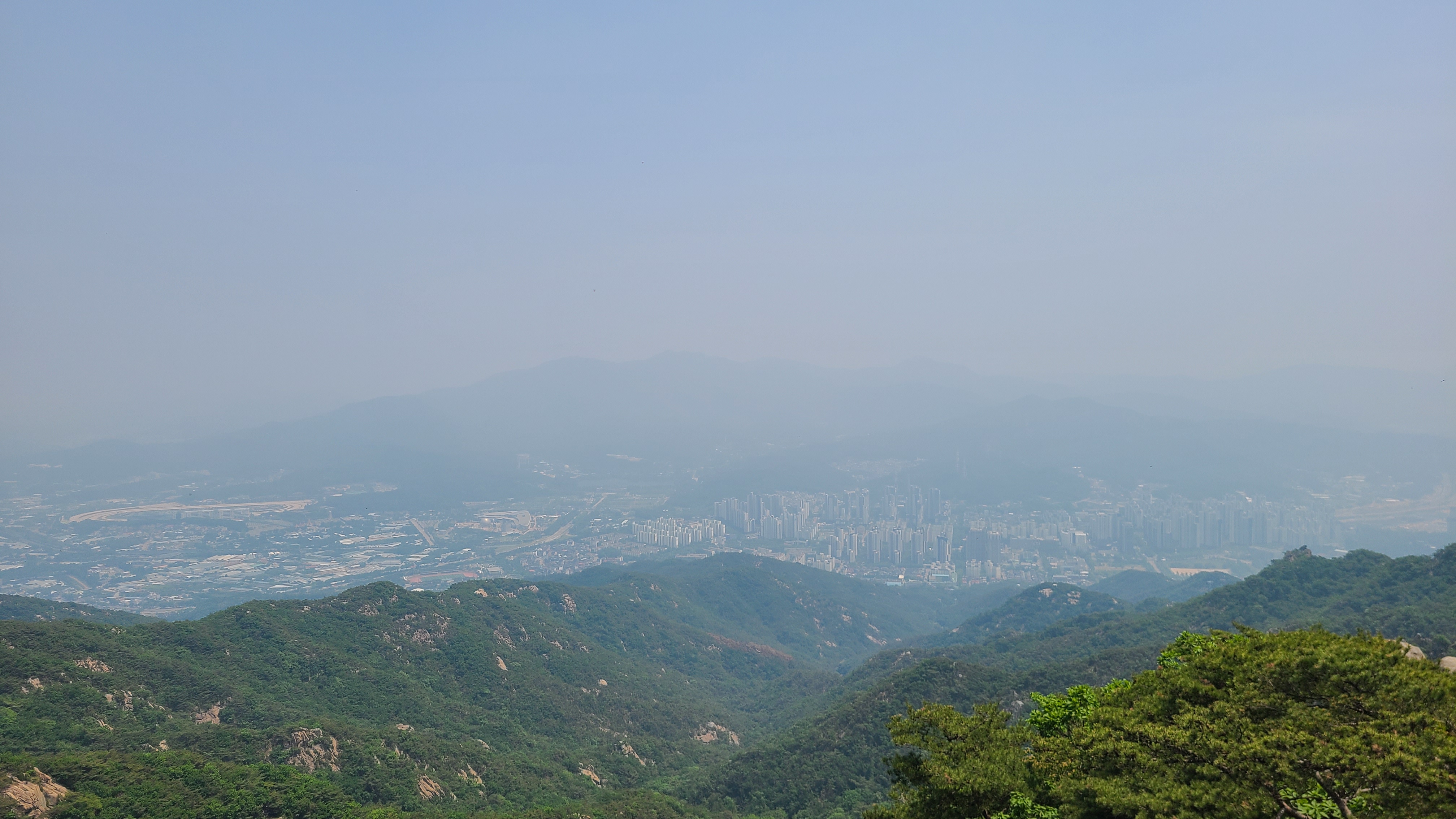 내려다보이는 서울시내와 과천이 희부옅게 가려 제대로 조망이 되질않는다.