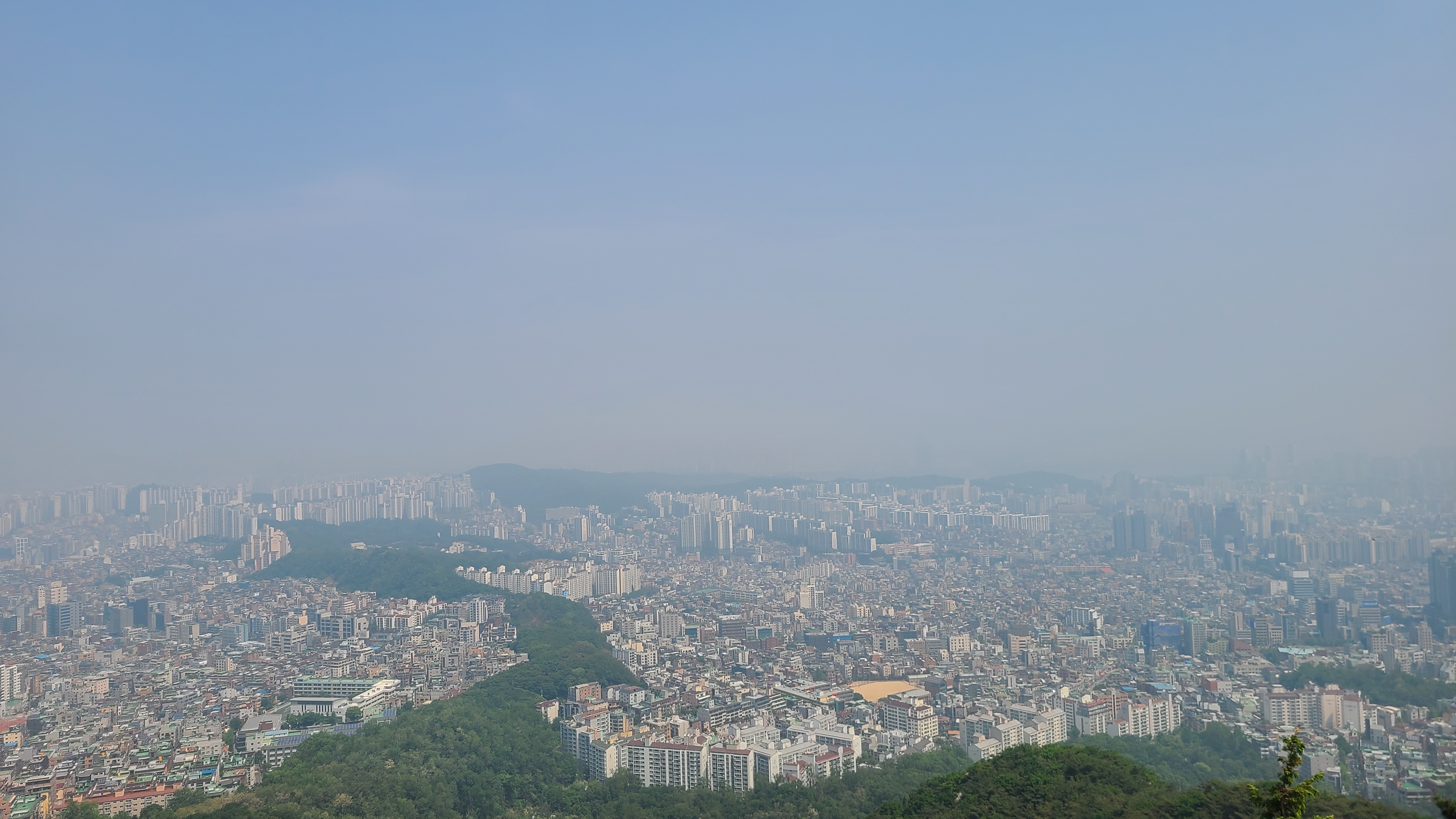 내려다보이는 서울시내와 과천이 희부옅게 가려 제대로 조망이 되질않는다.