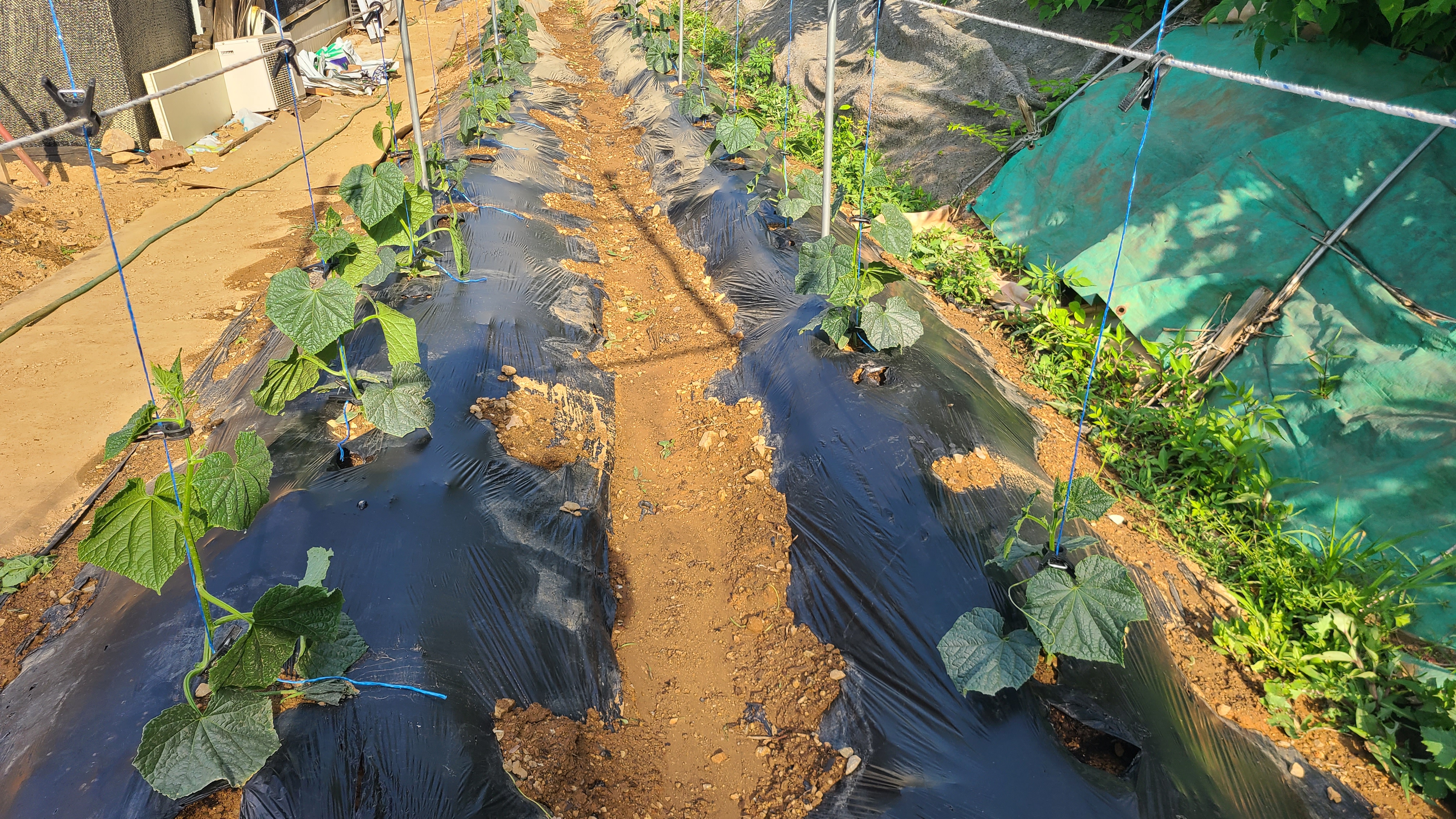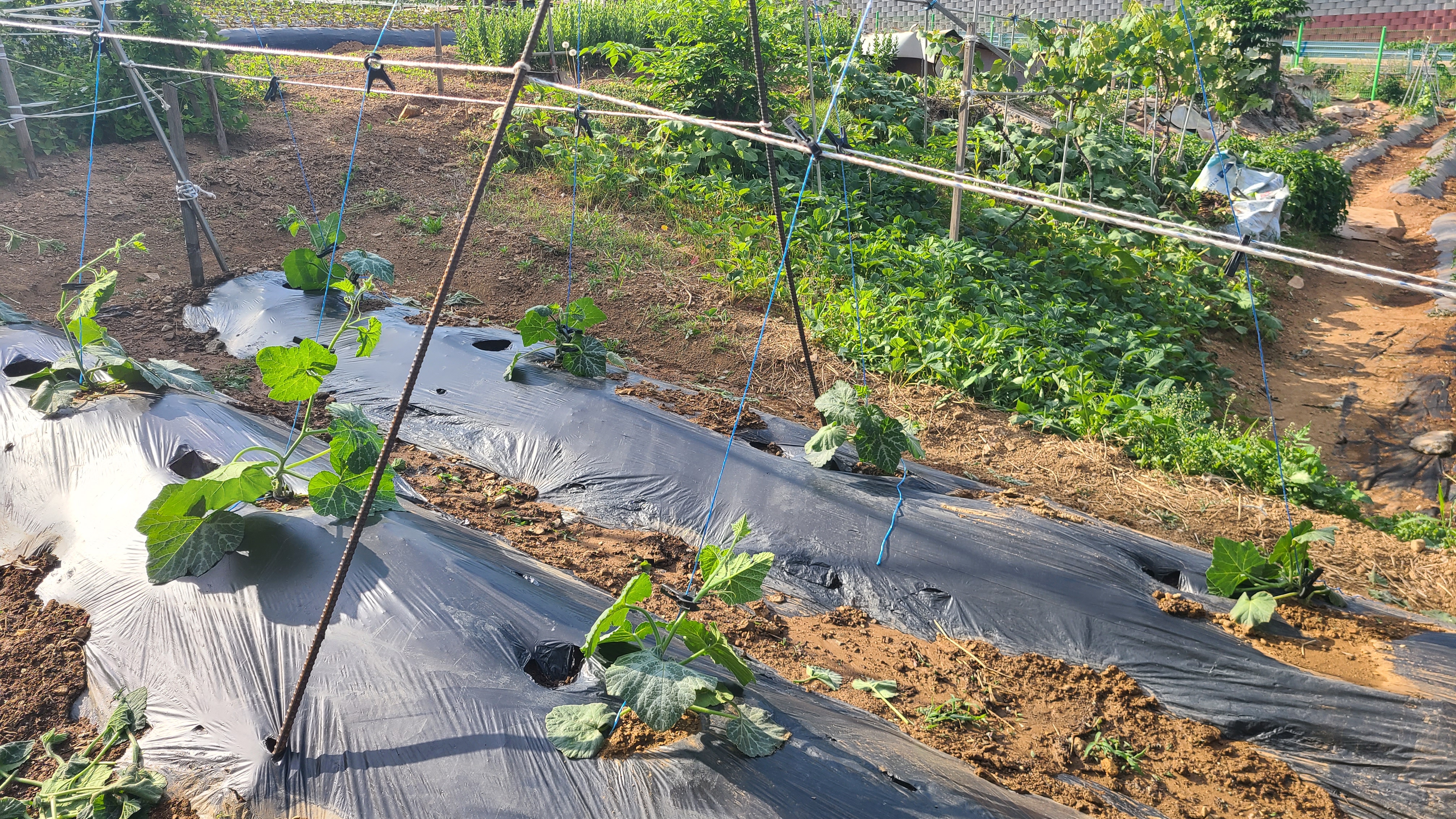 지주를 세우고 줄을 연결하여 잘 뻗을 수 있도록 줄을 매어 주었다.