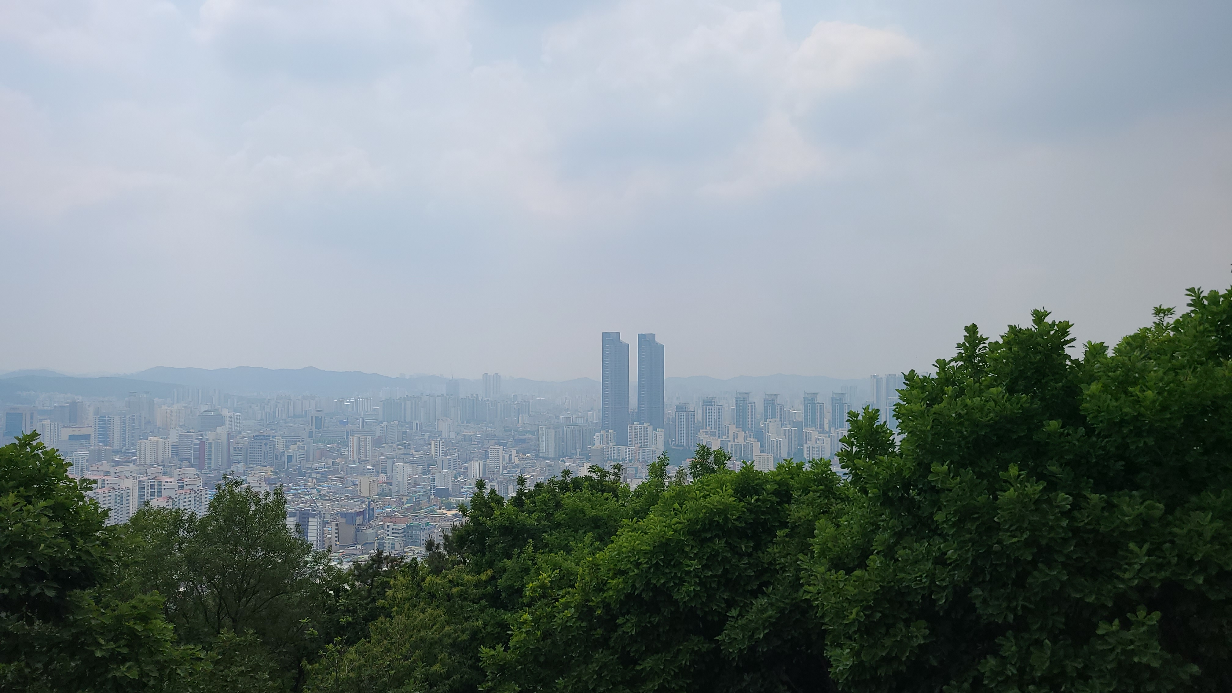 흐린하늘이 점차 개이고 오전에 활을 내다가 점심을 먹고는 인근의 원미산을 걸어본다.