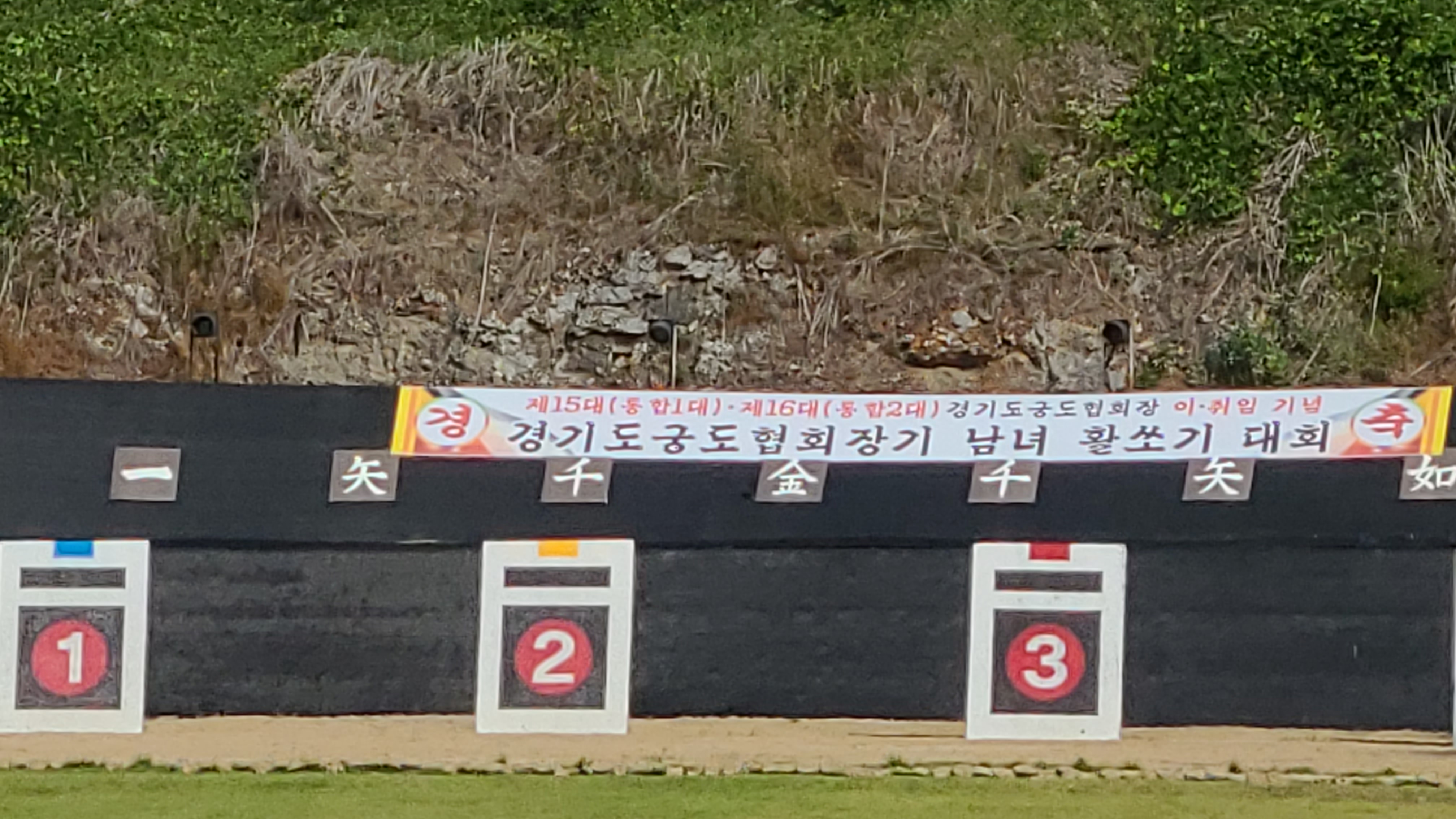 4대의 과녘을 만들다보니 사대가 조금 비좁은 듯 몸을 비틀면 옆자리와 부대낄 것 같다.