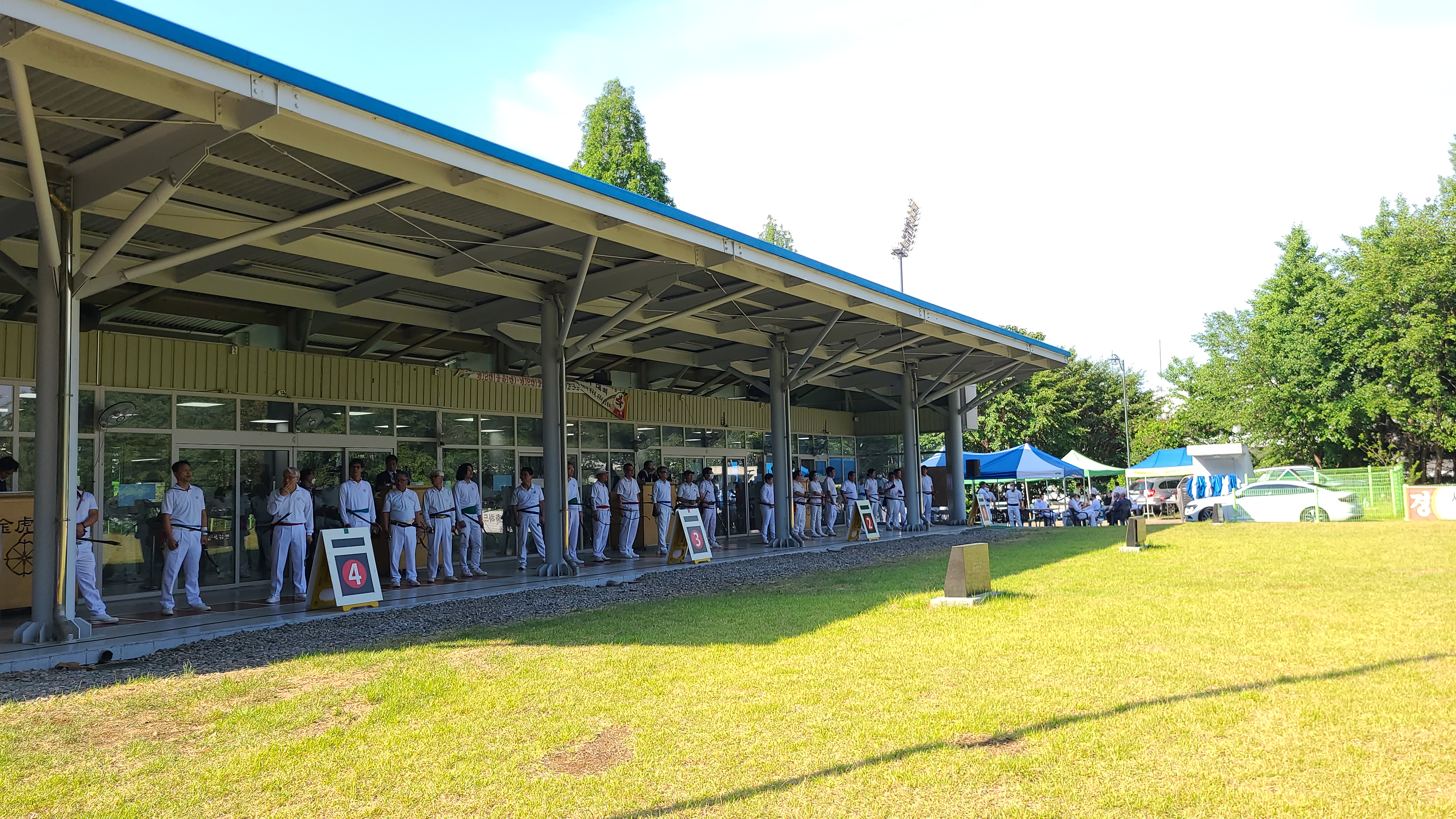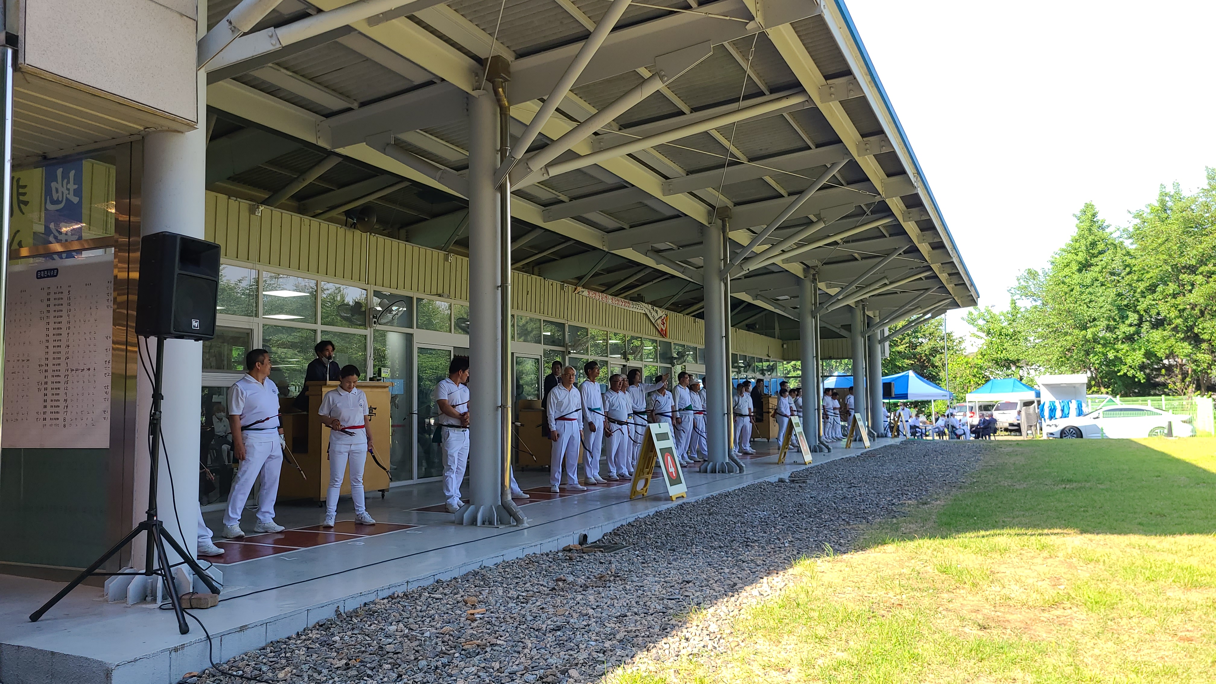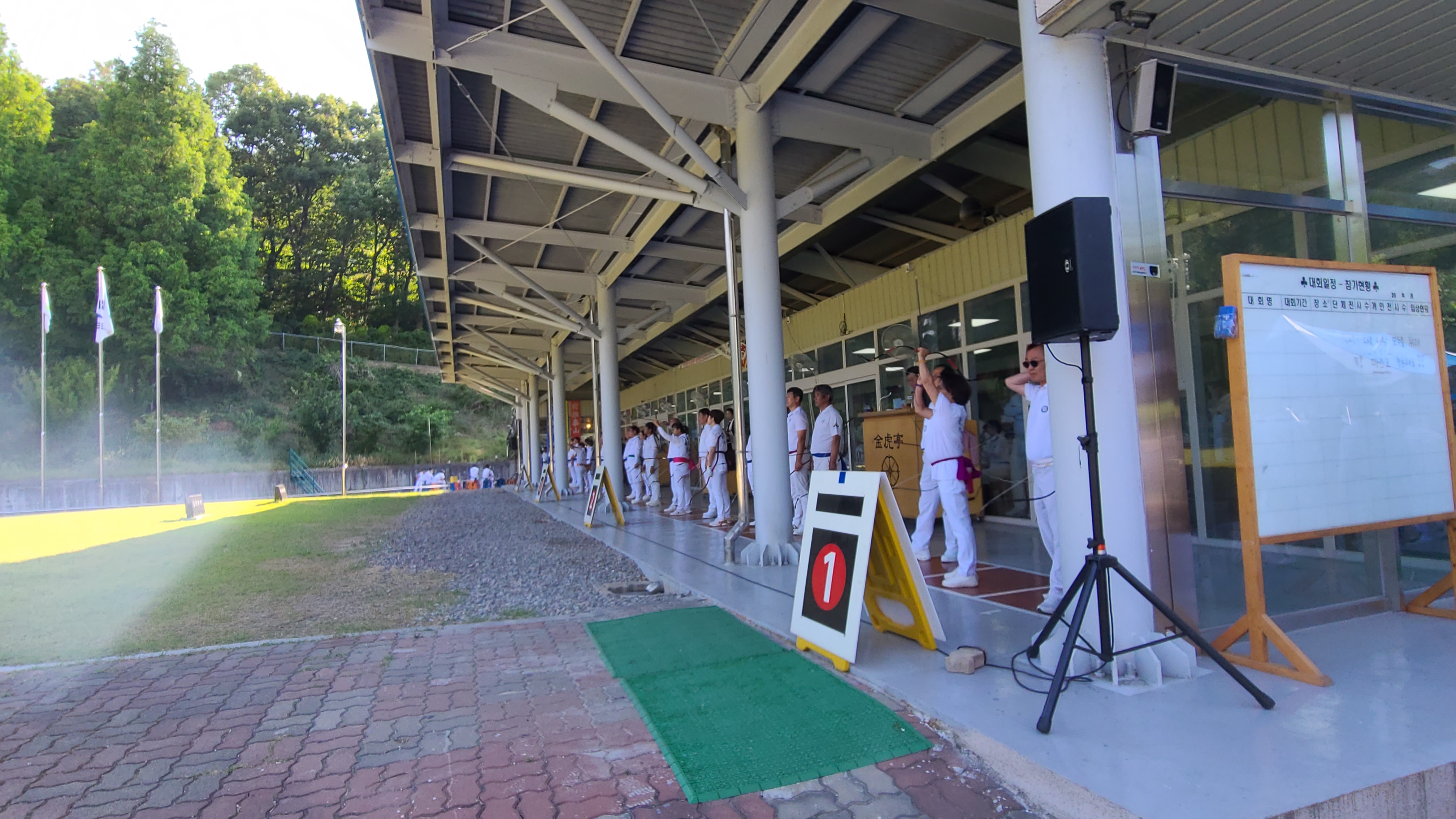 4대의 과녘을 만들다보니 사대가 조금 비좁은 듯 몸을 비틀면 옆자리와 부대낄 것 같다.