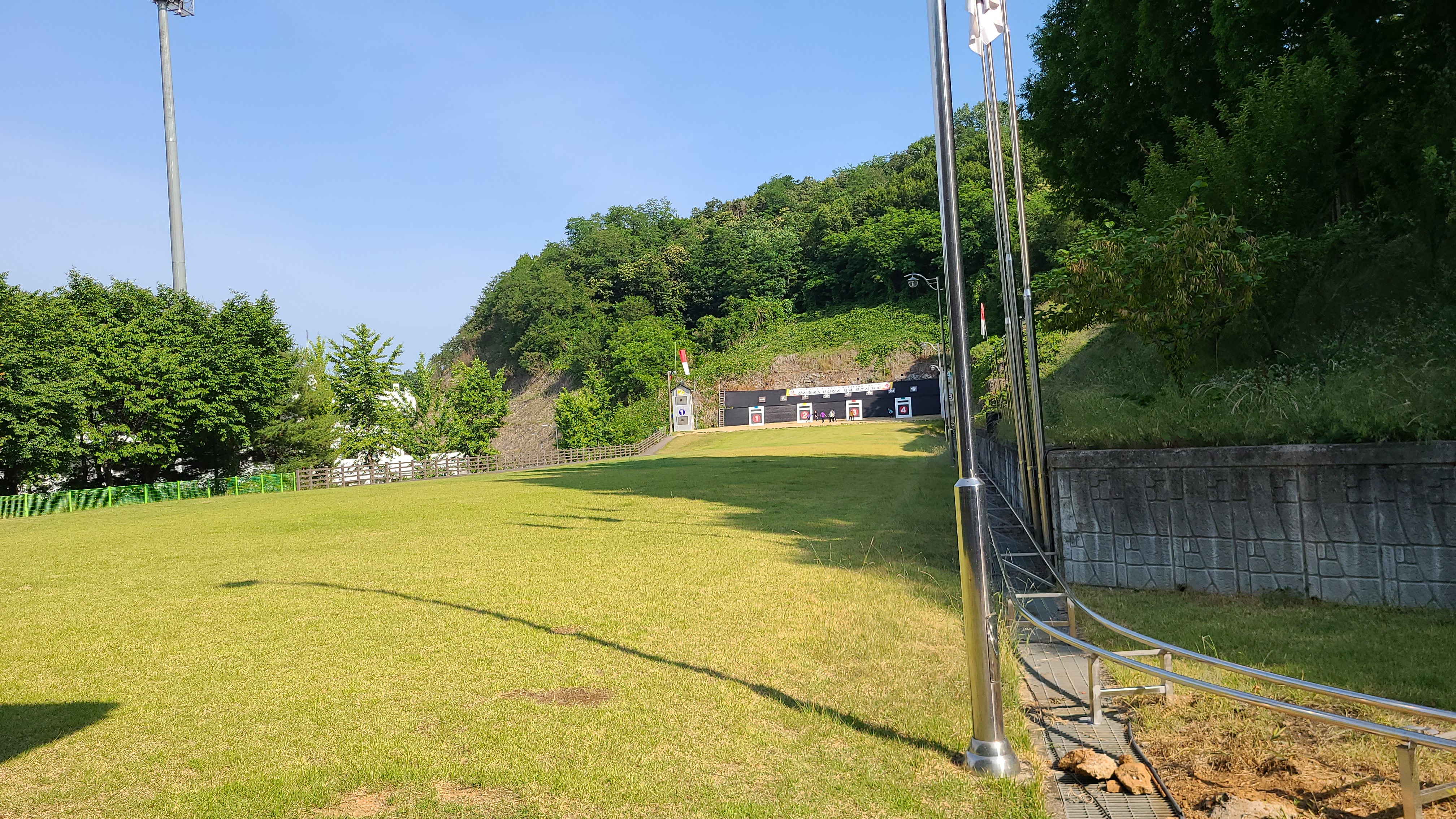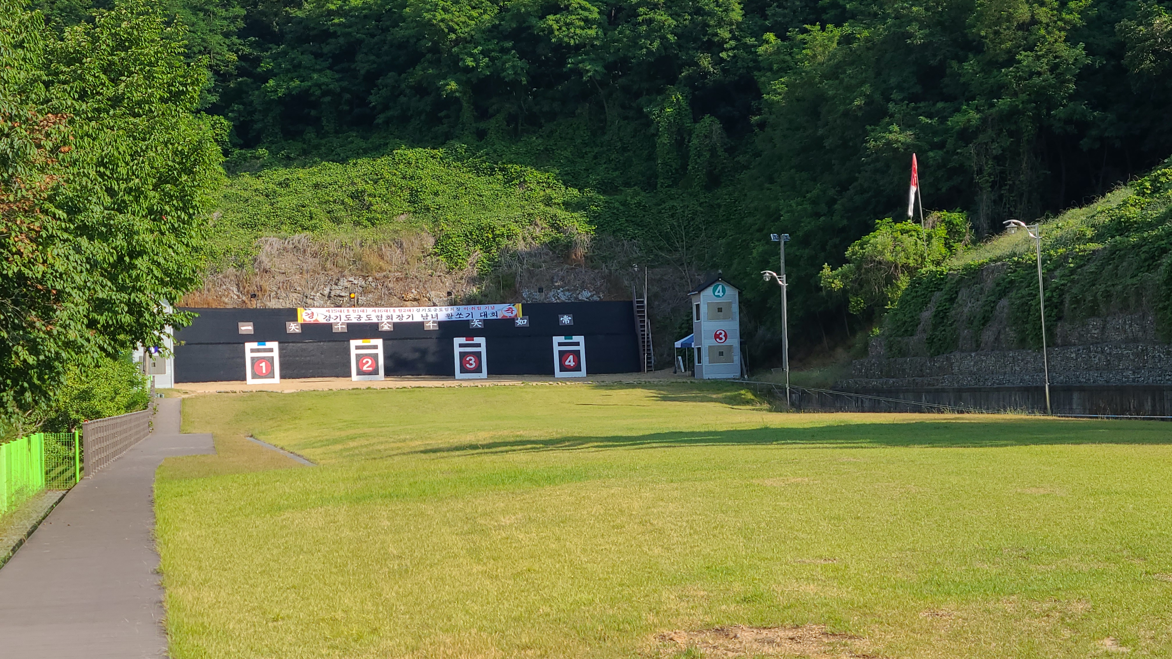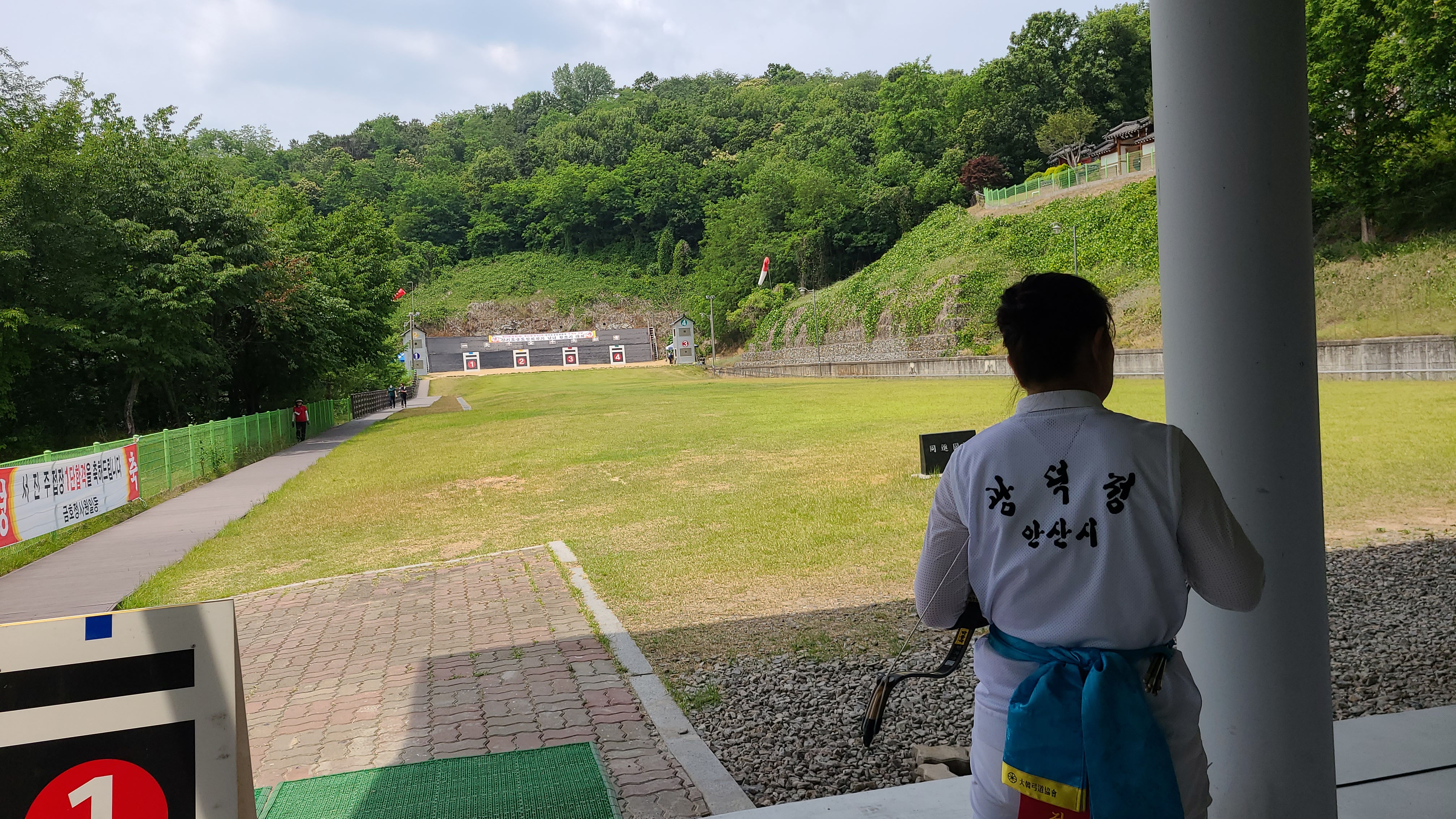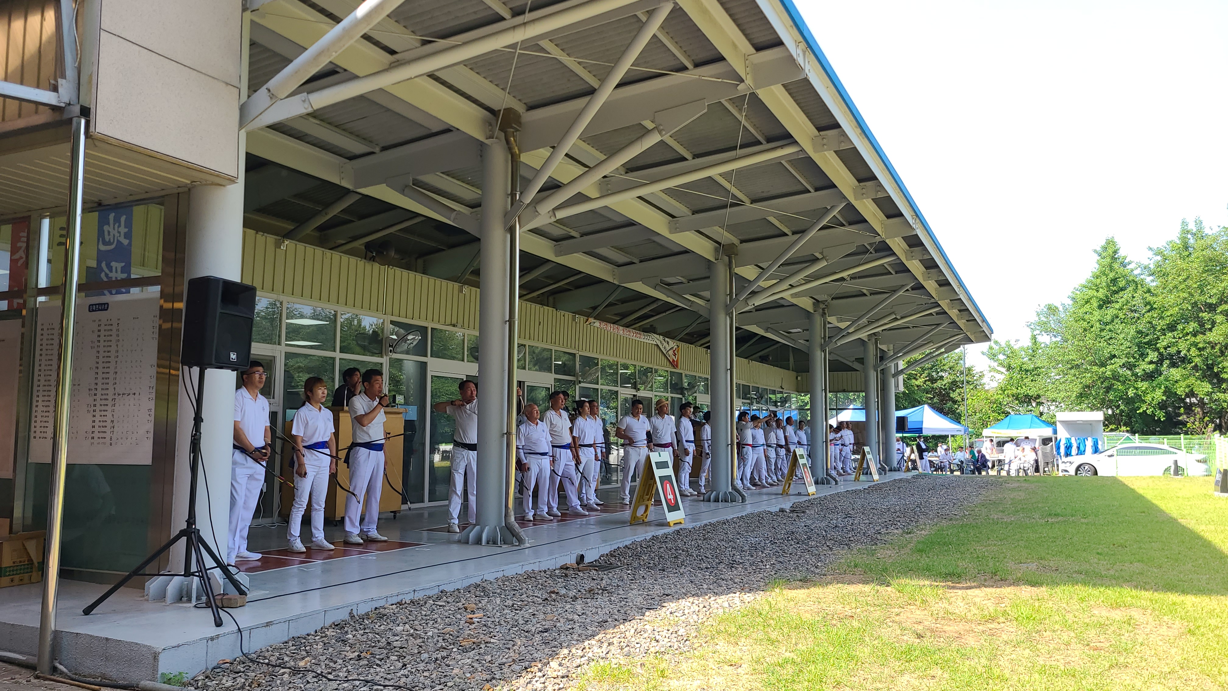 4대의 과녘을 만들다보니 사대가 조금 비좁은 듯 몸을 비틀면 옆자리와 부대낄 것 같다.