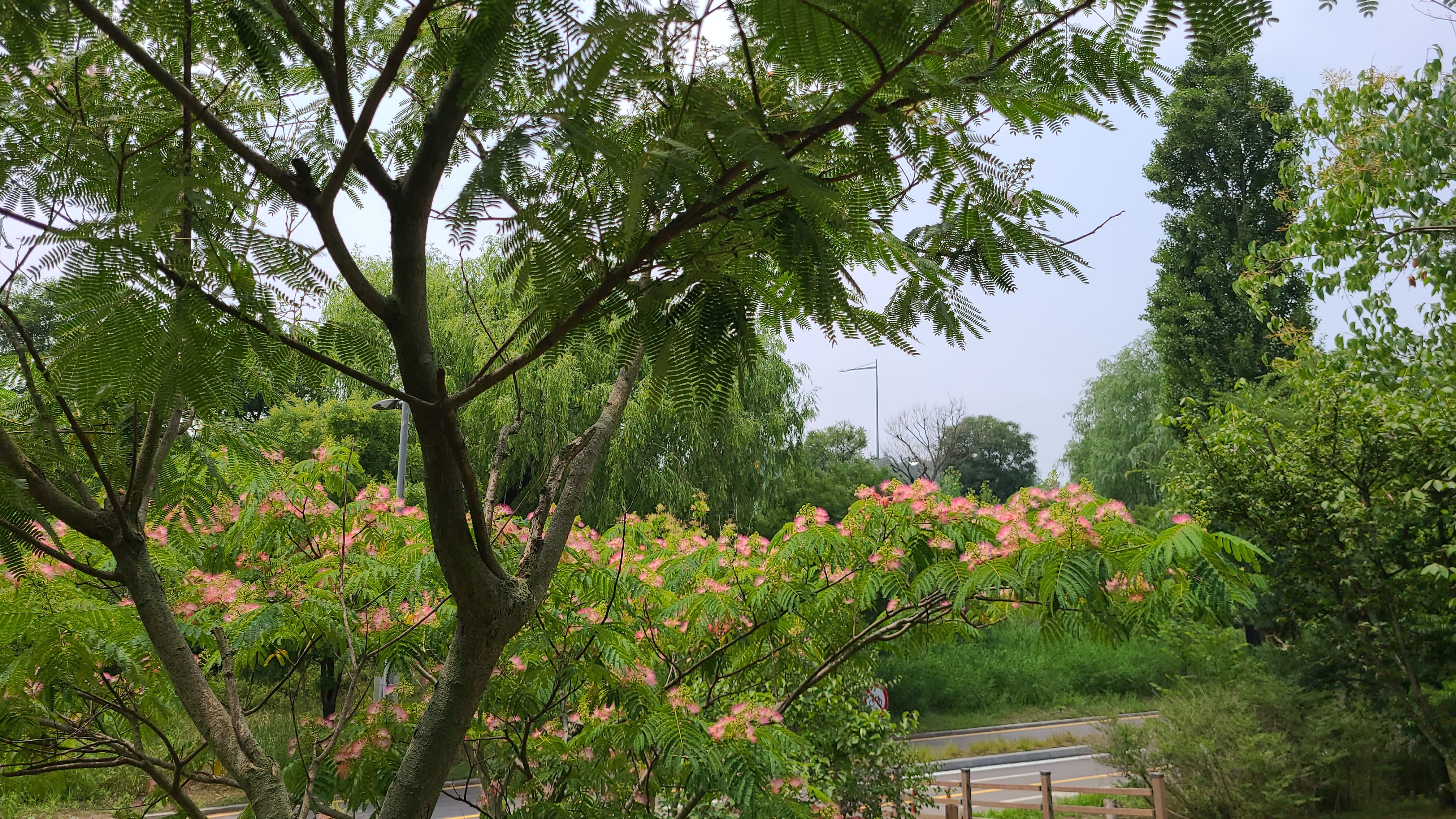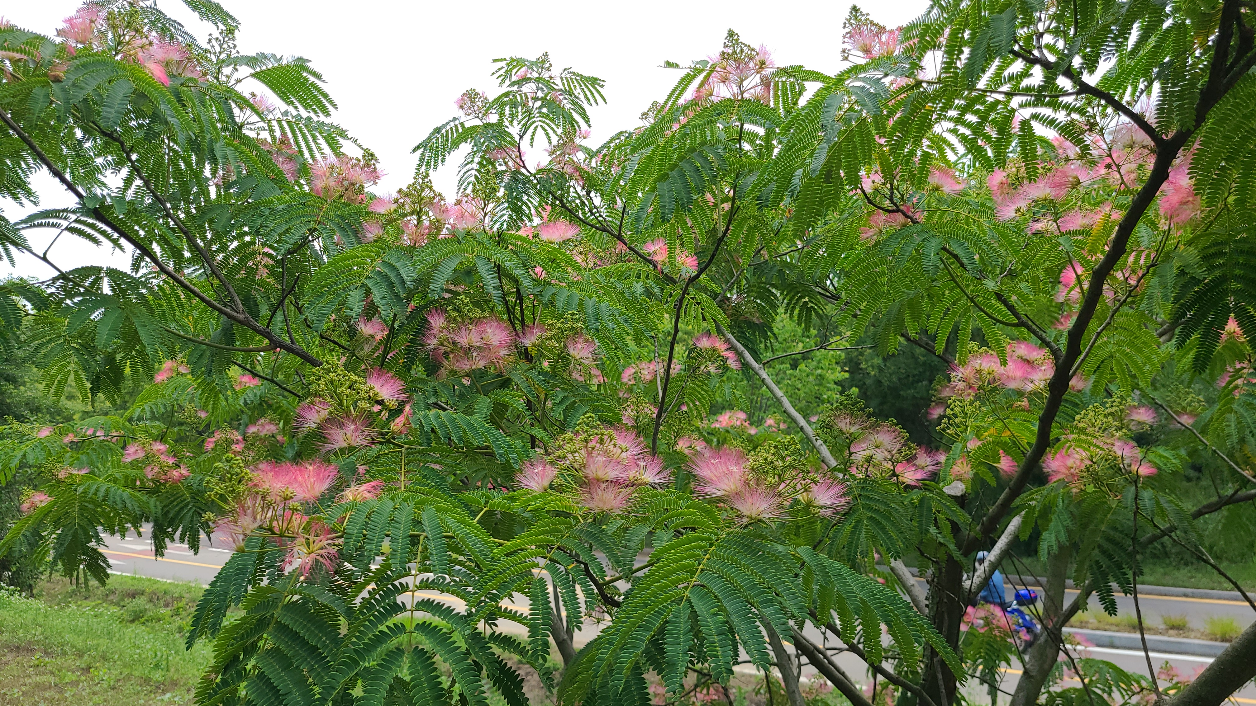 한쪽엔 자귀나무가 아름답게 피어있다.